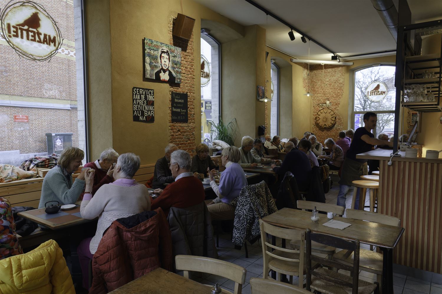 Neos Heusden-Zolder bracht vandaag een bezoek aan Brussel. De gidsen wachtten het gezelschap op in het coöperatieve brouwcafé Mazette aan het Vossenplein in de Marollen. Daarna werd de Marollen bezocht, nog steeds een authentieke volksbuurt waar de Hoogstraat, Blaesstraat, Hellemanscité, … hun geheimen prijsgaven. Ze passeerden langs het pandjeshuis en enkele art nouveau gevels waarna in Mazette een Brussels ‘dikkebroodje’ werd verorberd. Na de middag werd het Afrikamuseum in Tervuren verkend. Dat is helemaal vernieuwd en de gidsen gaven aan de hand van unieke voorwerpen een hedendaagse kijk op de gebruiken in Afrika, het koloniale verleden van België en de andere kolonisatoren. Terug in Heusden-Zolder werd nog wat nagekaart in de velodroom. (foto's Robrecht Froyman)79949