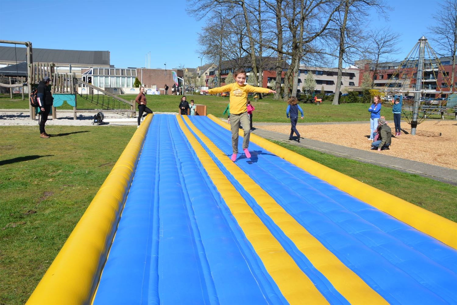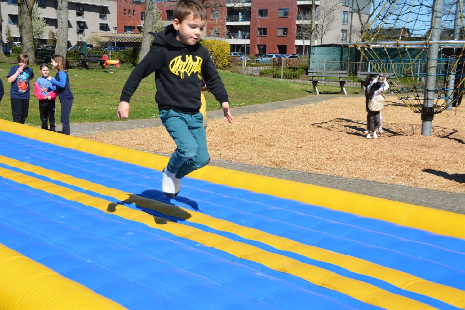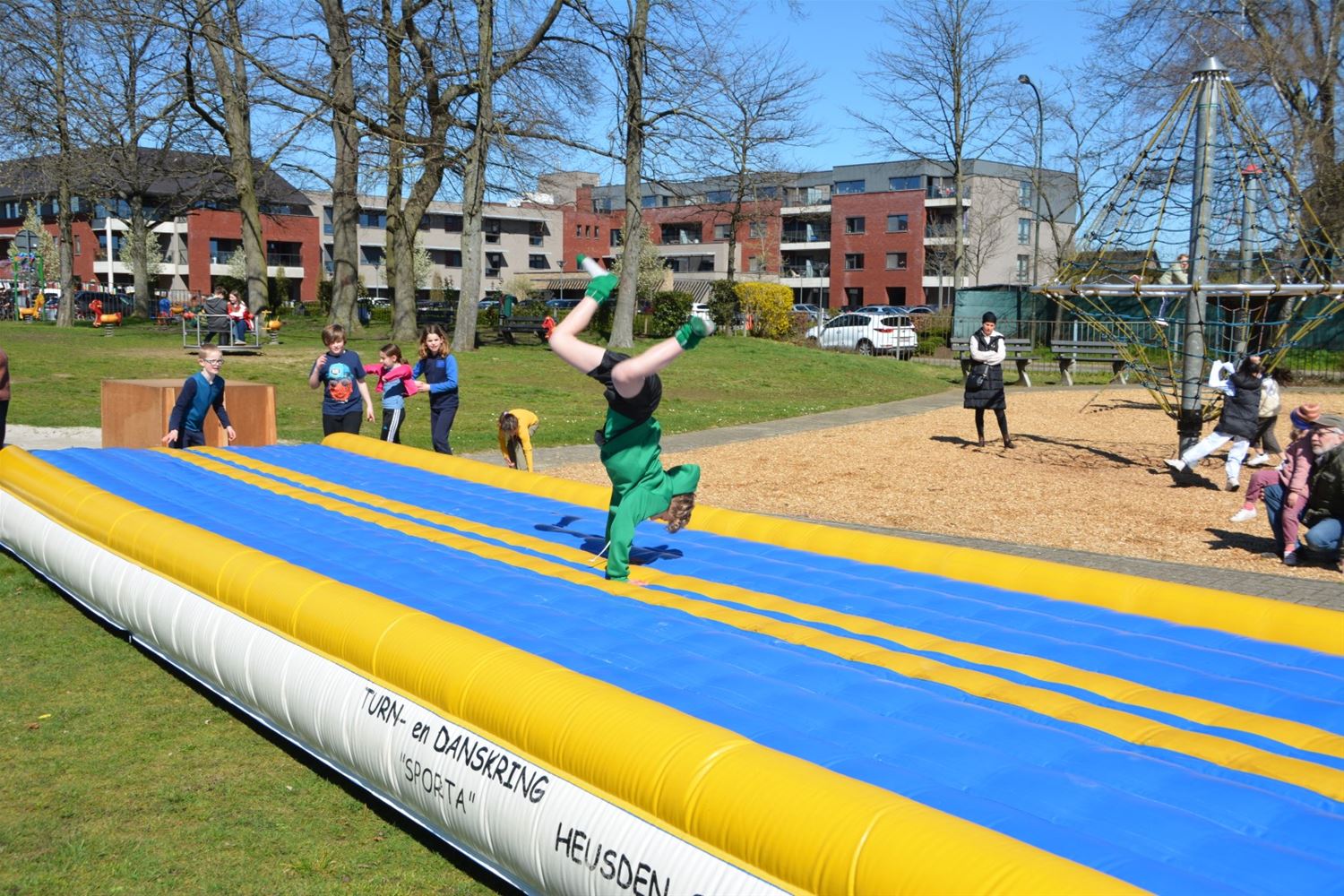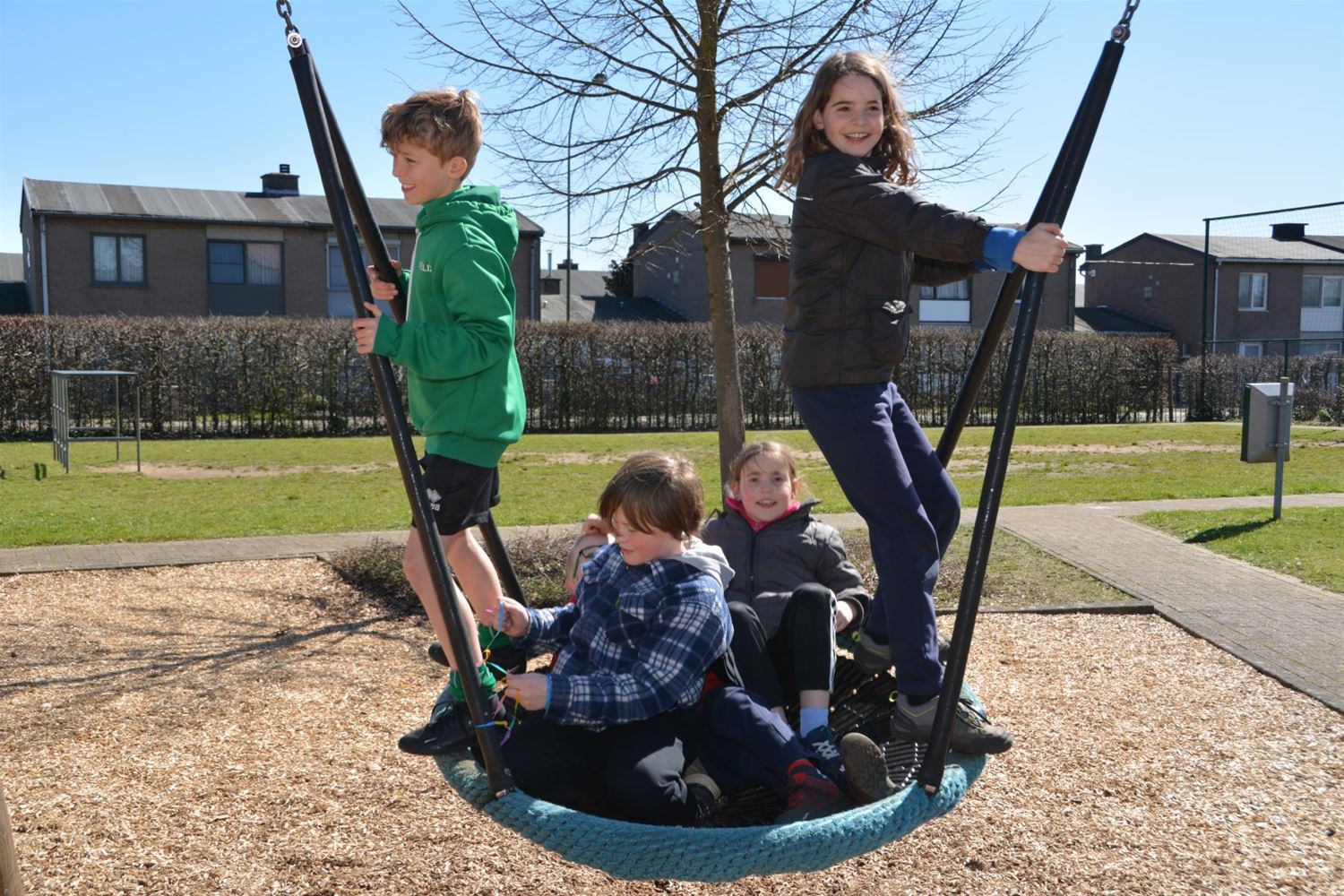 In de speeltuin aan Olympia is deze namiddag het speelseizoen officieel geopend. Tegelijk werden de nieuwe namen van de speelterreinen voorgesteld en ook een gloednieuwe speelkaart waarop alle speelmogelijkheden in Heusden-Zolder zijn aangeduid. Er zijn liefst 37 plekken in Heusden-Zolder waar je kunt spelen, van grotere speeltuinen, buurtpleintjes met enkele speeltoestellen, goaltjes of basketringen tot speelbossen. Vier speeltuinen hebben nu een naam gekregen die past in de leefwereld van AAP & NEL, de boegbeelden van het vrijetijds- en spelaanbod voor kinderen in Heusden-Zolder. Team Welzijn/Jeugd schakelde de lagere scholen in om geschikte namen te vinden. En zo kwamen vier klinkende namen uit de bus: Jungleland voor de speeltuin bij Olympia, het AAP & NEL Park in De Wallen, het Slingerbos in Viversel en Speelwereld in 't Mierke (Eversel). Met een spelnamiddag werd Jungleland vanmiddag als eerste geopend. Daarvoor kreeg schepen van Jeugd Dirk Schops (GOED) uiteraard de assistentie van AAP & NEL, samen knipten ze het lint van de ballonnen door en onthulden zo ook het naambord. Elk terrein krijgt een eigen bord met daarop ook de spelregels.Voor de rest van de namiddag was het ravotten geblazen. Nu woensdag komt het AAP & NEL Park aan de beurt, volgende week dinsdag het Slingerbos en volgende week woensdag Speelwereld. Hoogtepunt van deze lente wordt woensdag 19 april wanneer alle kinderen tussen 4 en 12 jaar van 13 tot 17 uur welkom zijn op Bovy voor een grote buitenspeeldag.77136
