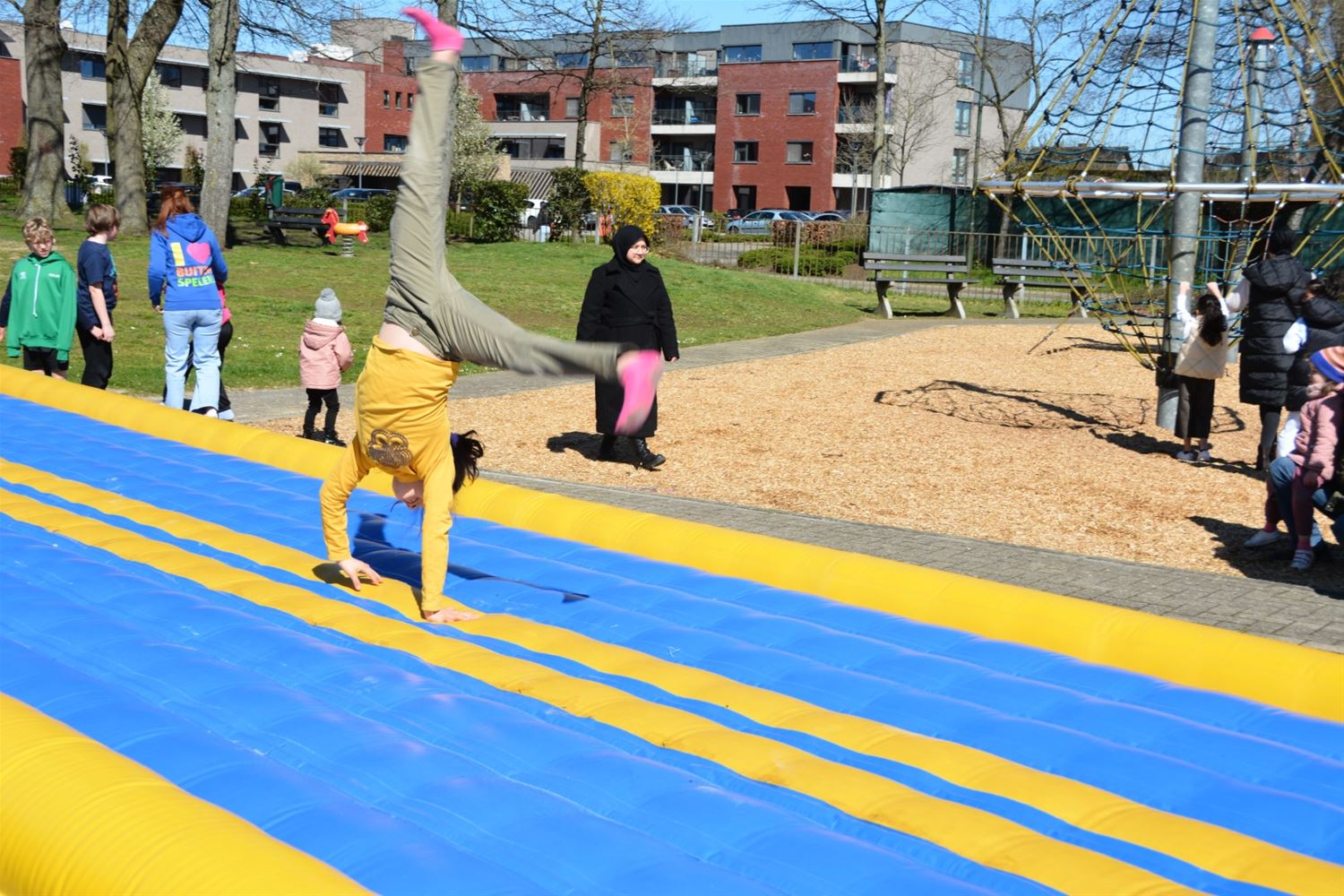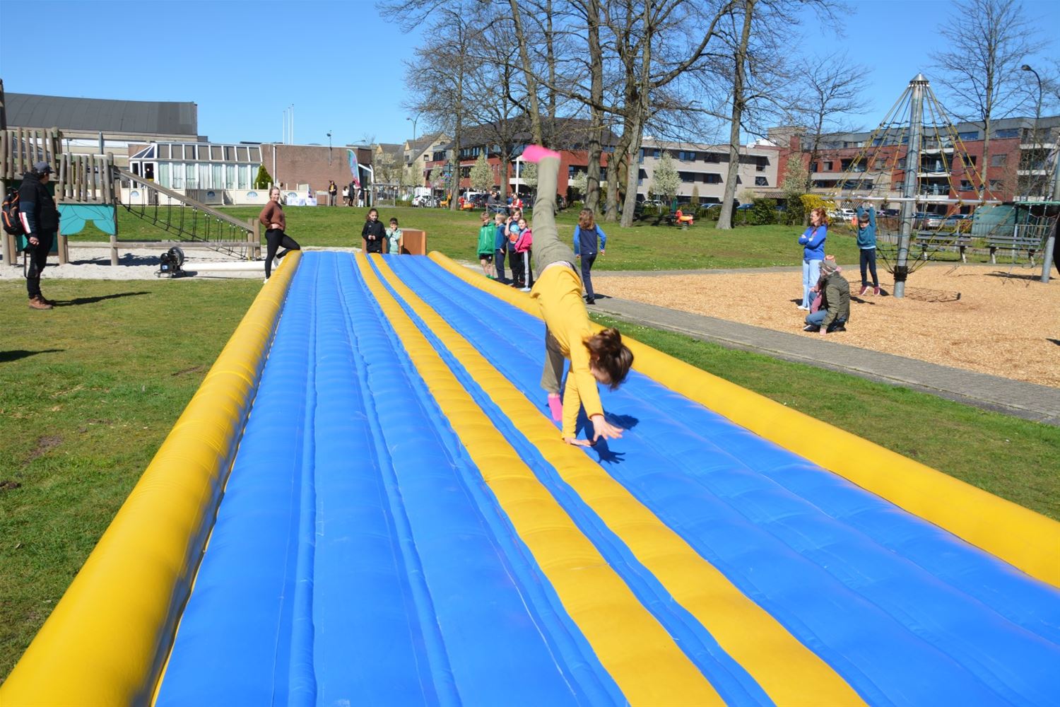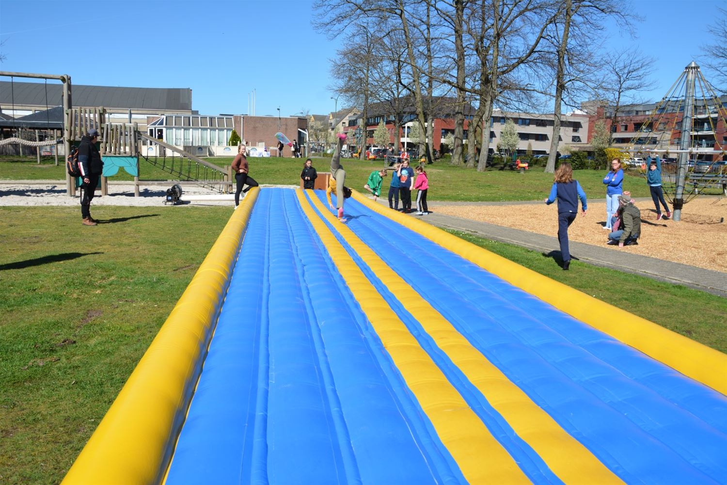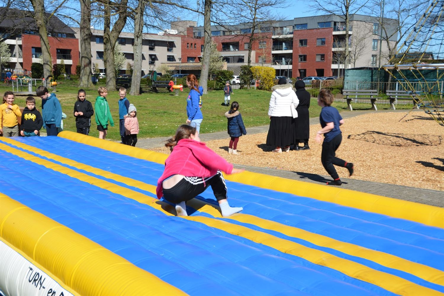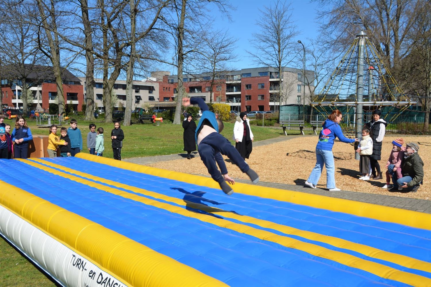 In de speeltuin aan Olympia is deze namiddag het speelseizoen officieel geopend. Tegelijk werden de nieuwe namen van de speelterreinen voorgesteld en ook een gloednieuwe speelkaart waarop alle speelmogelijkheden in Heusden-Zolder zijn aangeduid. Er zijn liefst 37 plekken in Heusden-Zolder waar je kunt spelen, van grotere speeltuinen, buurtpleintjes met enkele speeltoestellen, goaltjes of basketringen tot speelbossen. Vier speeltuinen hebben nu een naam gekregen die past in de leefwereld van AAP & NEL, de boegbeelden van het vrijetijds- en spelaanbod voor kinderen in Heusden-Zolder. Team Welzijn/Jeugd schakelde de lagere scholen in om geschikte namen te vinden. En zo kwamen vier klinkende namen uit de bus: Jungleland voor de speeltuin bij Olympia, het AAP & NEL Park in De Wallen, het Slingerbos in Viversel en Speelwereld in 't Mierke (Eversel). Met een spelnamiddag werd Jungleland vanmiddag als eerste geopend. Daarvoor kreeg schepen van Jeugd Dirk Schops (GOED) uiteraard de assistentie van AAP & NEL, samen knipten ze het lint van de ballonnen door en onthulden zo ook het naambord. Elk terrein krijgt een eigen bord met daarop ook de spelregels.Voor de rest van de namiddag was het ravotten geblazen. Nu woensdag komt het AAP & NEL Park aan de beurt, volgende week dinsdag het Slingerbos en volgende week woensdag Speelwereld. Hoogtepunt van deze lente wordt woensdag 19 april wanneer alle kinderen tussen 4 en 12 jaar van 13 tot 17 uur welkom zijn op Bovy voor een grote buitenspeeldag.77136