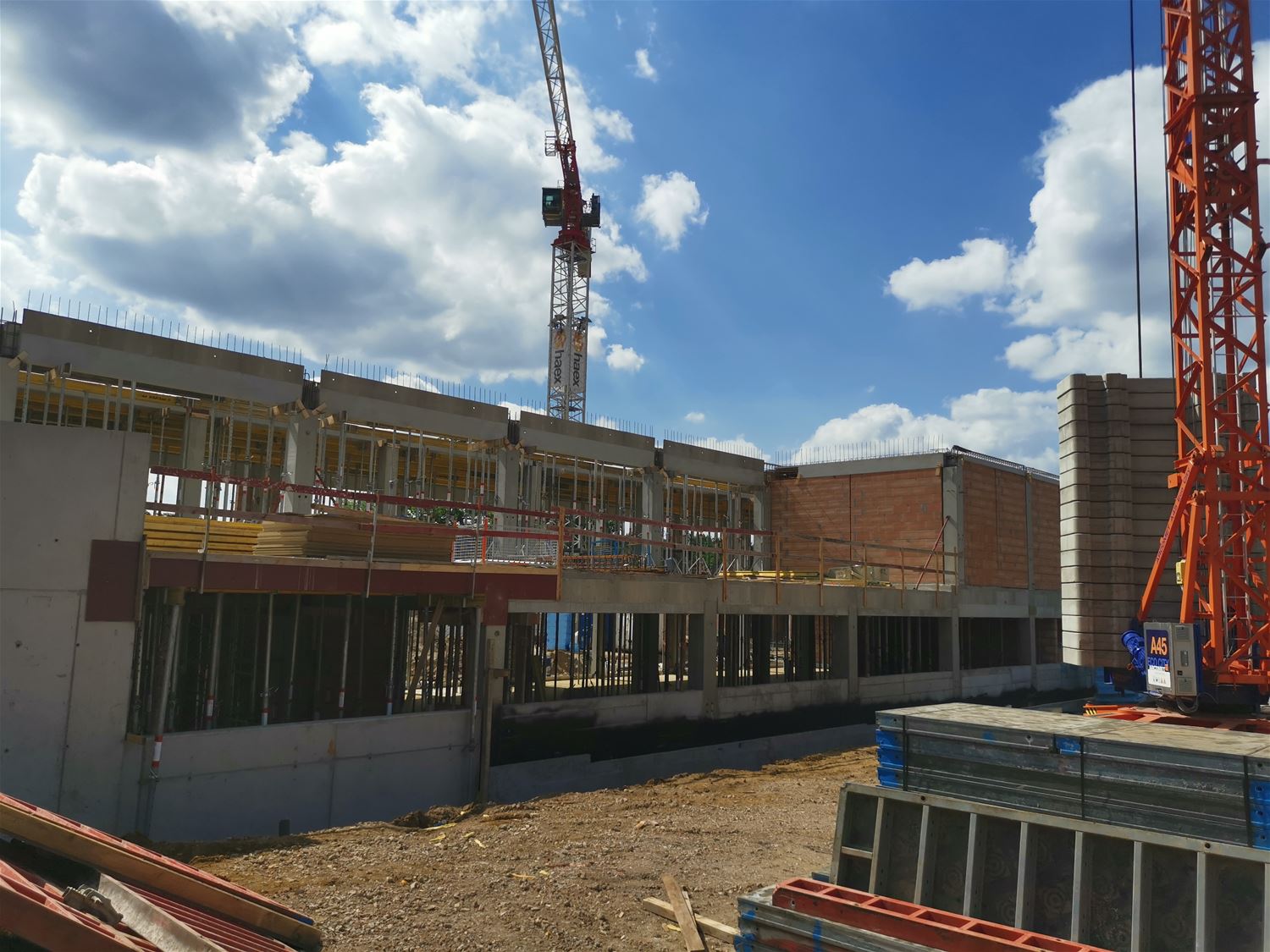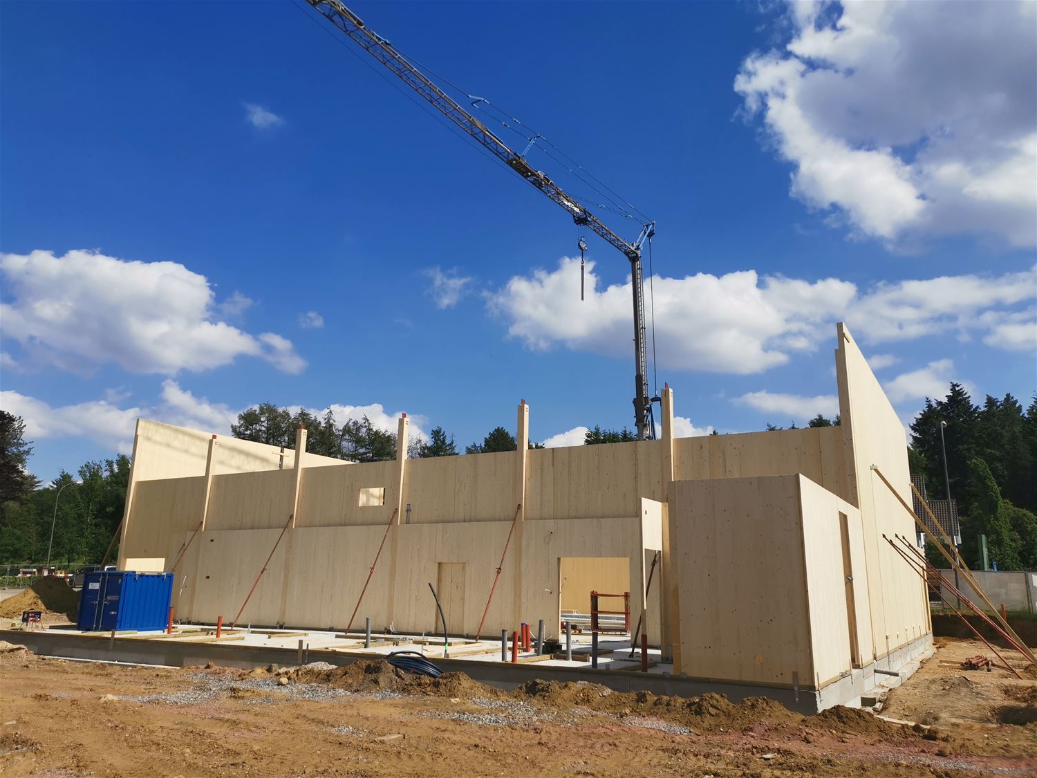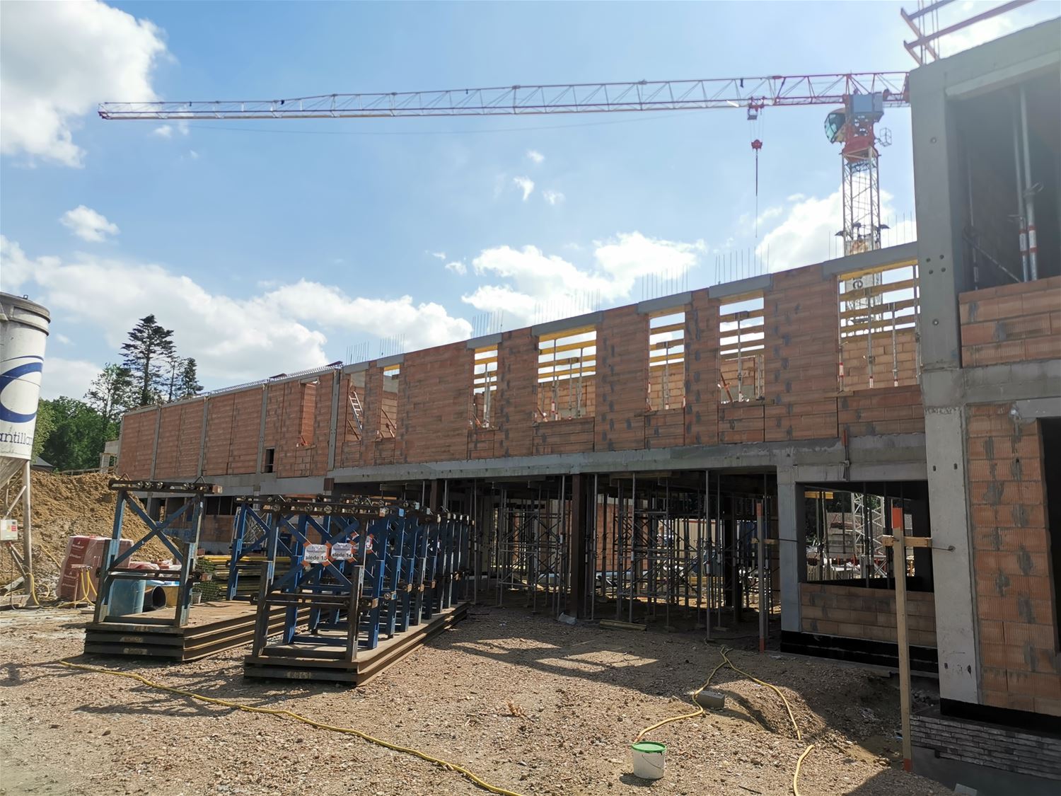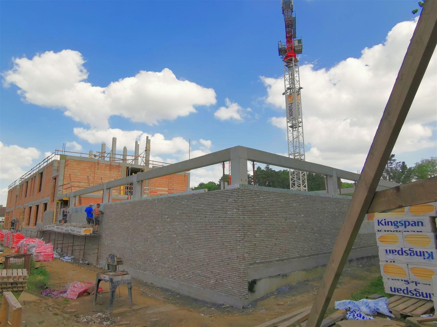 Het uitzicht van Zolder-Centrum is nu pijlsnel aan het veranderen. Dat heeft uiteraard te maken met de werken aan de nieuwe school en sportzaal die flink opschieten. Voor de lagere school liggen de welfsels ondertussen op de eerste verdieping, en daar moet nog eentje bovenop. Daar kan je wel al de gekozen gevelsteen bewonderen. De kleuterschool is ook al in haar geheel te herkennen en daar wordt nu de hellende toegang aan de Dekenstraat gemaakt. En de bouw van de sportzaal gaat wel heel snel vooruit. Die wordt namelijk opgetrokken in prefab houten panelen.69750