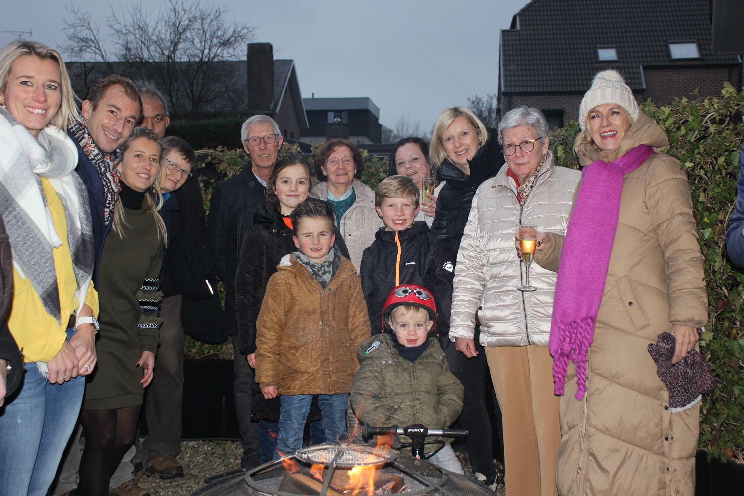 De bewoners van residentie De Kapelanijen verzamelden vandaag voor hun nieuwjaarsdrink met soep, glühwein en hotdogs. De tuin was sfeervol verlicht met vuurkorven en de kerstverlichting aan de terrassen werd nog eens aangestoken. Betty bracht haar traditionele speech, ze verwelkomde de nieuwkomers en wuifde de huurders die weggaan uit. Ze benadrukte dat deze samenkomsten de goede sfeer en de verstandhouding onder de bewoners bevorderen. Nu het nieuwe jaar is ingeluid, werd de zomerbarbecue ook al vastgelegd. (foto's Louis Mentens)79766
