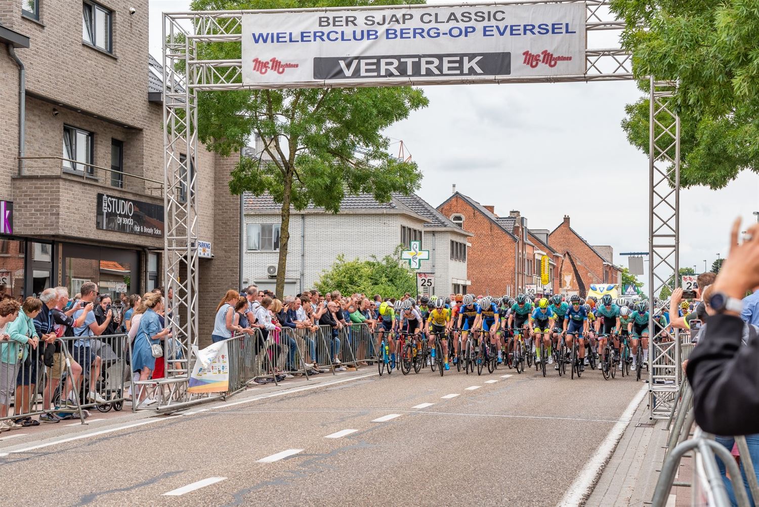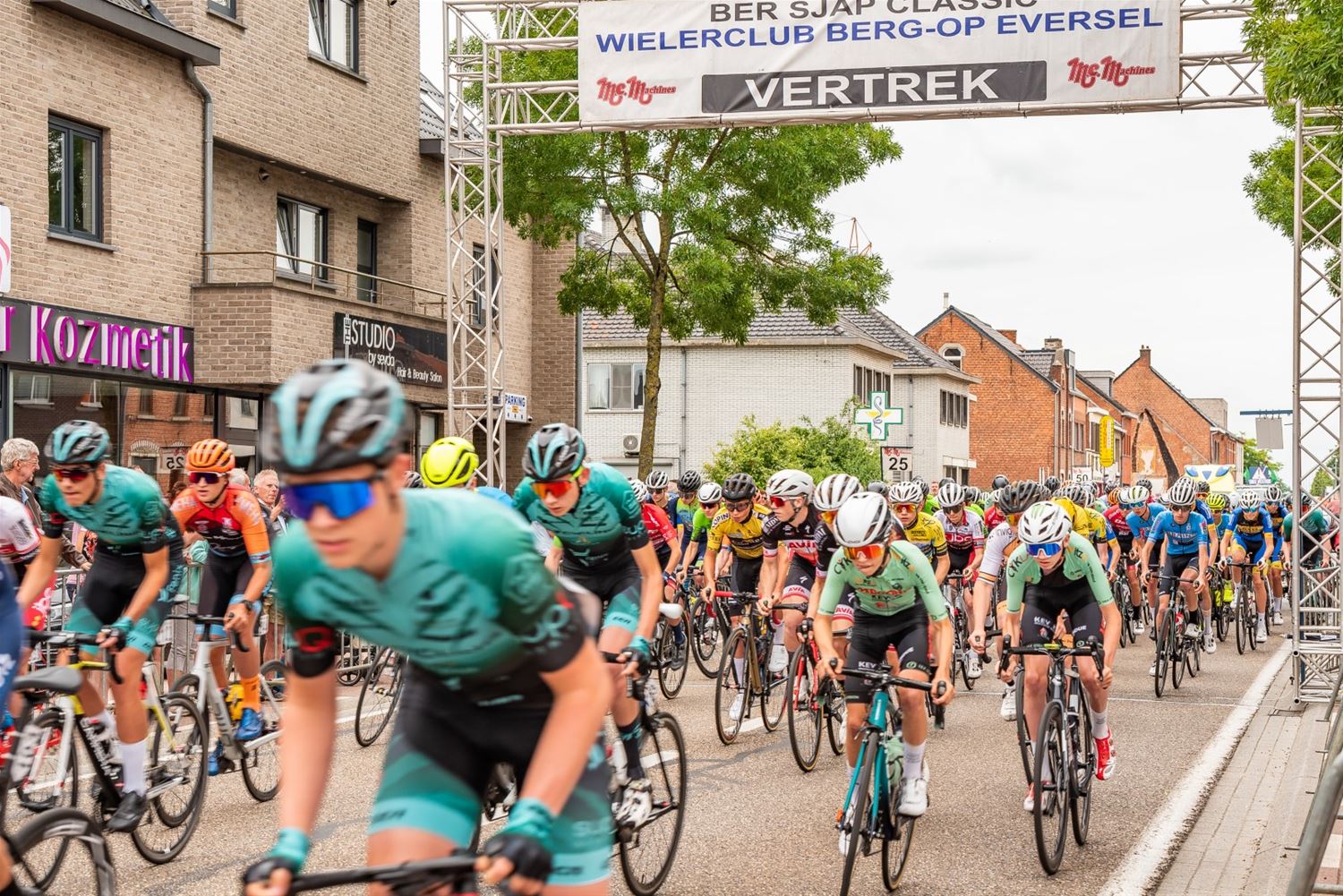 Aan de inschrijvingstafel van de U17 jongens mocht Berg Op Eversel zich in de handen wrijven want er daagden liefst 113 renners op. Het werd een snelle wedstrijd over een uur en 38 minuten waarbij 32 renners de eindstreep niet bereikten. Het was Nolan Huysmans (Avia Rudyco Cycling Team) die het in een spurt met twee haalde voor Cisse Pauwels ((Acrog Tormans). De derde bos bloemen ging naar Brend Van Aerschot van Maes CT Glabbeek. (foto's Ann Jordens)73480