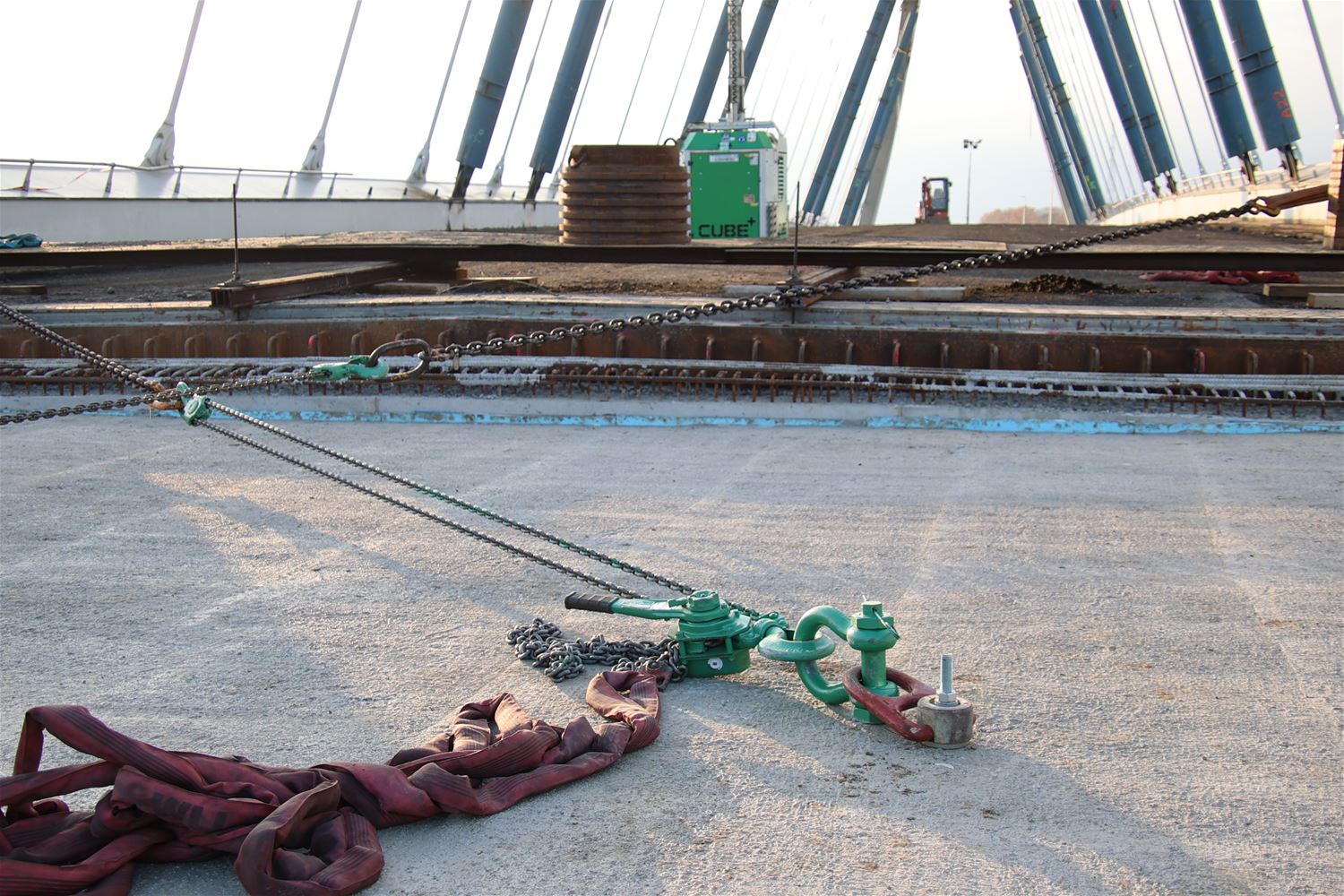In de loop van de namiddag is de boogbrug in Viversel verder op haar plaats gezet. Arbeiders en ingenieurs hebben weer een straffe prestatie geleverd met zo'n enorm gevaarte. De zwaarste klus ligt nu achter de rug. De komende weken is het nog alle hens aan dek want er resten nog minder dan twee weken om de brug voor Kerstmis open te stellen zoals beloofd door de Vlaamse Waterweg. (foto's Kurt Vanvelk)76114