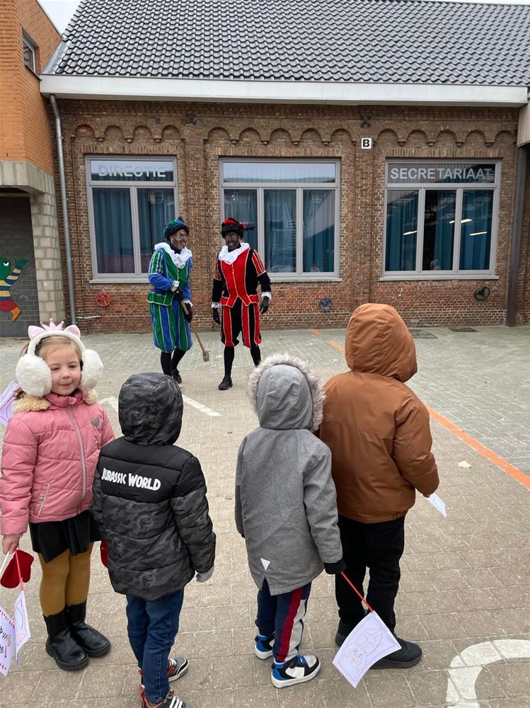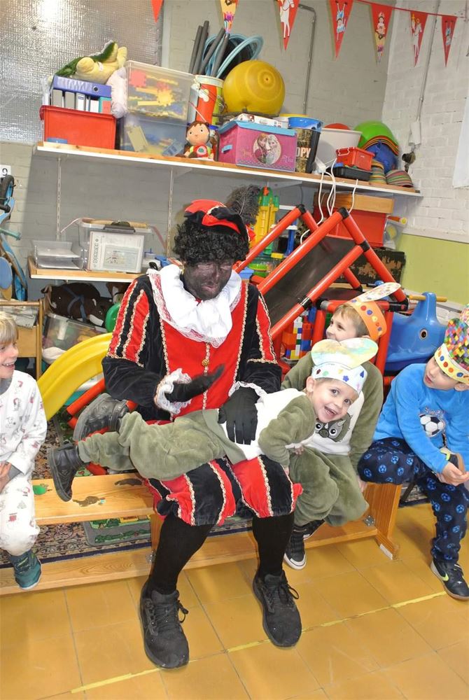 Ook in de Toverfluit kwamen Sinterklaas en zijn pieten op bezoek. De pieten dachten dat ze de school mochten afbreken, maar dat was uiteraard niet de bedoeling, er wordt juist een nieuwe school opgebouwd. En dus moesten ze de handen uit de mouwen steken, en ook een baksteen versieren. Ze trokken ook naar het wijkschooltje in Ubbersel waar ze samen met de kinderen aan ochtendgymnastiek deden. (foto's Yente Eerdekens)76023