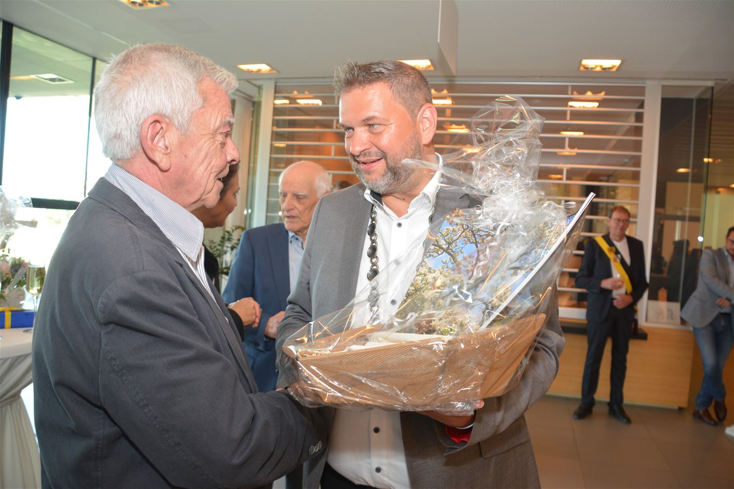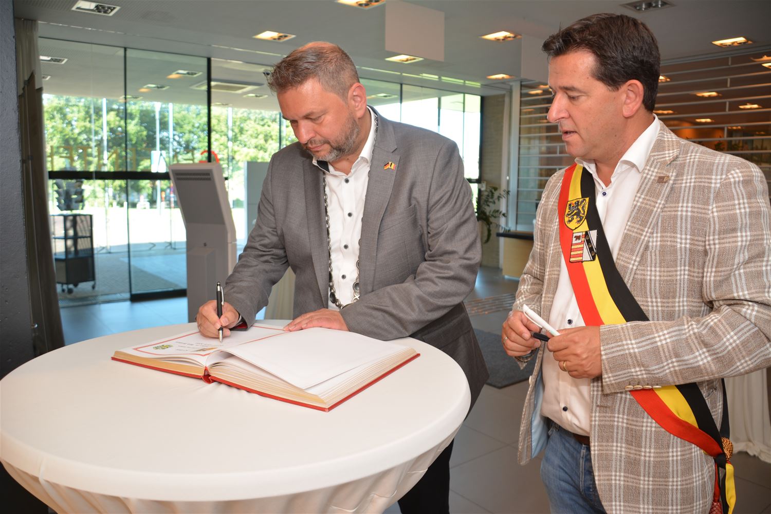 Gisteren al spraken Heusden-Zolder en Bad Arolsen al af dat ze na 50 jaar hun partnerschap willen hernieuwen en vandaag werd de daad bij het woord gevoegd. In de raadszaal van het gemeentehuis hebben de burgemeesters Marko Lambion van Bad Arolsen en Mario Borremans van Heusden-Zolder daartoe hun officiële intentieverklaring ondertekend. Bij die gelegenheid kreeg ook Jef Smets - na zijn geschenk gisteren - een certificaat van bijzondere verdienste voor zijn betrokkenheid bij een halve eeuw verbroedering. Hij dankte het Verbroederingscomité en beide gemeentebesturen voor de hulde. De gasten tekenden ook nog het gulden boek en tijdens een receptie werden geschenken uitgewisseld. Burgemeester Marko Lambion dankte voor de gastvrijheid en was enthousiast over zijn kennismaking met Heusden-Zolder en zijn troeven. Ook hij ziet in de toekomst nog nieuwe mogelijkheden om beide gemeenten en hun inwoners dichter bij elkaar te brengen. Anke Bongaerts, de manager Citymarketing & Toerisme van Heusden-Zolden had in die zin alvast even contact met Tobias Rückschloß, haar collega uit Bad Arolsen.82789