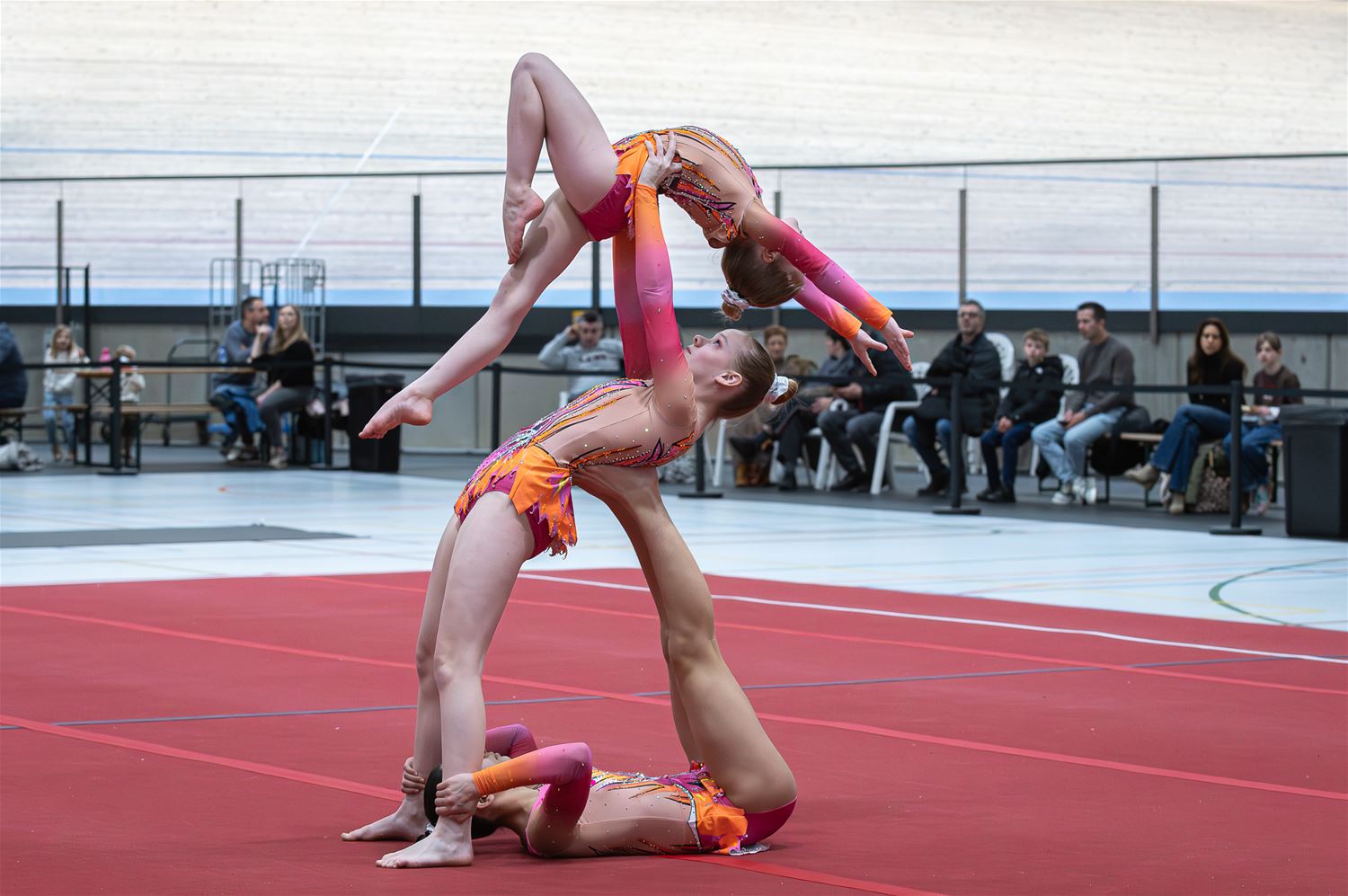 Moed en Volharding mag terugblikken op een bijzonder geslaagd Acro-gymtornooi. Ook de tweede dag in de Velodroom lokte veel toeschouwers en de deelneemsters brachten een schitterend spektakel op de mat. Nadien keerden de gymnasten met medailles terug naar alle richtingen van ons land. De foto’s van Roman Martyka spreken voor zich. 87852
