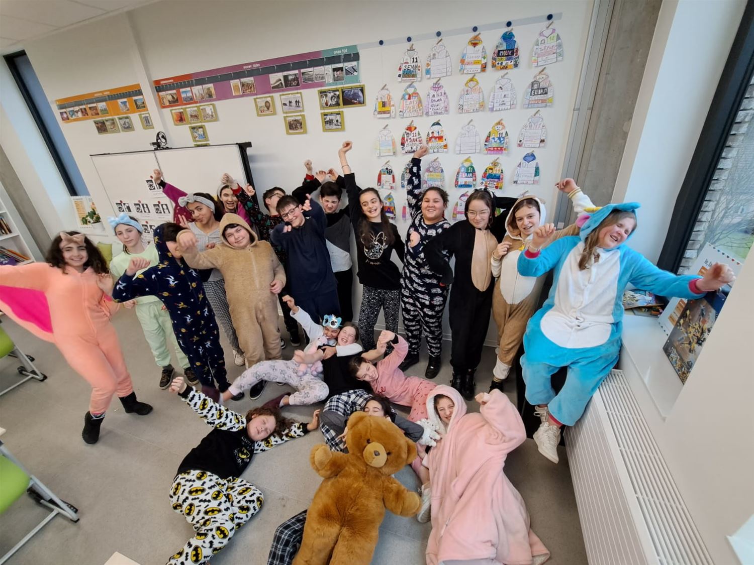 Ook in GBS De Leerplaneet kwamen leerlingen en leerkrachten in pyjama naar school om hun steun te betuigen aan de acties van Bednet. (foto's Stefanie Custers)76931