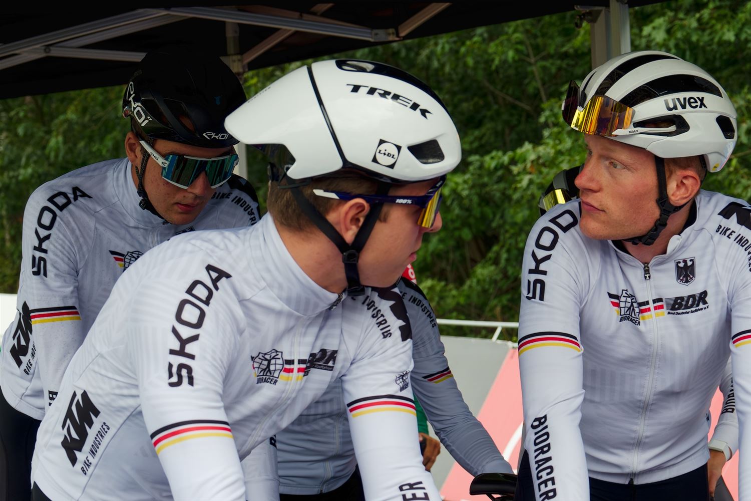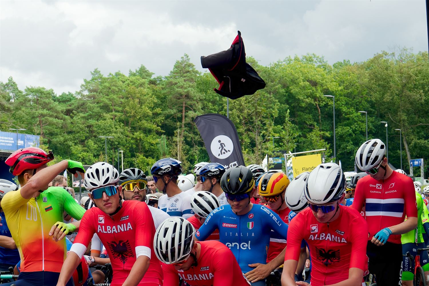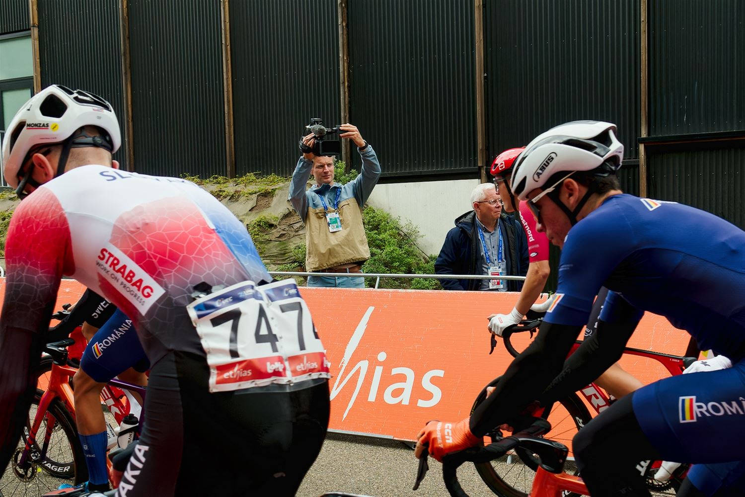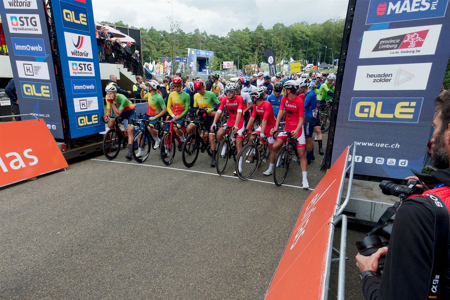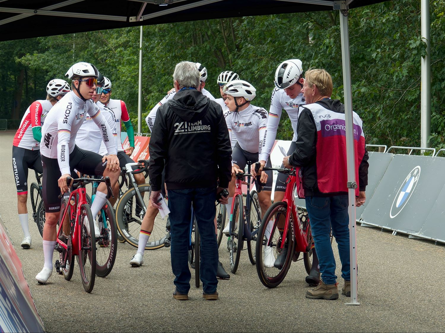 De Nederlander Huub Artz is Europees kampioen bij de beloften mannen geworden. In Hasselt klopte hij de Duitser Niklas Behrens in een spurt met twee. Enkele seconden later fietste de Fransman Léandre Lozouet naar het brons. Eerste Belg was Steffen De Schuyteneer op de negende plaats. Bij de ploegenvoorstelling aan de start was het overigens aan de kalme kant. (foto's Robrecht Froyman)83019