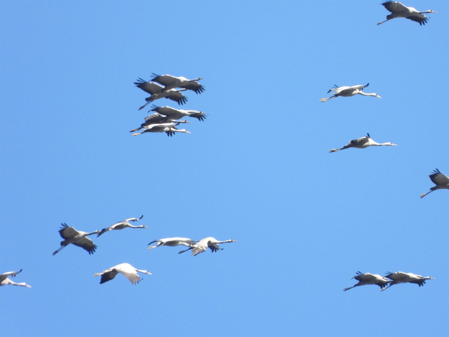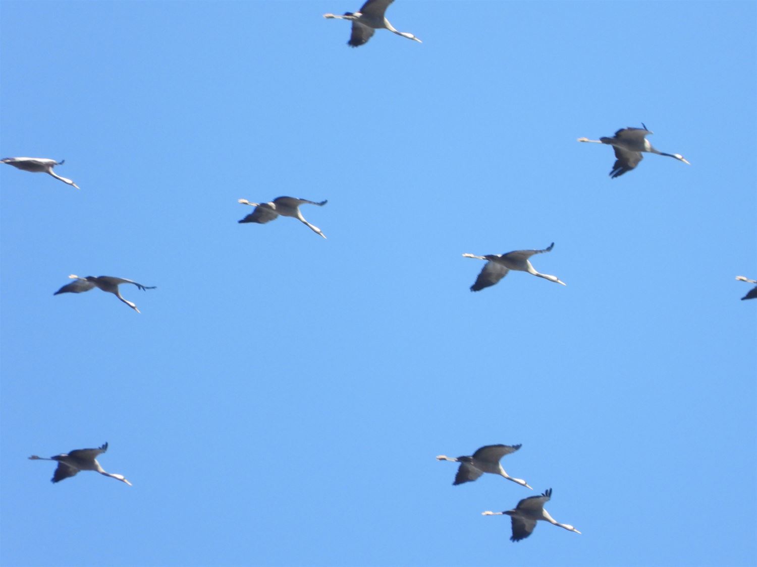 Ook in Bolderberg hebben ze vandaag kunnen genieten van de doortocht van de kraanvogels. Ze vlogen een 5-tal minuten rondjes boven het dorp en zetten daarna hun tocht verder richting Houthalen. Ondertussen laten de kroenekroane zich ook goed horen. (foto's Roger Convents)67701