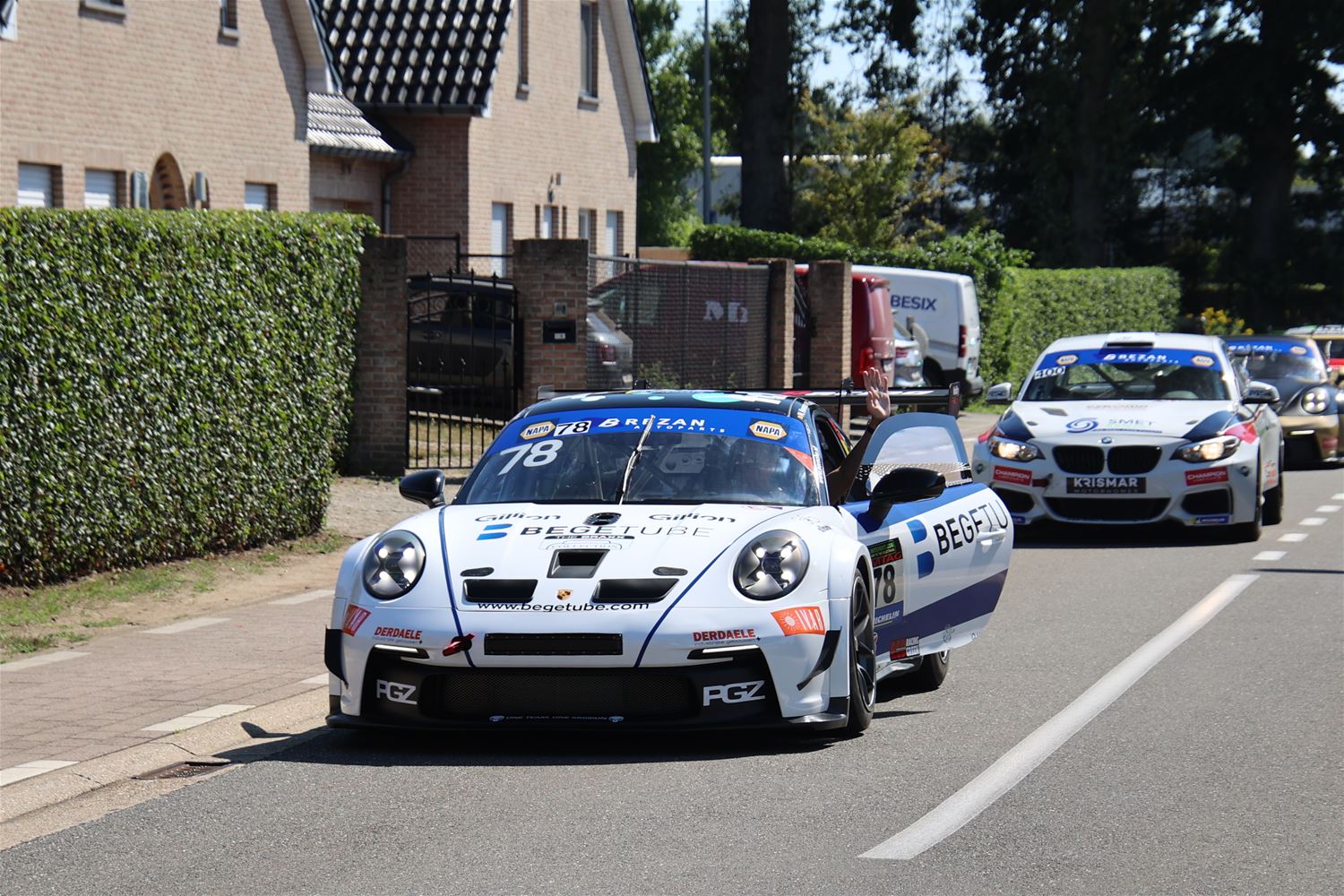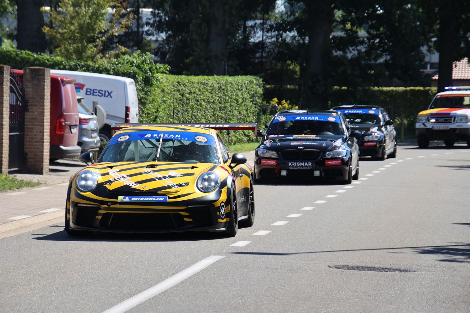 Het was een opvallende karavaan van 36 racebolides die in de namiddag van het circuit door Boekt en Zolder naar het Heldeplein reed en vanavond weer terug. De wagens werden begeleid door de politie en de auto's van Race Rescue. (straks meer foto's)74859