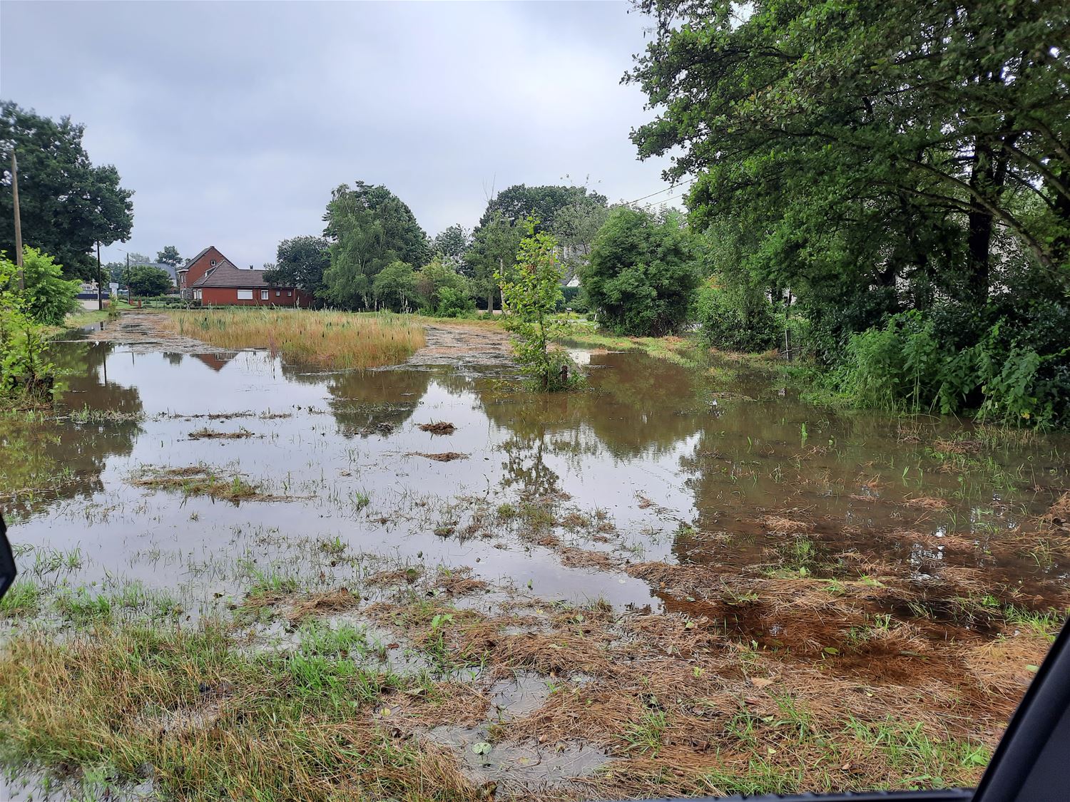 Opvangbekken in Beemdenstraat loopt over