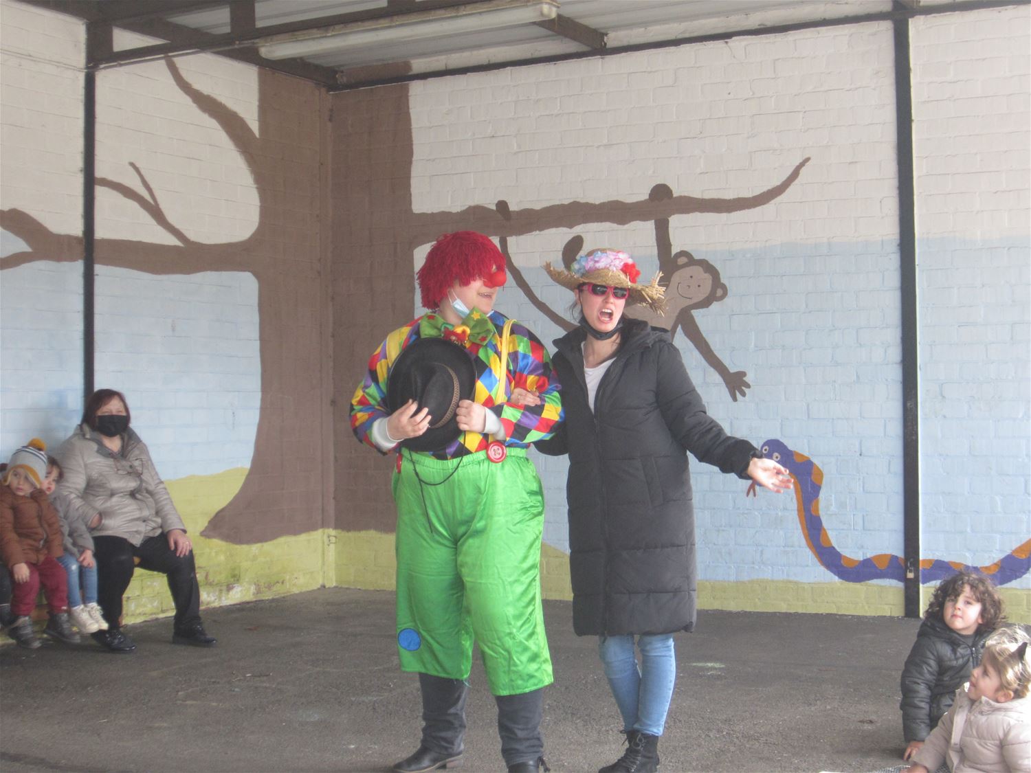 In kleuterschool Pagadder gaan ze onverstoord verder met hun maandthema's. Zo kwam 'Hoera Theater' dramasessies in de klas geven, waarbij een acteur de kleuters in een rol liet kruipen. Ook nadien konden de kinderen verder gaan met het rollenspel, naar eigen interesse en niveau. Als apotheose gaven ze een voorstelling aan clown Trijn, een gedramatiseerde versie van het verhaal van Sneeuwwitje. Theaterartiest en Clown Trijn waren tevreden. Ondertussen is Toverwetenschapper op bezoek geweest, hij toonde de kleuters allerlei goocheltrucs.72489
