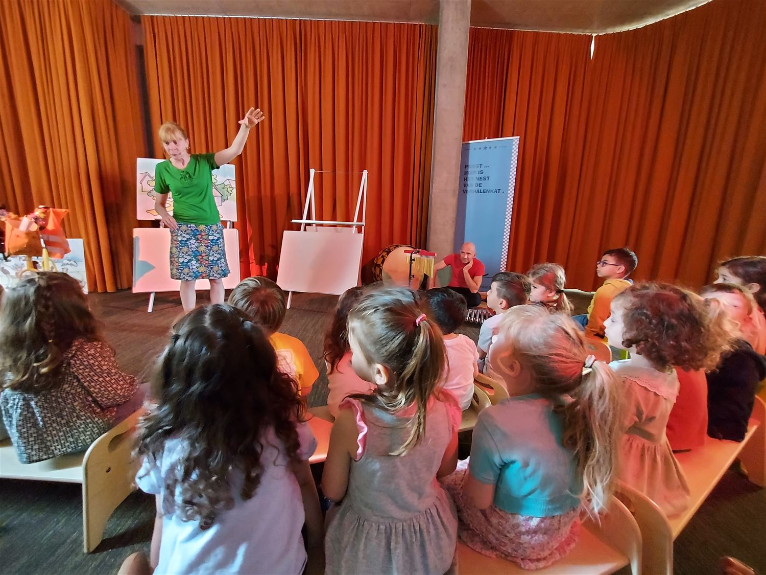 Taal is de brug die kleuters verbindt en daarom stond de voorbije maand in VKS Pagadder helemaal in het teken van taal. Er werden voorleesweken georganiseerd met de hulp van ouders en grootouders. Dat motiveerde alle kleuters des te meer om geboeid naar een verhaal te luisteren. Verder in de maand gingen alle klassen ook vol bewondering kijken naar een vertelling van ‘De Verhalenkat’. Ouders werden extra gemotiveerd om ook thuis voor te lezen. De foto's daarvan werden opgehangen op de “Wall of fame”. Om het taalthema af te sluiten, toonden alle kleuters en clown Trijn hun taalvaardigheden aan de Taalprofessor.73144