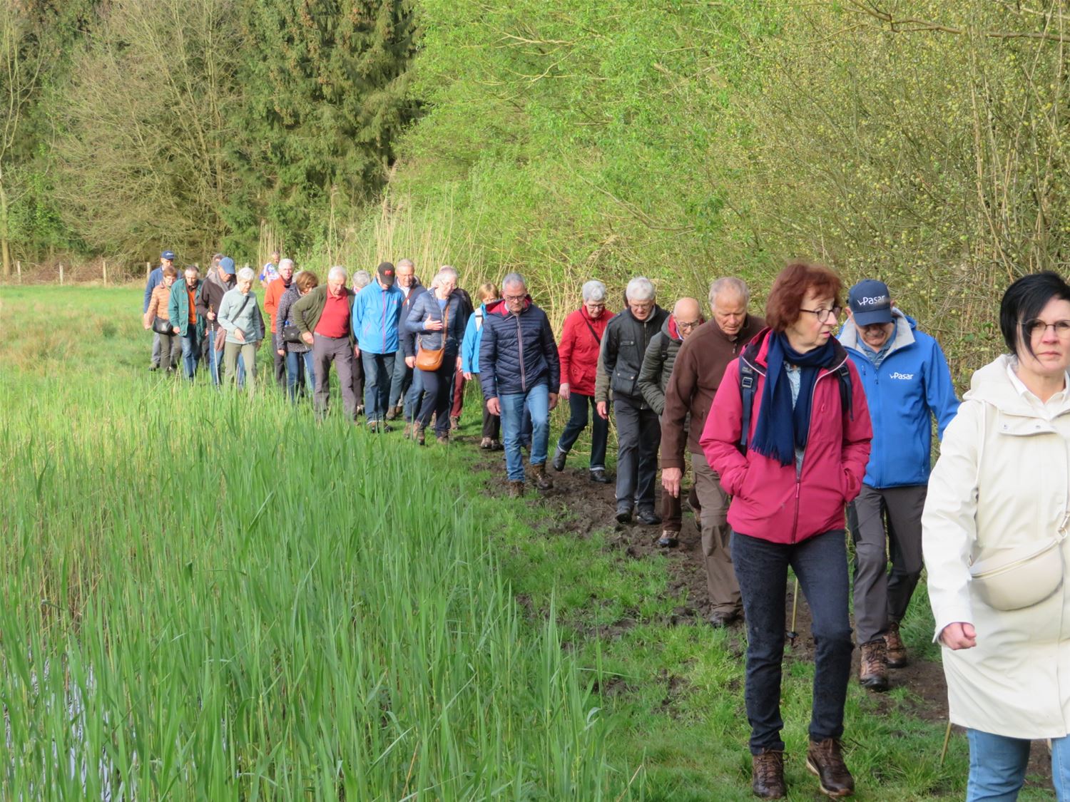 Pasar Heusden hield zijn jaarlijkse dauwwandeling aan de Begijnenvijvers in Hechtel-Eksel. 41 wandelaars genoten van de mooie omgeving en het prachtige weer. Als afsluiter schoven ze aan voor een ontbijt in de Oude Barrier. (foto's Jos Willems)80649