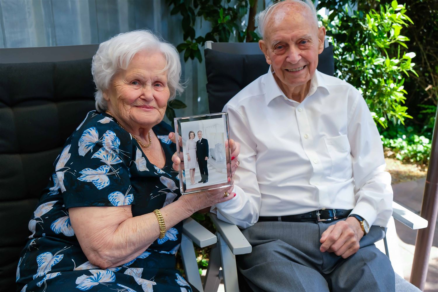Feest ten huize van Alfons Put en Marie-Louise Degens aan het Rond Punt, ze zijn immers 70 jaar getrouwd, goed voor platina. Op 28 mei 1952 stapten ze in het huwelijksbootje. Fons (94 jaar) werkte als bediende op de mijn van Zolder, Marie-Louise (91) zorgde voor het huishouden. De vonk sloeg destijds over na een ritje in de botsauto’s en wat afspraakjes aan de draad van de mijn. Ze kregen later één zoon en drie dochters, ondertussen zijn daar elf kleinkinderen en tien achterkleinkinderen bijgekomen. Fons zit dagelijks nog meer dan een uur aan de computer. Hij besteedt veel tijd van het bewerken van foto’s, hij was immers jarenlang een verwoed amateurfotograaf. En de dagelijkse actualiteit volgen ze ook op de voet. Burgemeester Borremans kwam langs met een presentje van de gemeente. Hij mocht hen ook de felicitaties en een foto van het koningshuis overmaken. De tip van Fons en Marie-Louise voor een lang en gelukkig leven? “Zet elkaar altijd op de eerste plaats en geniet van kleine dingen en van elkaar.” We wensen hen nog veel gelukkige jaren. (foto’s Jean Beerten)73183