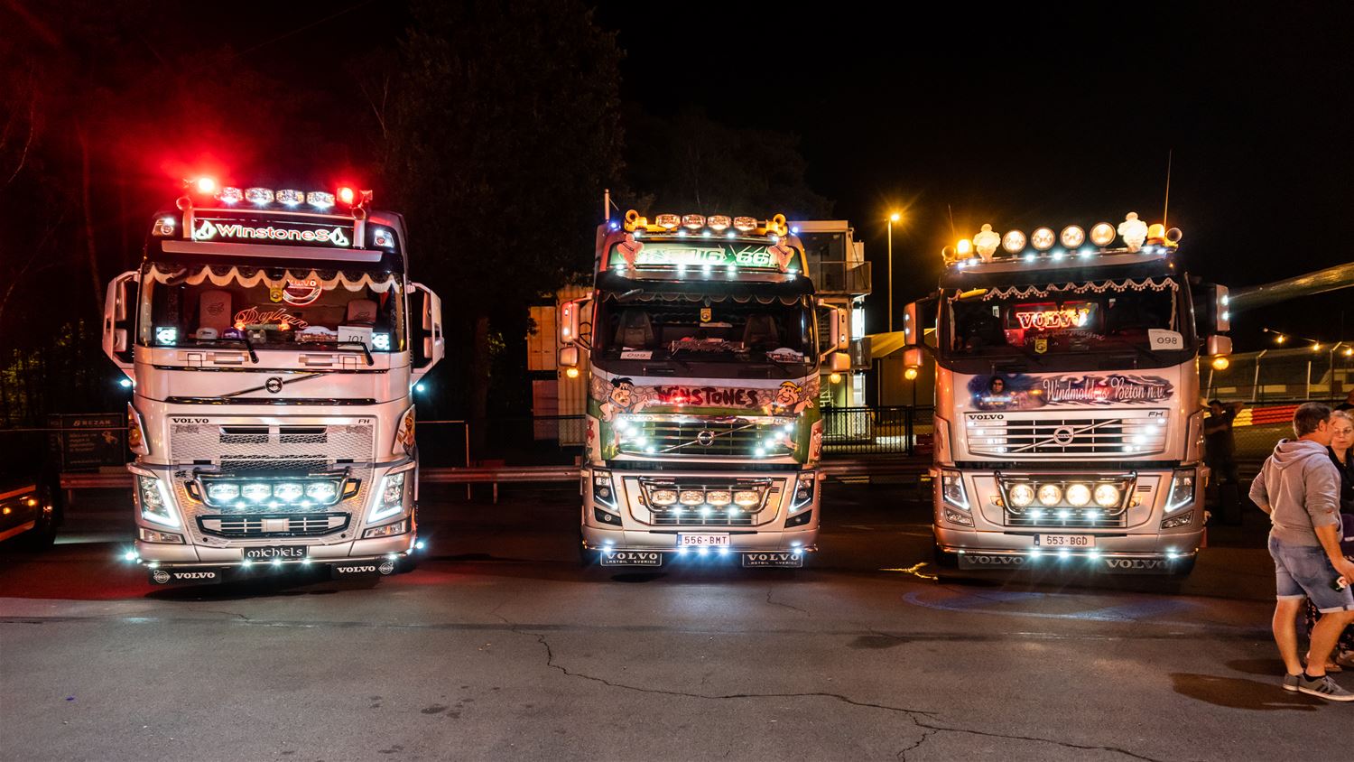 De showtrucks vormen een indrukwekkende verzameling in de paddock. Ze zijn aan de buitenzijde prachtig beschilderd, met lichten uitgerust, aan de binnenkant zijn het halve paleizen, ... In het donker vanavond vormden ze een prachtig kijkstuk. Dirk Dekens biedt ons een mooie blik.75183