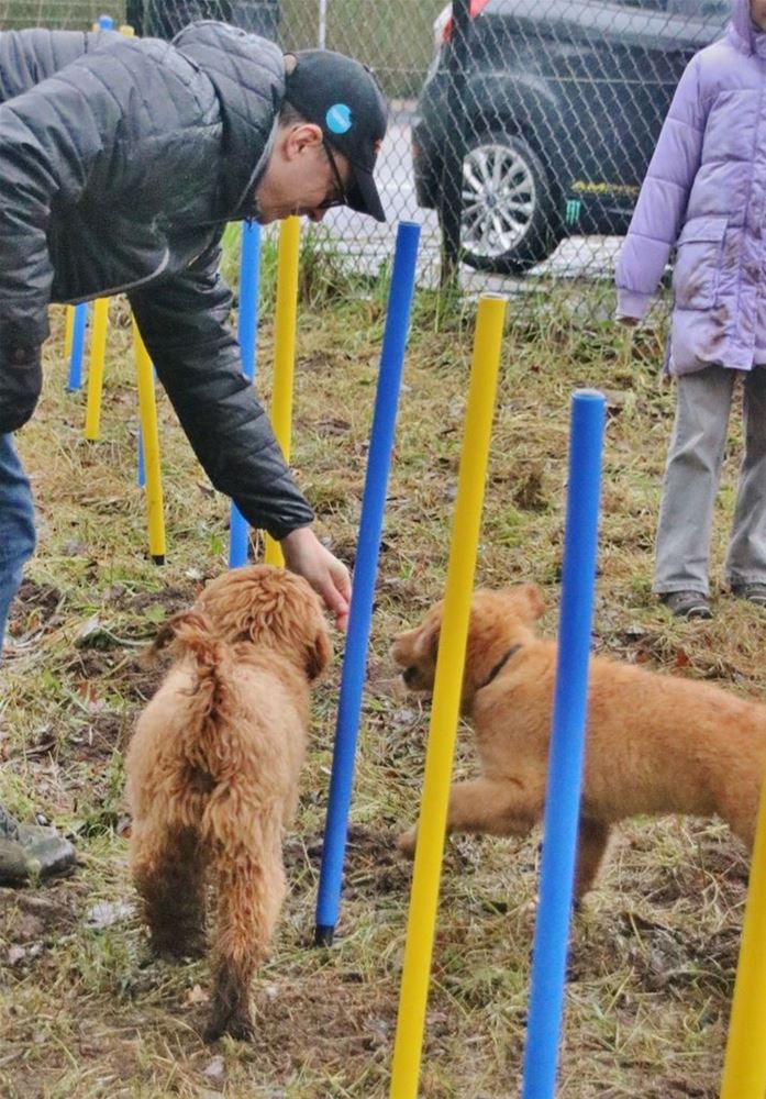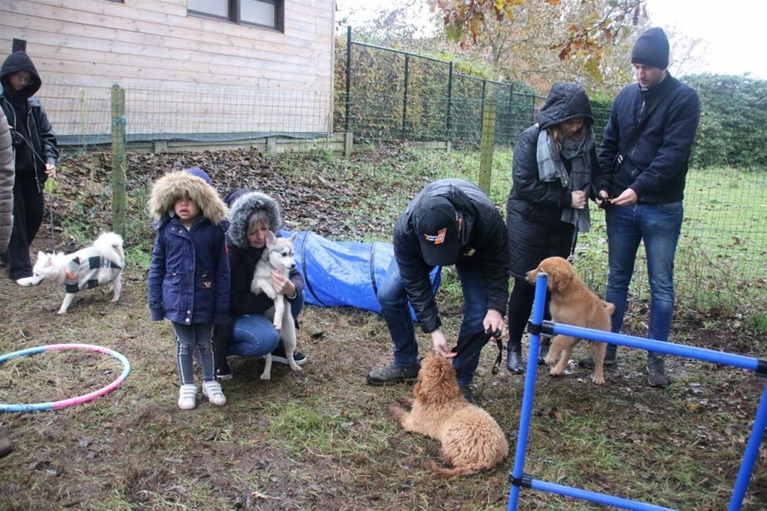 Ook al is het geen weer om een hond uit te laten, op de weide achter dierenartsenpraktijk Gwen Goris was het ook vandaag weer puppyfeest. Geregeld komen daar puppy's die moeten wennen aan de omgang met soortgenoten. Ze krijgen de eerste beginselen van gehoorzaamheidstraining en al een hindernissenparcours. Maar hoe dan ook ... geduld blijft een mooie deugd. (foto's Tony Sempels)79180