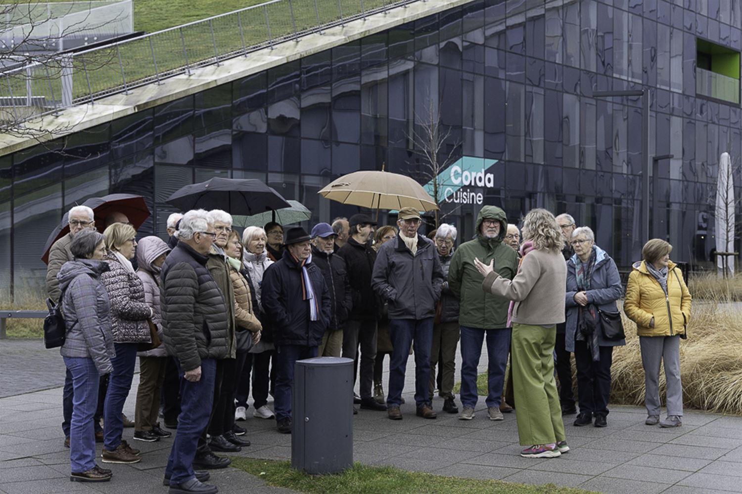 De leden van Raak-Overdag brachten vandaag een bezoek aan de Corda Campus in Hasselt. Op de vroegere Philips-terreinen klopt tegenwoordig het hart van de technologie en innovatie, het is dan ook één van de grootste campussen in zijn soort in de Euregio Maas-Rijn. Het gezelschap werd vanmorgen eerst op sleeptouw genomen door Roel Mentens, de Corda Incubator Manager en Heusdenaar van afkomst. Onderweg gaf hij uitleg over het ontstaan van de campus onder de vleugels van de LRM. Momenteel zitten er zowat 250 bedrijven met 5.000 medewerkers verspreid over 14 ha. Nu is Corda Campus 8 in uitbouw met de revolutionaire Corda Arena, een multifunctioneel digitaal evenementencomplex met plaats voor maximaal 4.000 mensen. Ook TVL heeft daar zijn nieuwe studio’s en redactie. Later wordt nog de verbinding met het station Kiewit aangepakt om de mobiliteit te versterken. Na de rondleiding maakten de bezoekers kennis met één van de bars, waar koffie en koekjes op hen wachtten. (foto’s Joseph Bams)84381