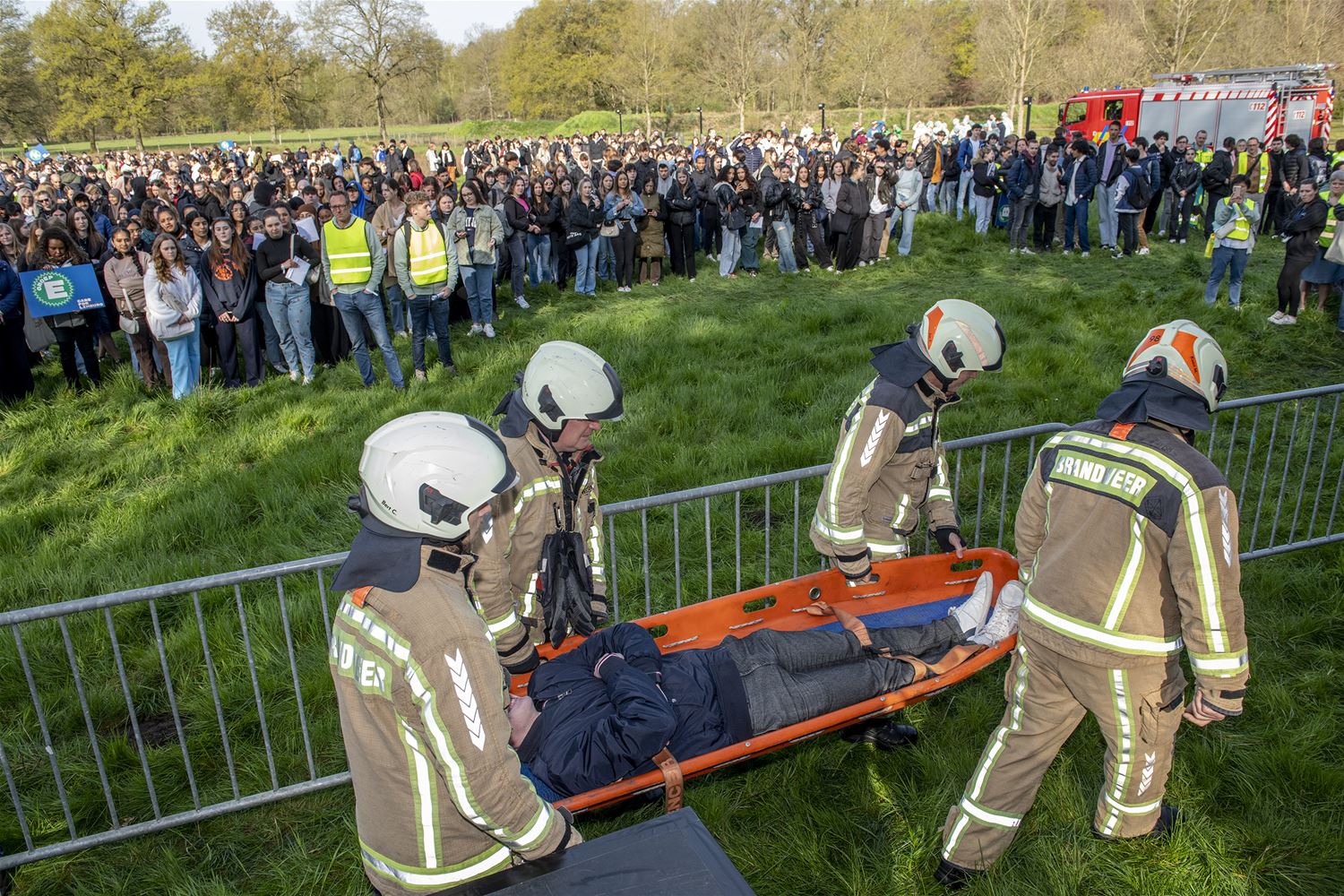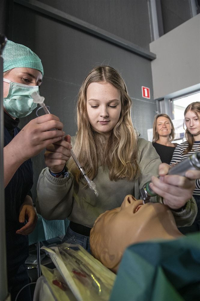Care for Limburg op Domein Bokrijk, was vandaag een succes. Zoals aangekondigd verzamelden ruim 1000 leerlingen van de 3de graad secundair onderwijs voor een event waar liefst 17 Limburgse zorgpartners verschillende zorgopleidingen in the spotlight zetten. En het begon spectaculair ... met een explosie gevolgd door toesnellende brandweerwagens, ambulances en zelfs een helikopter. Dat rampscenario werd de rode draad doorheen de dag. De aanwezige leerlingen konden in groepjes van 15 deelnemen aan 5 verschillende en interactieve workshops. Zo maakten ze kennis met de diversiteit van de opleidingen in de zorg zoals verpleegkunde, kinesitherapie, vroedkunde, ergotherapie, geneeskunde … Jeroen Ruysen van het Sint-Franciscusziekenhuis is voorzitter van organisator LPZO (Limburgs Platform voor zorg- en onderwijsinstellingen): “Er zijn nog steeds grote tekorten in de sector, het aantal vacatures blijft pieken en tegelijkertijd lijken jongeren minder voor zorgopleidingen te kiezen. Hiermee hopen we dat er vandaag een nieuwe wereld voor deze Limburgse jongeren opengaat. Ook federaal minister van Volksgezondheid Frank Vandenbroucke en zijn Vlaamse college van Werk Jo Brouns waren enthousiast over het initiatief en ook zij hopen dat Care for Limburg heel wat jongeren doet kiezen voor een opleiding en job in de zorg.77356