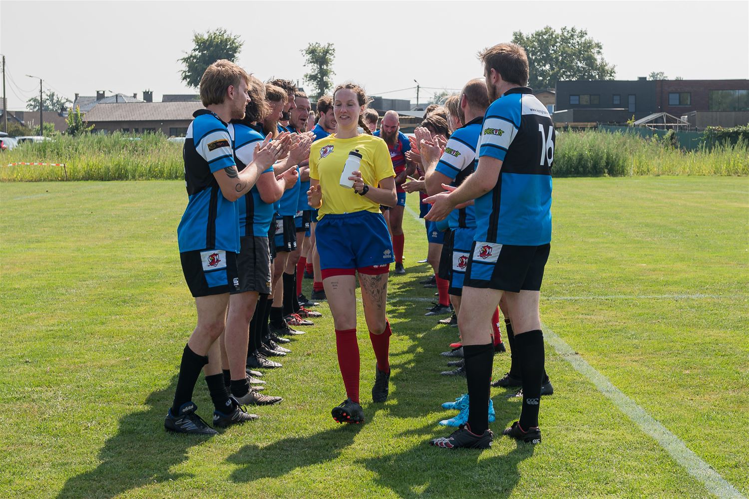Zoals bij de meeste balsportclubs, is het ook bij Rugbyclub 9 na de vakantie serieus aan het kriebelen om er in te vliegen. Letterlijk en figuurlijk. En dus werd vandaag al een tornooitje georganiseerd waarbij zowel dames- als herenploegen het tegen elkaar opnamen. Vriendschappelijke wedstrijden, maar potige partijen die telkens weer werden afgesloten met respect voor de tegenstander. Ook de supporters waren al present. En aan deze dag was ook nog een feestelijk lint vastgeknoopt want Rugbyclub 9 heeft zijn gloednieuwe kantine op Sportpark Vrijheid nu ook officieel geopend. Het is een moderne, ruime kantine met een terras, een meerwaarde voor het sportpark. (foto's Roman Martyka)82868