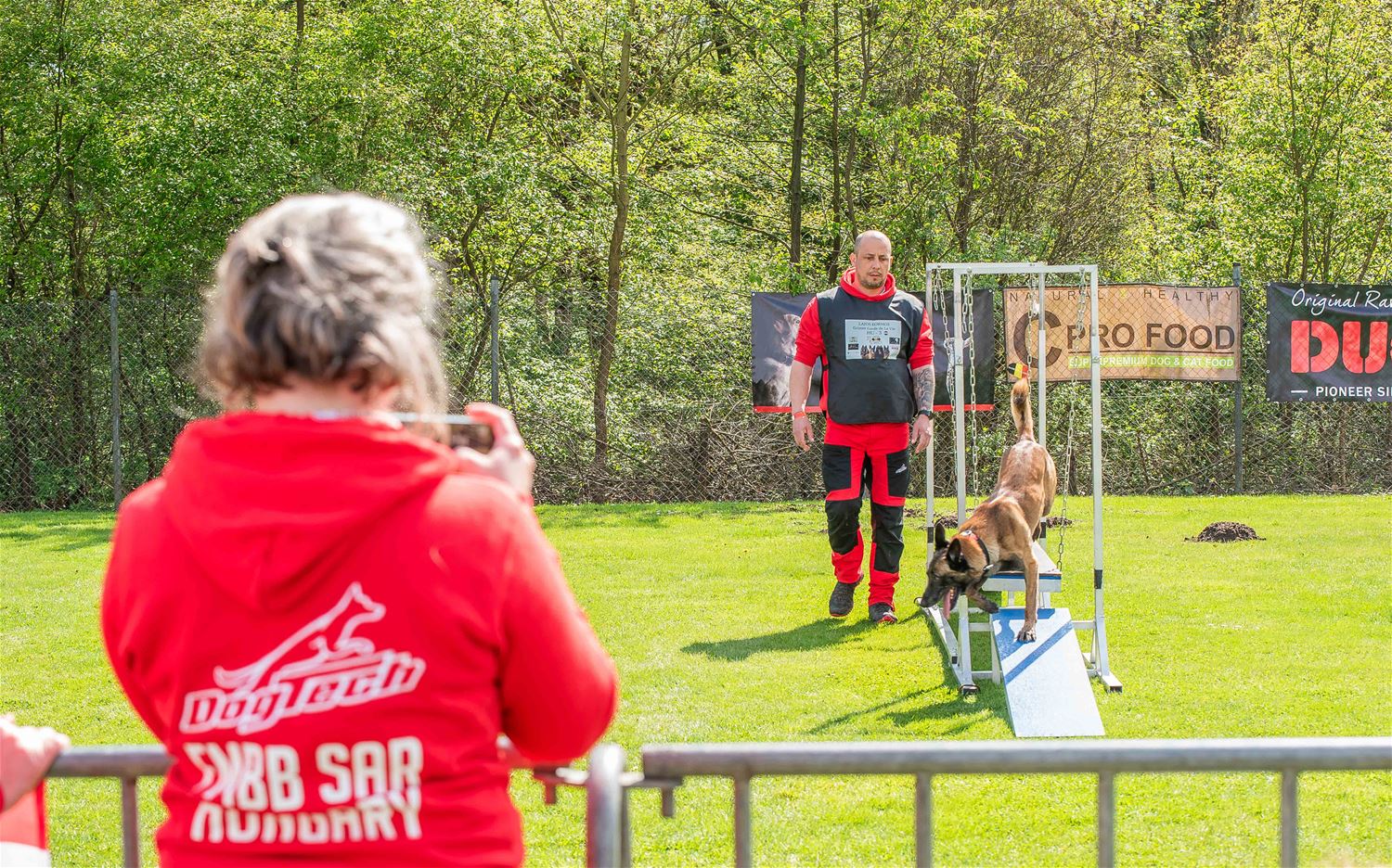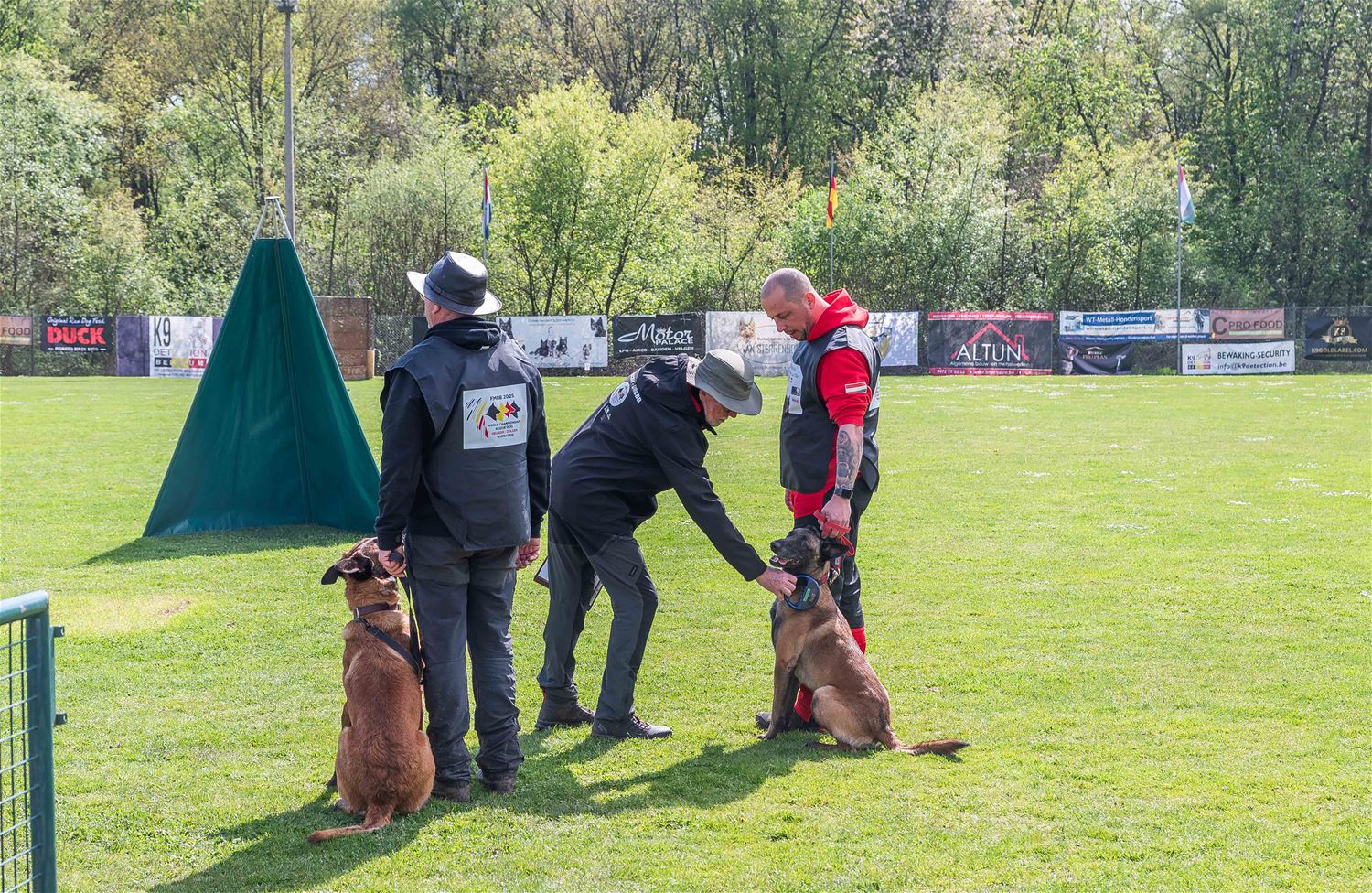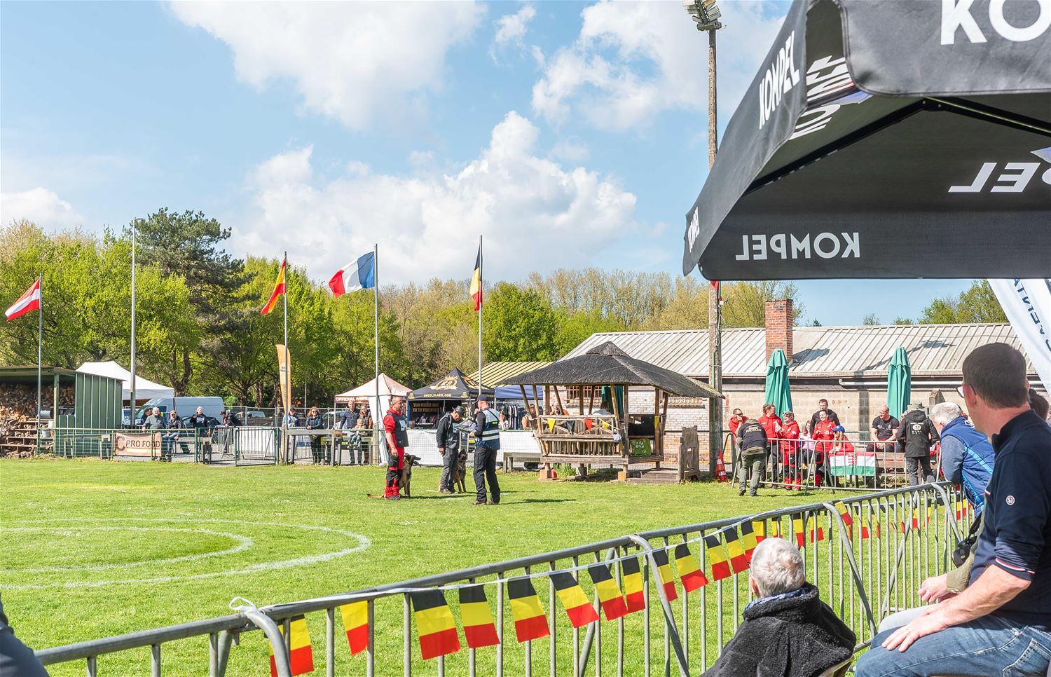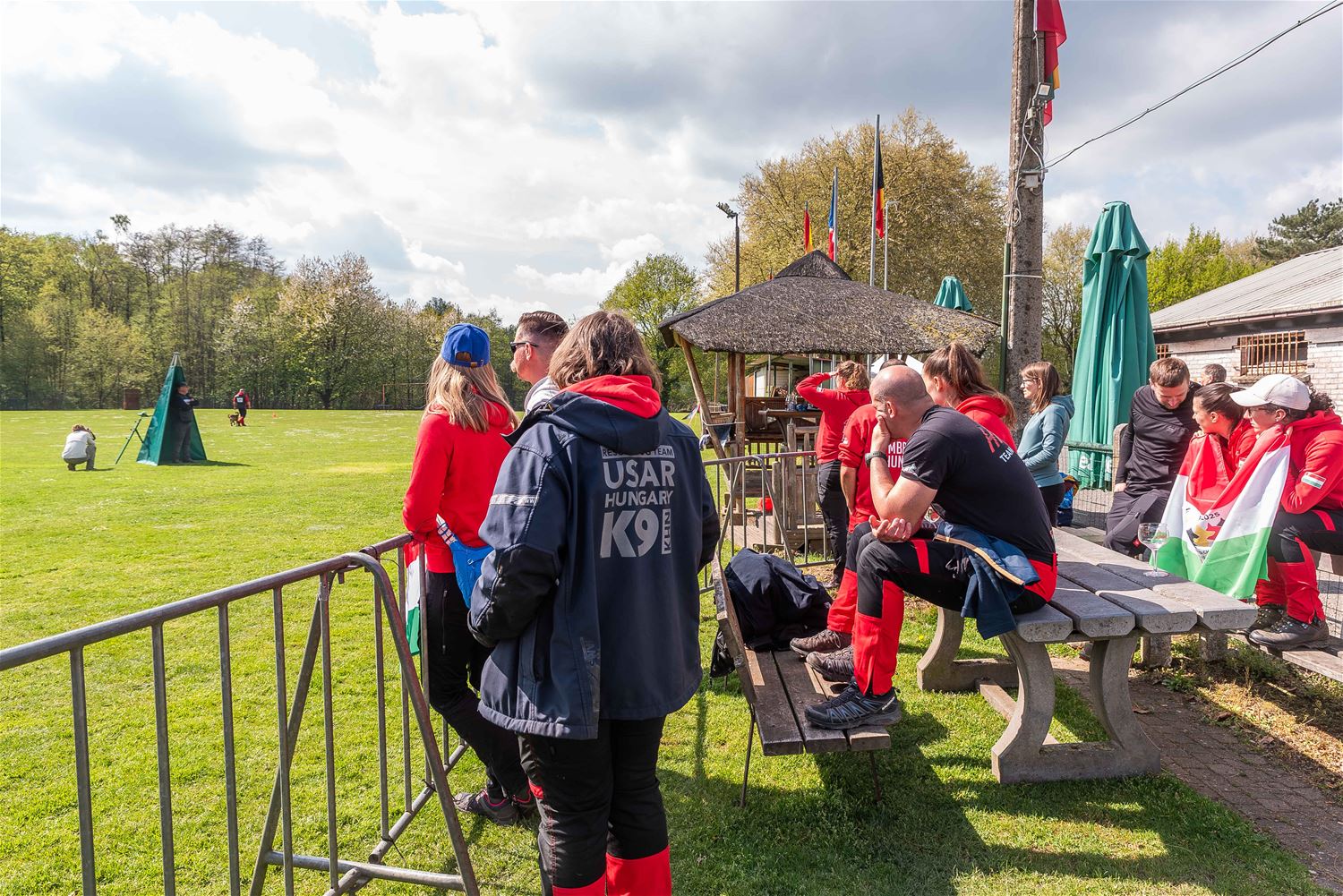 Een nieuwe dag, nieuwe proeven op de wereldkampioenschappen voor reddingshonden op Helzold. Vandaag moesten de begeleiders met hun honden het terrein op voor gehoorzaamheidsproeven. De honden moesten daarbij onder meer op commando hindernissen nemen, zoals door een slurf kruipen, wat niet evident is. (foto’s Ann Jordens)85057