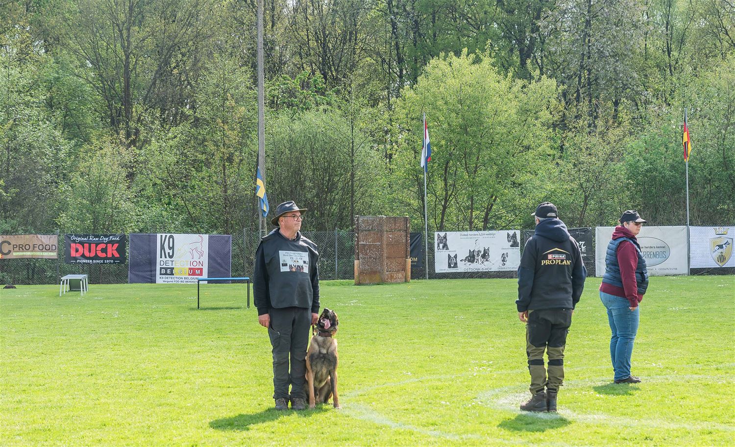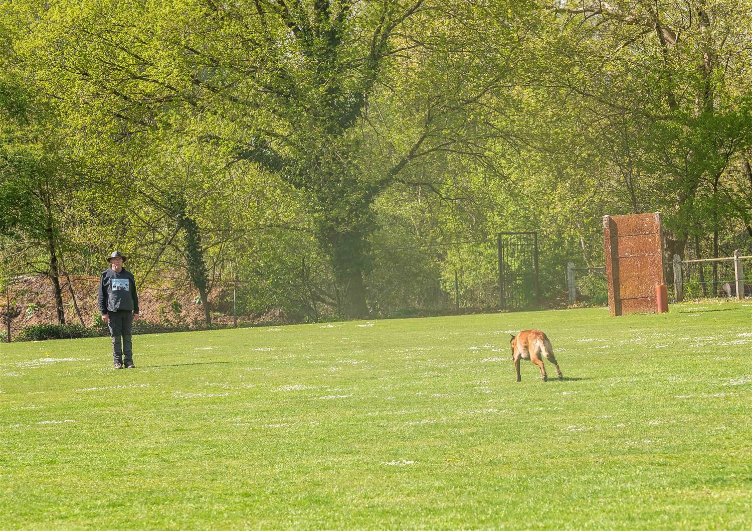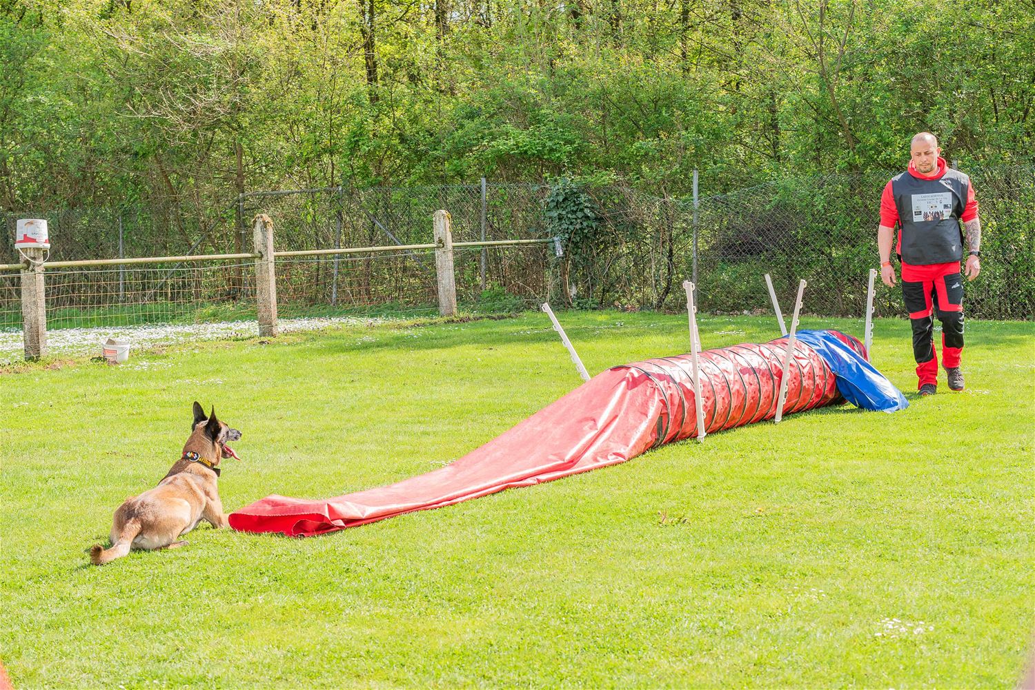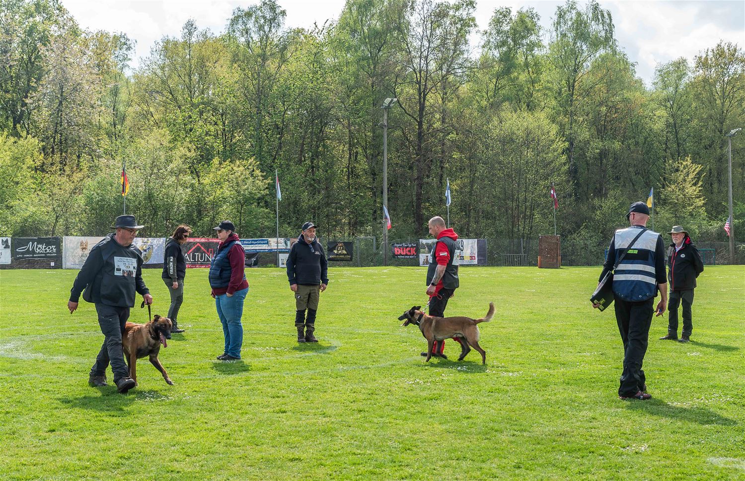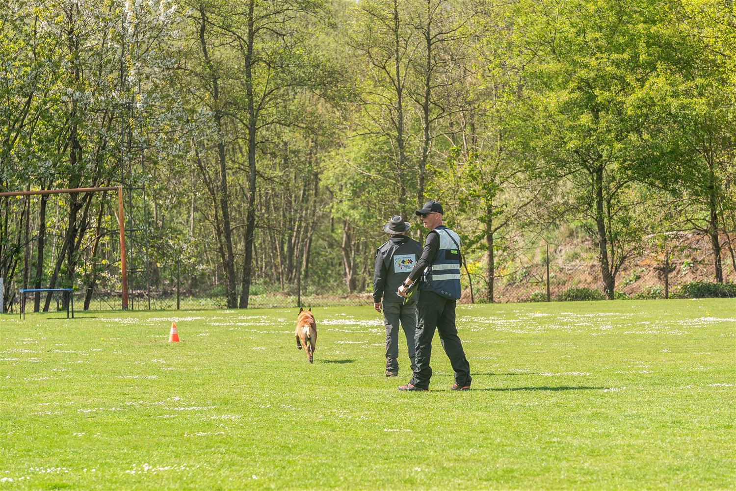 Een nieuwe dag, nieuwe proeven op de wereldkampioenschappen voor reddingshonden op Helzold. Vandaag moesten de begeleiders met hun honden het terrein op voor gehoorzaamheidsproeven. De honden moesten daarbij onder meer op commando hindernissen nemen, zoals door een slurf kruipen, wat niet evident is. (foto’s Ann Jordens)85057