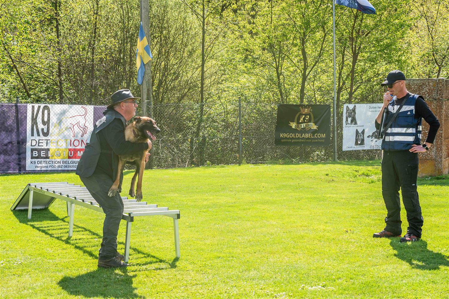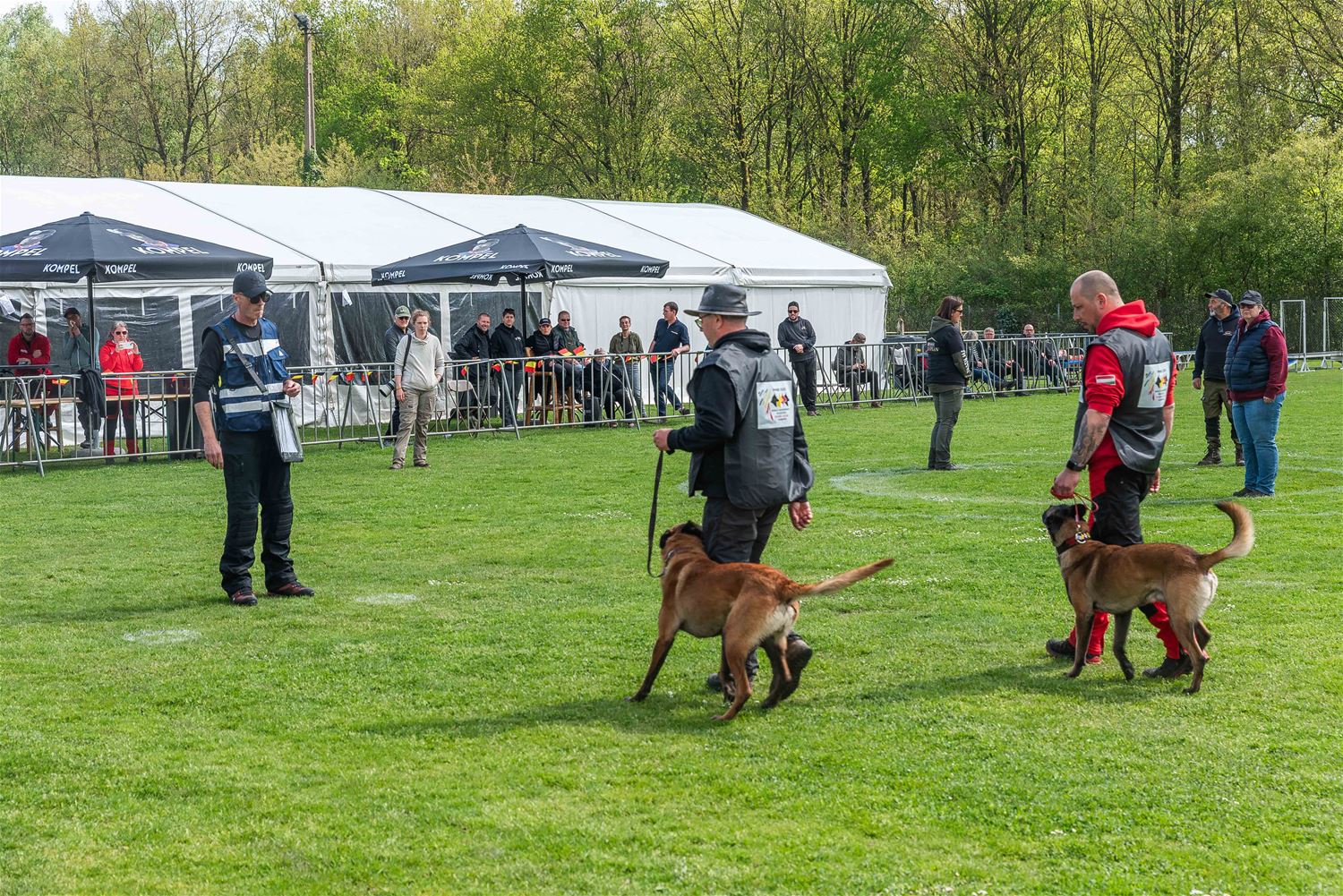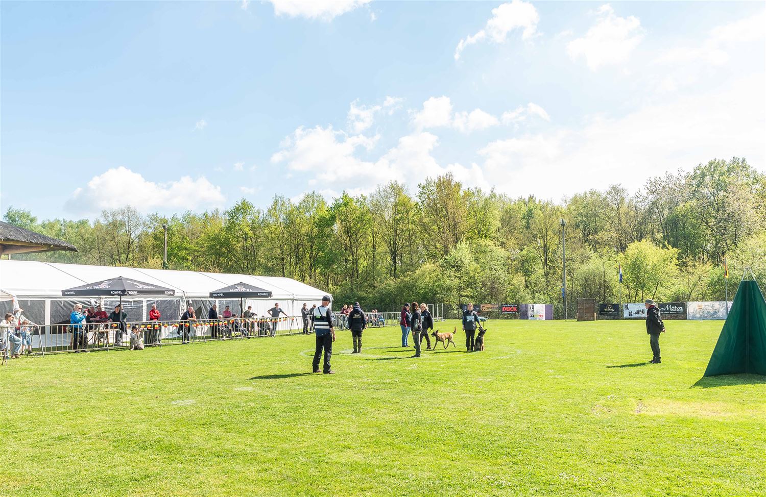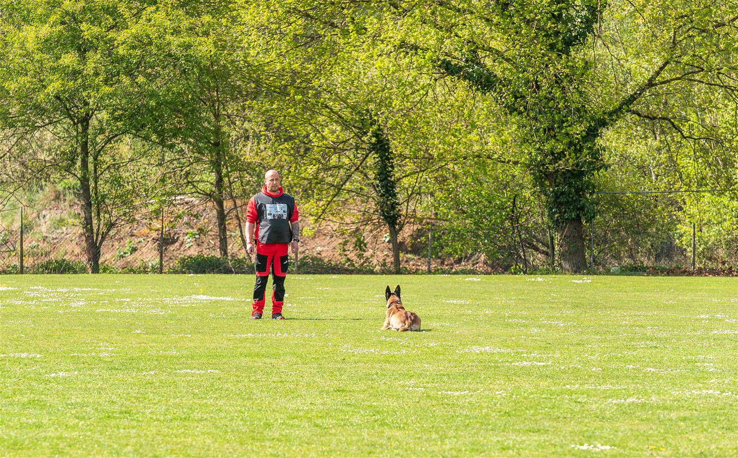 Een nieuwe dag, nieuwe proeven op de wereldkampioenschappen voor reddingshonden op Helzold. Vandaag moesten de begeleiders met hun honden het terrein op voor gehoorzaamheidsproeven. De honden moesten daarbij onder meer op commando hindernissen nemen, zoals door een slurf kruipen, wat niet evident is. (foto’s Ann Jordens)85057