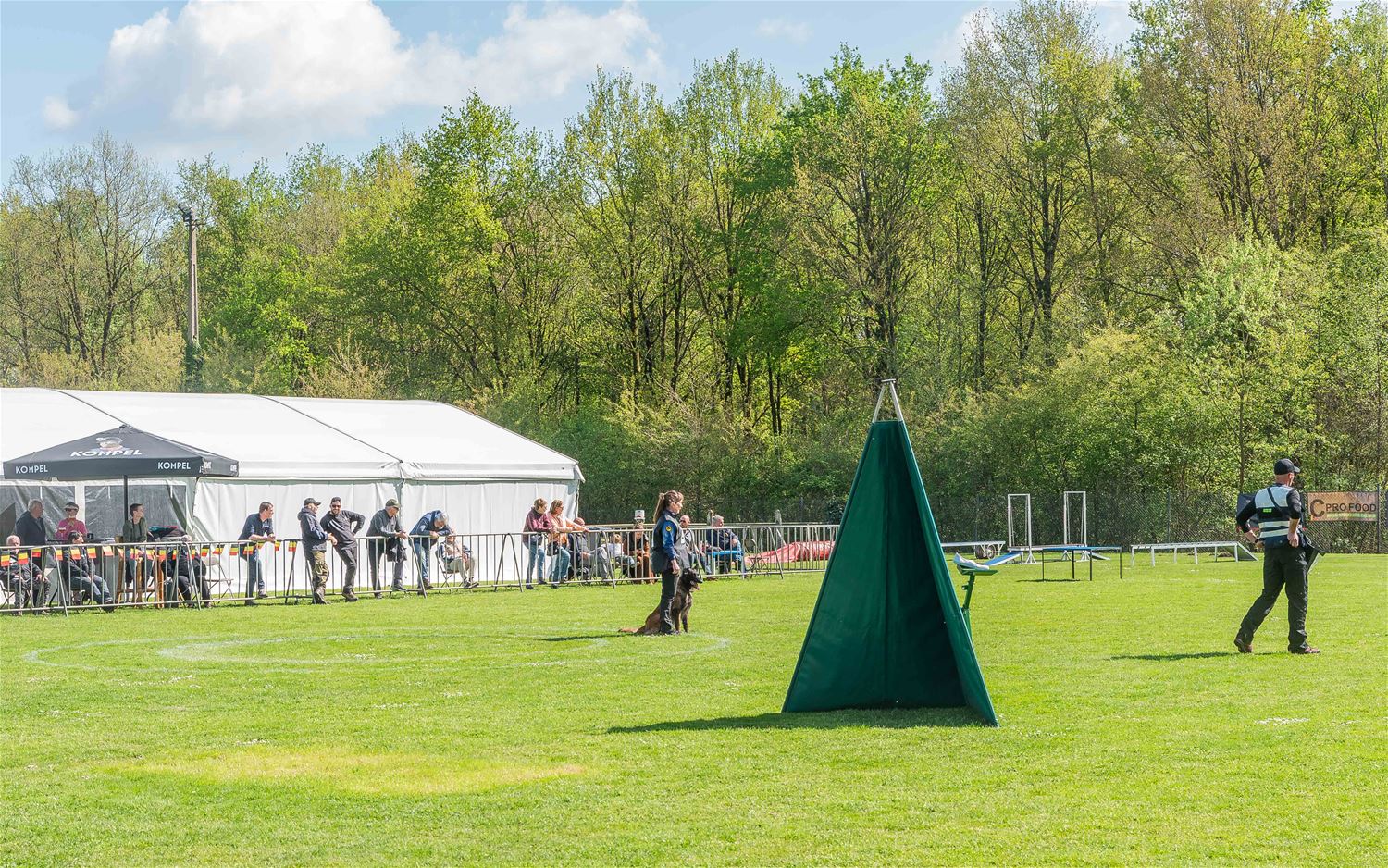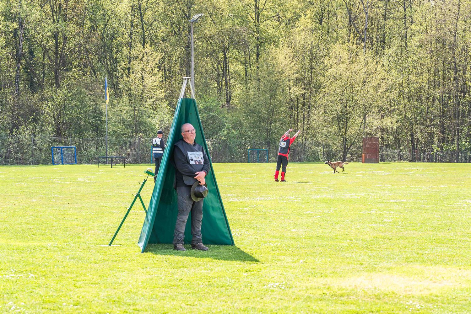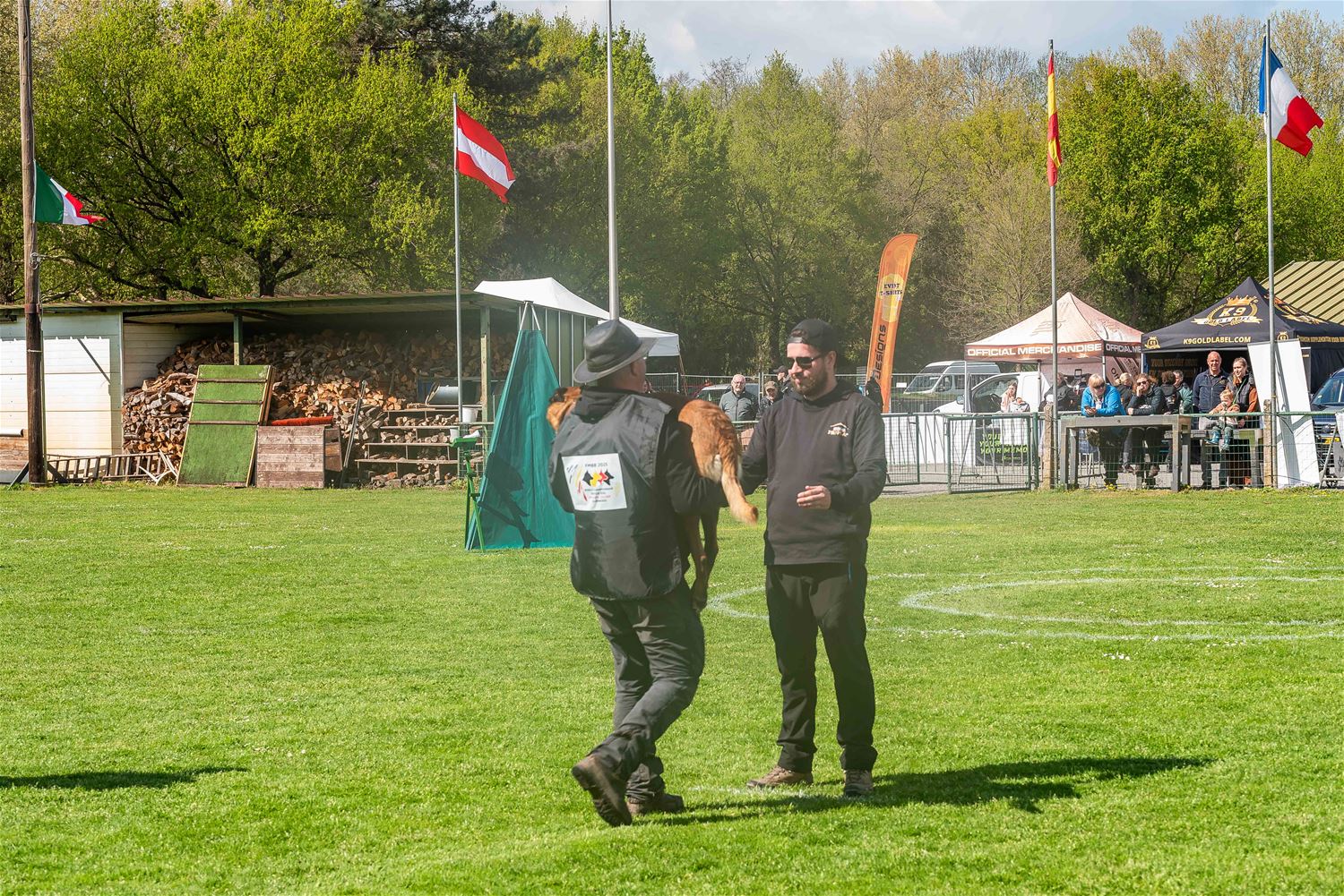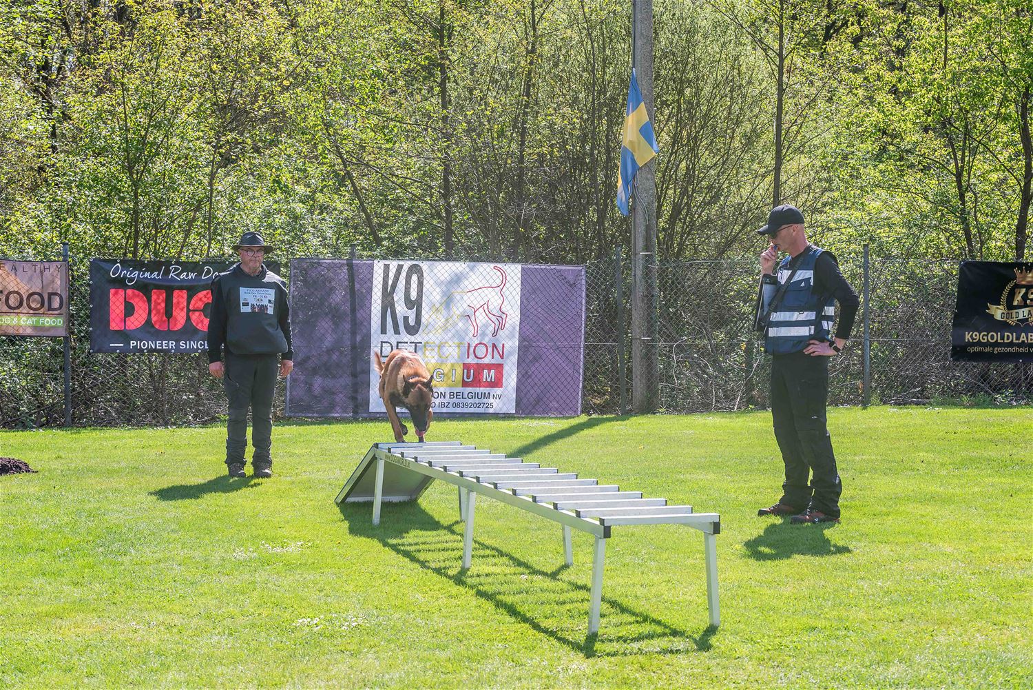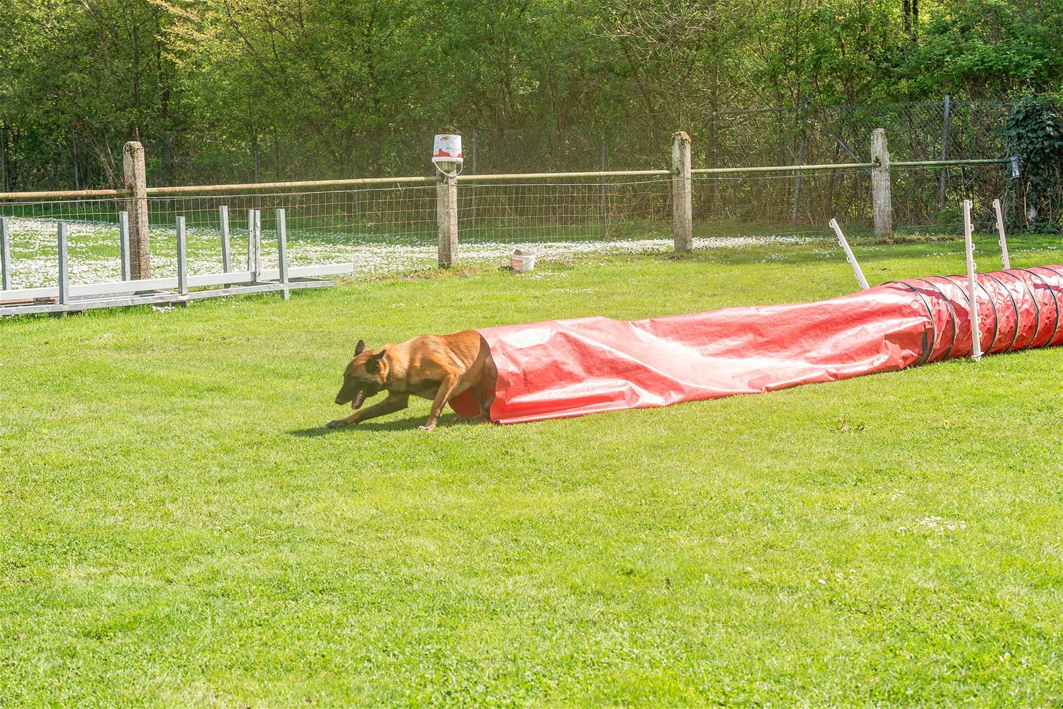 Een nieuwe dag, nieuwe proeven op de wereldkampioenschappen voor reddingshonden op Helzold. Vandaag moesten de begeleiders met hun honden het terrein op voor gehoorzaamheidsproeven. De honden moesten daarbij onder meer op commando hindernissen nemen, zoals door een slurf kruipen, wat niet evident is. (foto’s Ann Jordens)85057