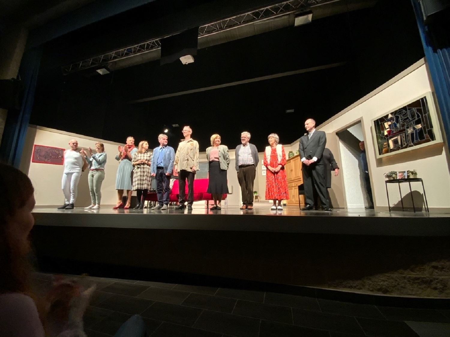 "The show must go on", het wordt vlot in de mond genomen maar is in de prakijk niet evident. Dat heeft toneelgroep Crescendo in Viversel ondervonden. Vorig weekend moest de première door een coronabesmetting uitgesteld worden en daags voor de nieuwe première van gisteren kwam het bericht van het plotse overlijden van regisseur Davy Bikkems. Na intern overleg werd in afspraak met de familie van de regisseur besloten om toch te spelen. En hoe zwaar het ook viel, de voorstelling werd gespeeld zoals de regisseur het hen had bijgebracht. Na afloop werd het publiek op de hoogte gebracht en kreeg Davy Bikkems een postuum applaus. (foto's Ronny Swinnen)
