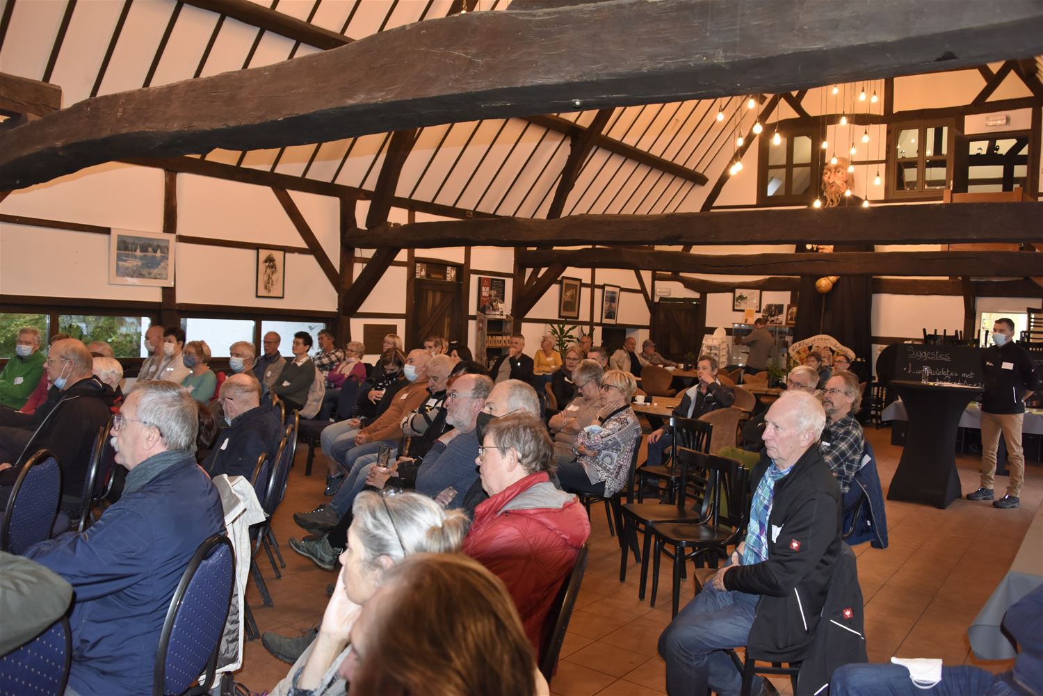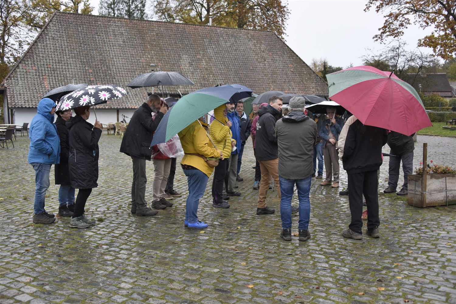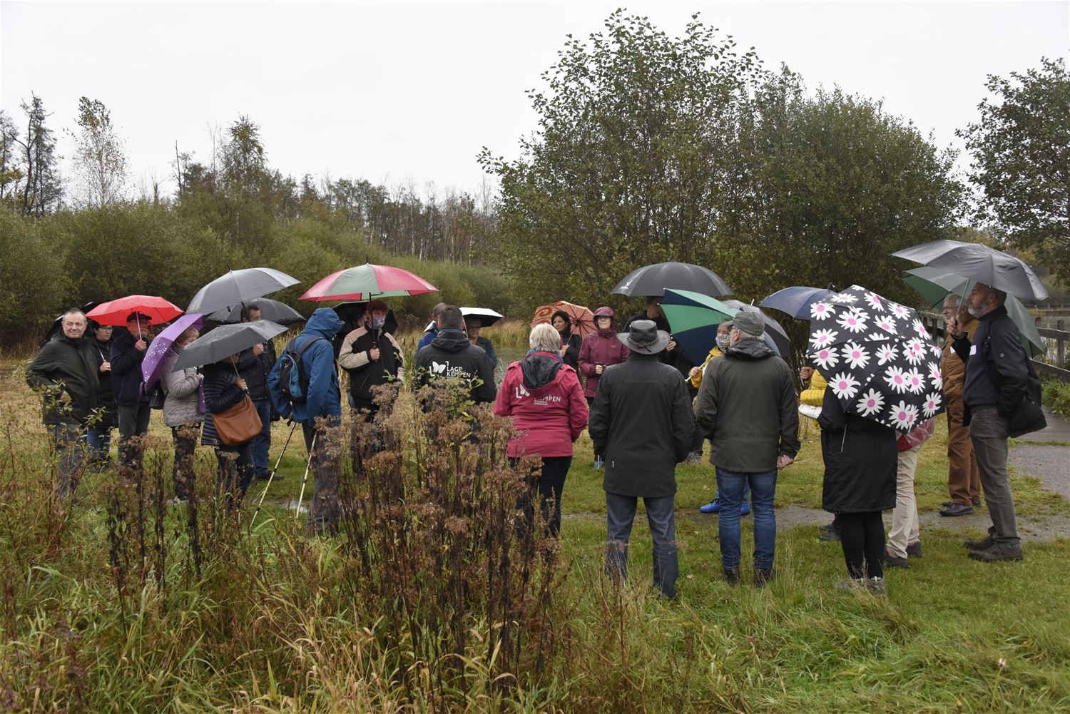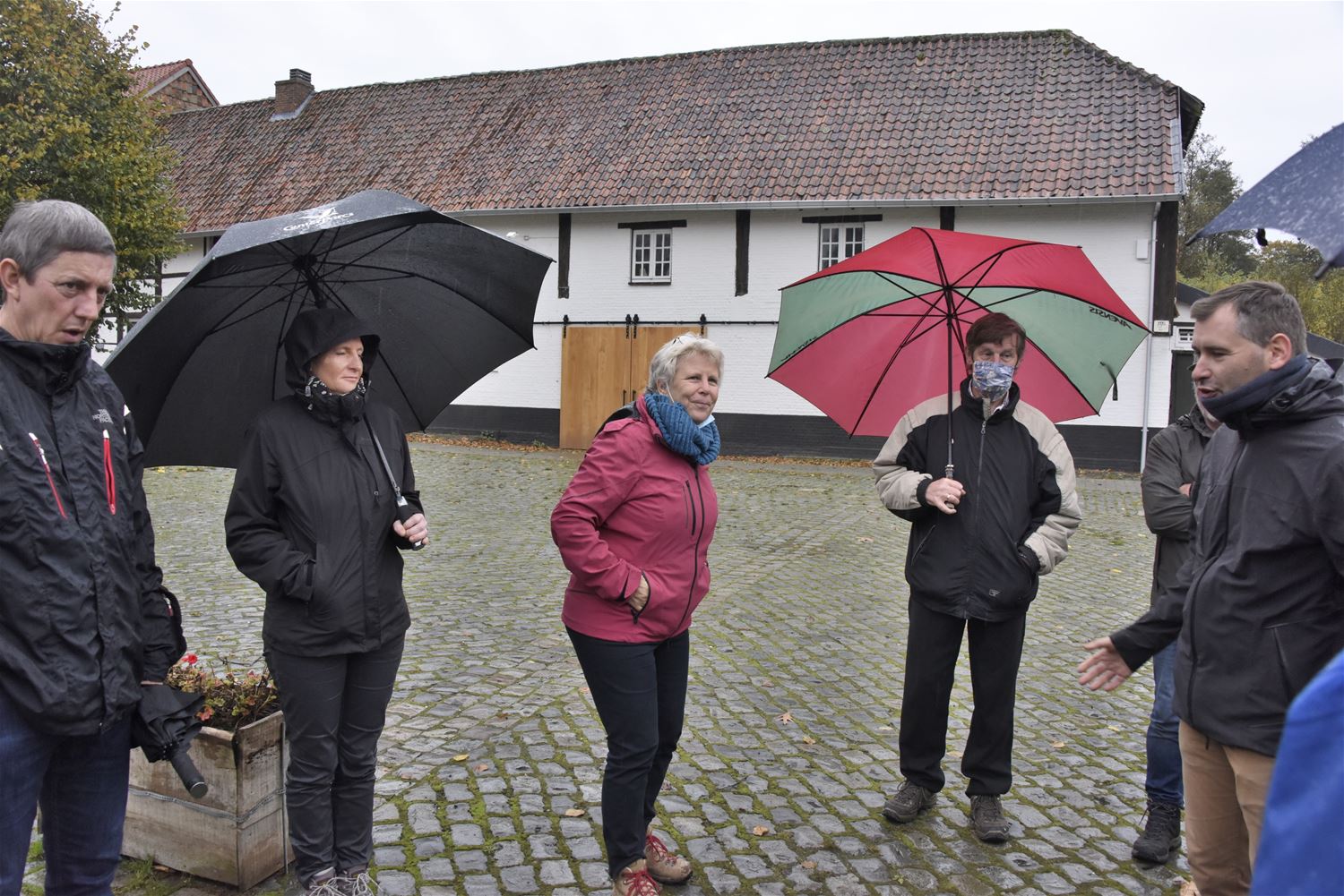 Het Regionaal Landschap Lage Kempen hield vandaag op domein Bovy een wandelmeter- en peterdag. Wandelmeters en peters zijn vrijwilligers die meerdere keren per jaar een wandelroute in hun omgeving controleren en problemen melden. Ze controleren de wegwijzers, de staat van het pad, de infoborden,…. Soms geven ze uit eigen ervaring tips om de route te verbeteren. De Limburgse Landschapsteams zorgen dan voor een oplossing, af en toe moeten ook externen verwittigd worden. Dankzij de wandelpeters en -meters kunnen alle wandelaars dus genieten van mooie en veilige paden. Daarvoor krijgen ze jaarlijks een bedankje. Ze waren vandaag met een 70-tal. Na een dankwoordje van burgemeester Mario Borremans en directeur Ilse Ideler van het Regionaal Landschap Lage Kempen volgde een ... een wandeling of wat had je gedacht. Dit gezelschap liet zich ook niet afschrikken door het mindere weer. Ze konden zich trouwens nadien weer opwarmen tijdens een gezellig samenzijn in Bistro Bovy. (foto's Roger Convents)71151