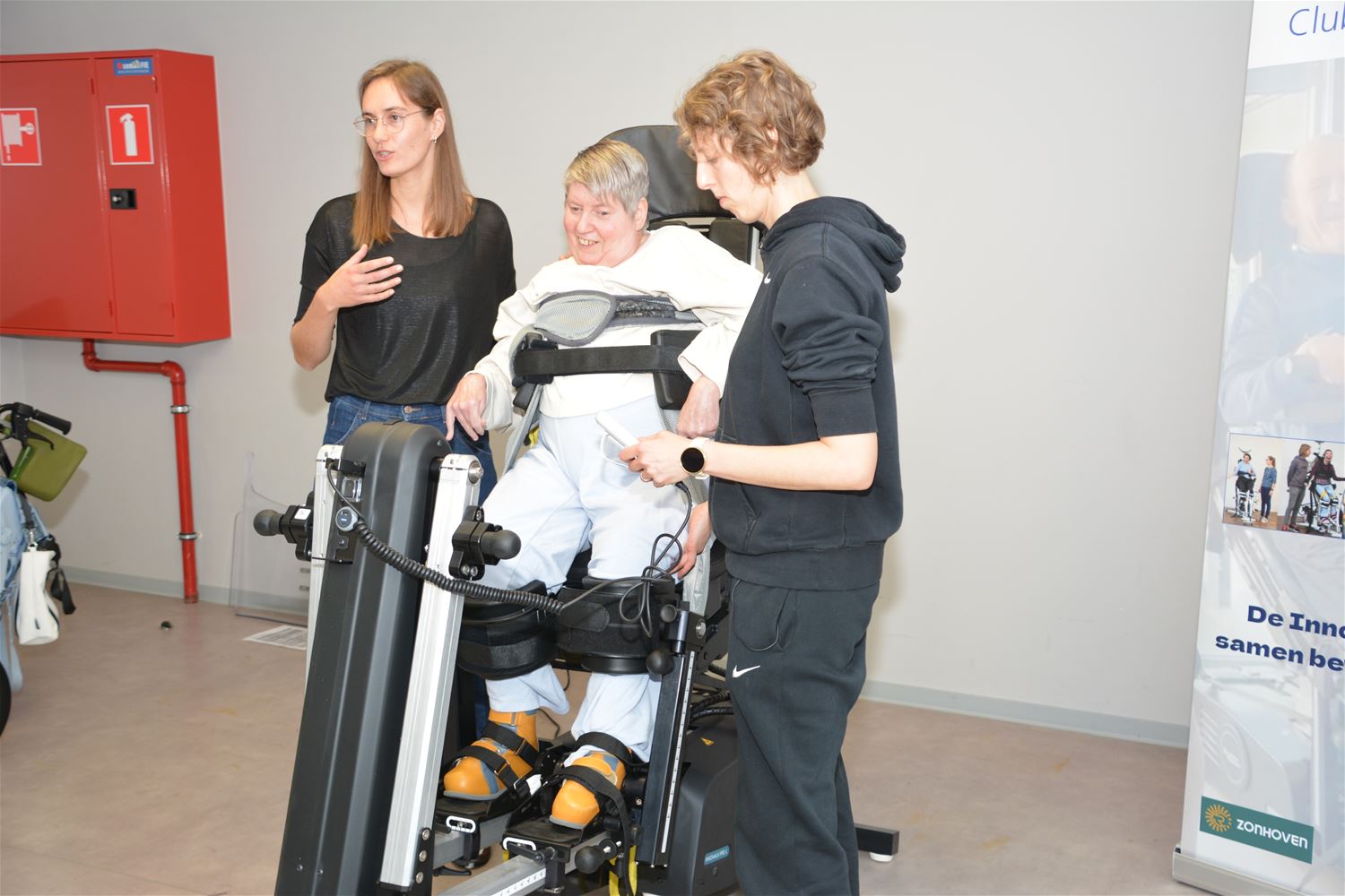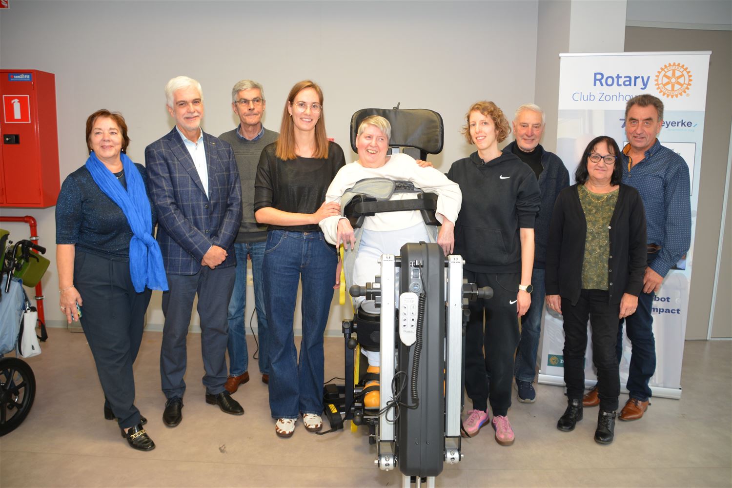 Een feestelijk moment bij ‘t Weyerke vanmorgen want daar werd de Innowalk Pro officieel in gebruik genomen. Het gaat om een innovatieve staprobot die het voor mensen met een aangeboren of verworven hersenletsel mogelijk maakt om op een veilige en gecontroleerde manier rechtop te bewegen. Het apparaat kostte 68.000 euro, een som die ’t Weyerke nooit zelf kon betalen. Gelukkig zette Paul Pilotto van Rotary Club Zonhoven zijn schouders onder het project. Hij ging op zoek naar een geschikt toestel en klopte vervolgens aan bij collega Rotaryclubs. Daar vond hij gehoor want het project kreeg niet alleen de steun van Rotary Zonhoven maar ook van de clubs Weert, Genk, Sankt Vith, Houthalen Midden-Limburg, Tessenderlo en Sittard-Geleen Deux Villes. En omdat het om een cluboverschrijdend initiatief ging deed ook Rotary Foundation haar duit in het zakje, waarmee heel de investering werd samengebracht. “Onze clubs werken al jaren samen aan humanitaire projecten,” vertelt Jos Breemans, voorzitter foundation projecten Rotaryclub Zonhoven. “Met de Innowalk wilden we iets realiseren dat een tastbaar en blijvend verschil maakt voor mensen in onze eigen regio.”