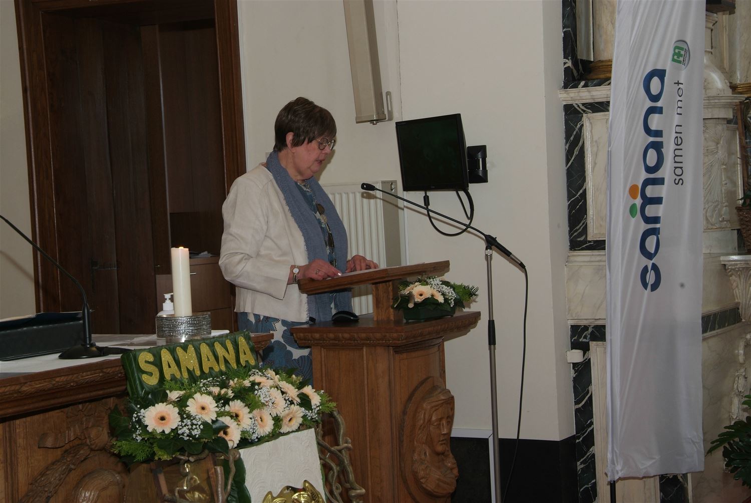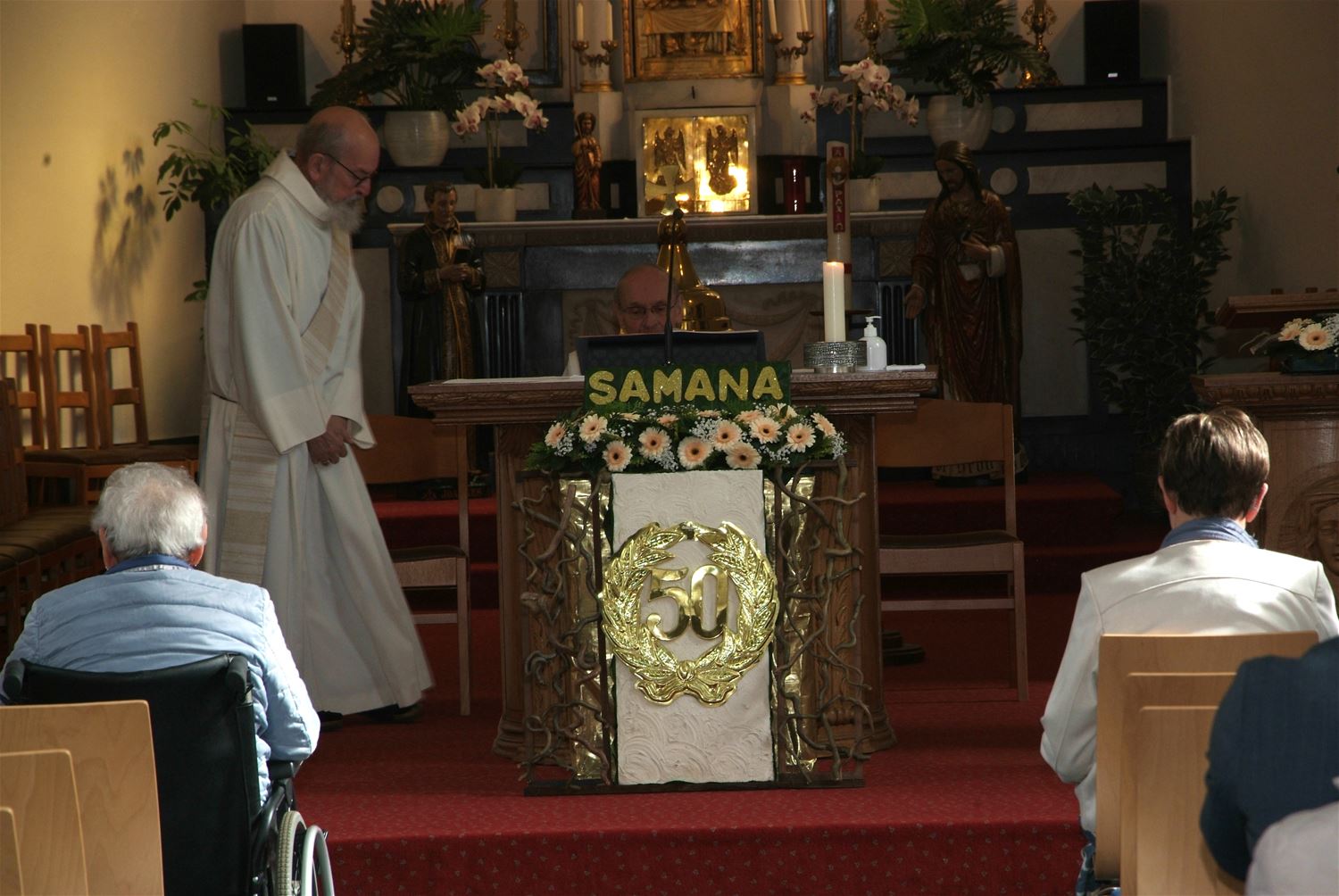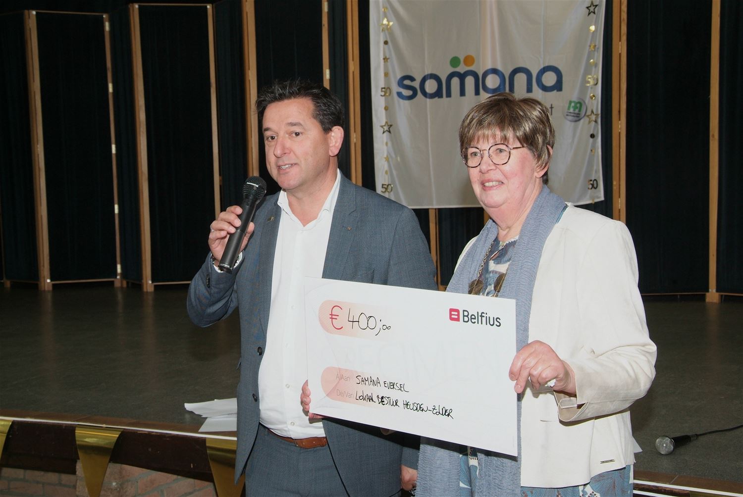 Een feestelijke dag vandaag in Eversel want daar vierde Samana Eversel zijn 50ste verjaardag. Het vroegere Ziekenzorg biedt heel het jaar door geregeld activiteiten aan voor de leden of staat klaar voor wie nood heeft aan een babbel of bezoek. De feestelijkheden startten vandaag met een eucharistieviering. Daarna schoven 79 genodigden aan voor een fijne maaltijd. Burgemeester Mario Borremans kwam de jubilerende vereniging feliciteren met een cheque van het lokaal bestuur. (foto’s Rudi Rykers)88116