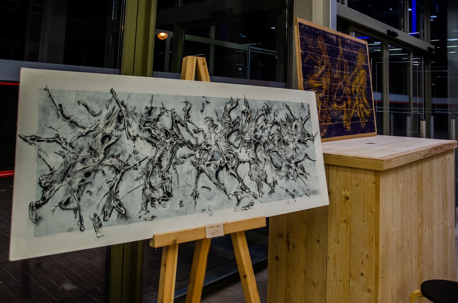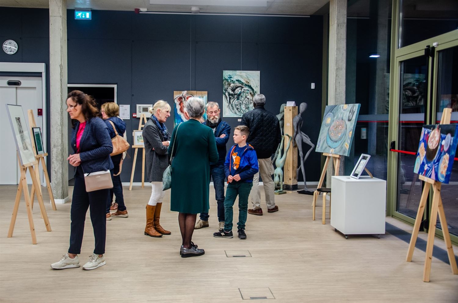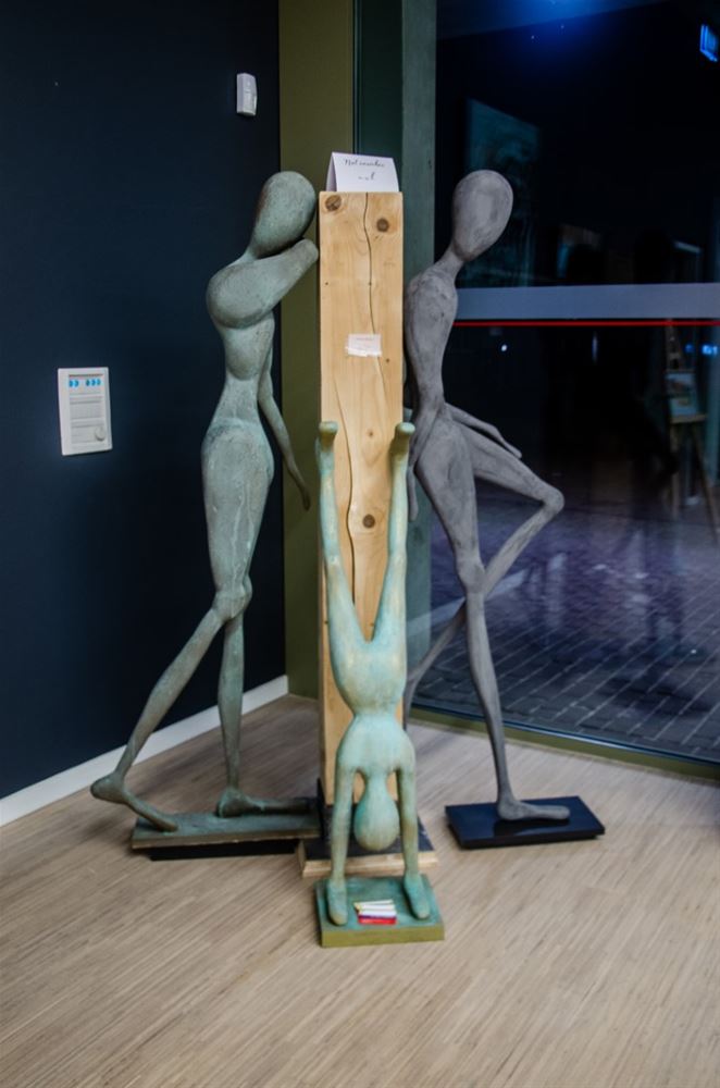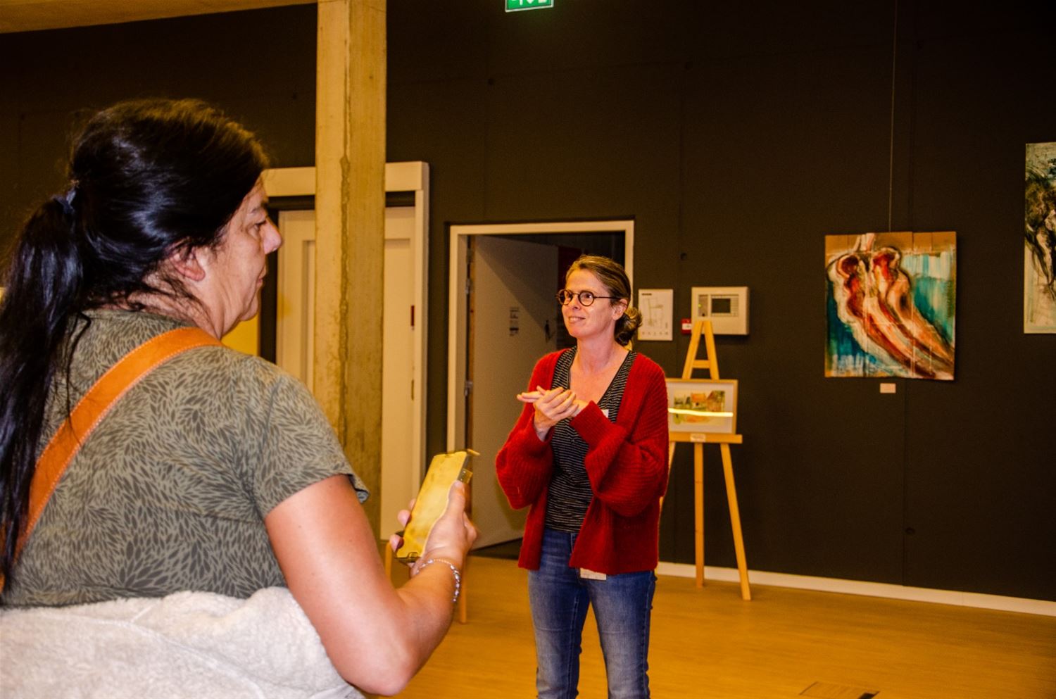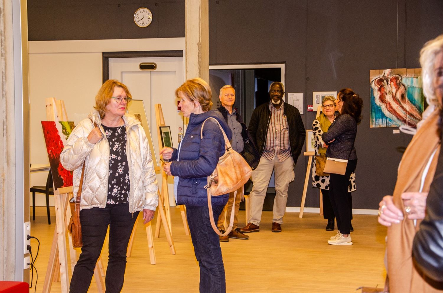 In de bibliotheek is vanavond de tentoonstelling 'Samen' geopend. De kunstkringen van Heusden-Zolder hebben handen nog eens in elkaar geslagen en de titel 'Samen' is dan ook niet toevallig gekozen. Bibliothecaris Saskia Schepers was blij om zo'n aanbod van gevarieerde kunstwerken te verwelkomen tussen de boeken en multimedia. Daar kun je nog tot eind deze maand kunstwerken bewonderen van Laila Abdelmalek, Joke Myszta, Esther Stevens, Johan Janssen, Mirella Parisi, Monique Pluym, Ria Smeets, Louisa Vaes, Brigitte Thijs, Marie-Jeanne Smets en Sonja Engelen. Zeker de moeite om eens binnen te springen tijdens de openingsuren van de bib. (foto's Heidi Daniëls)75694