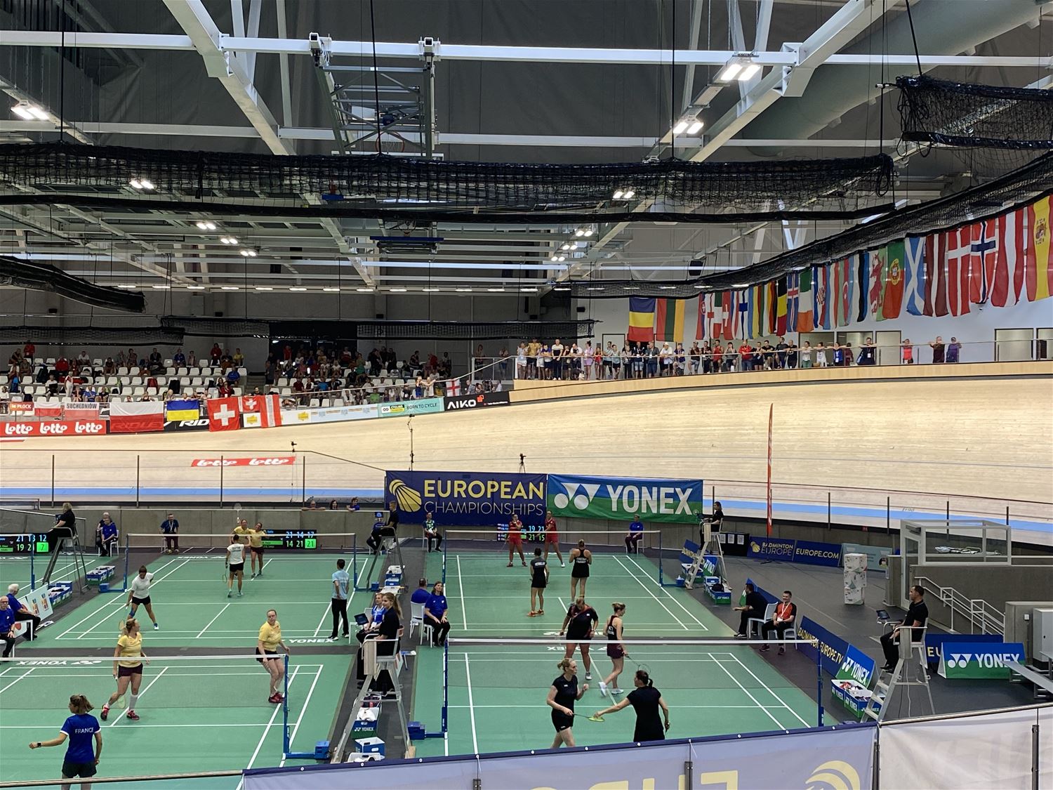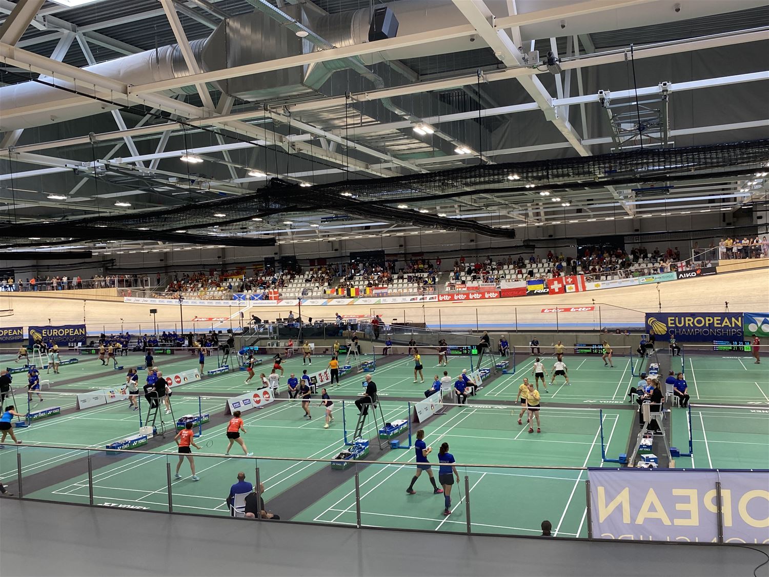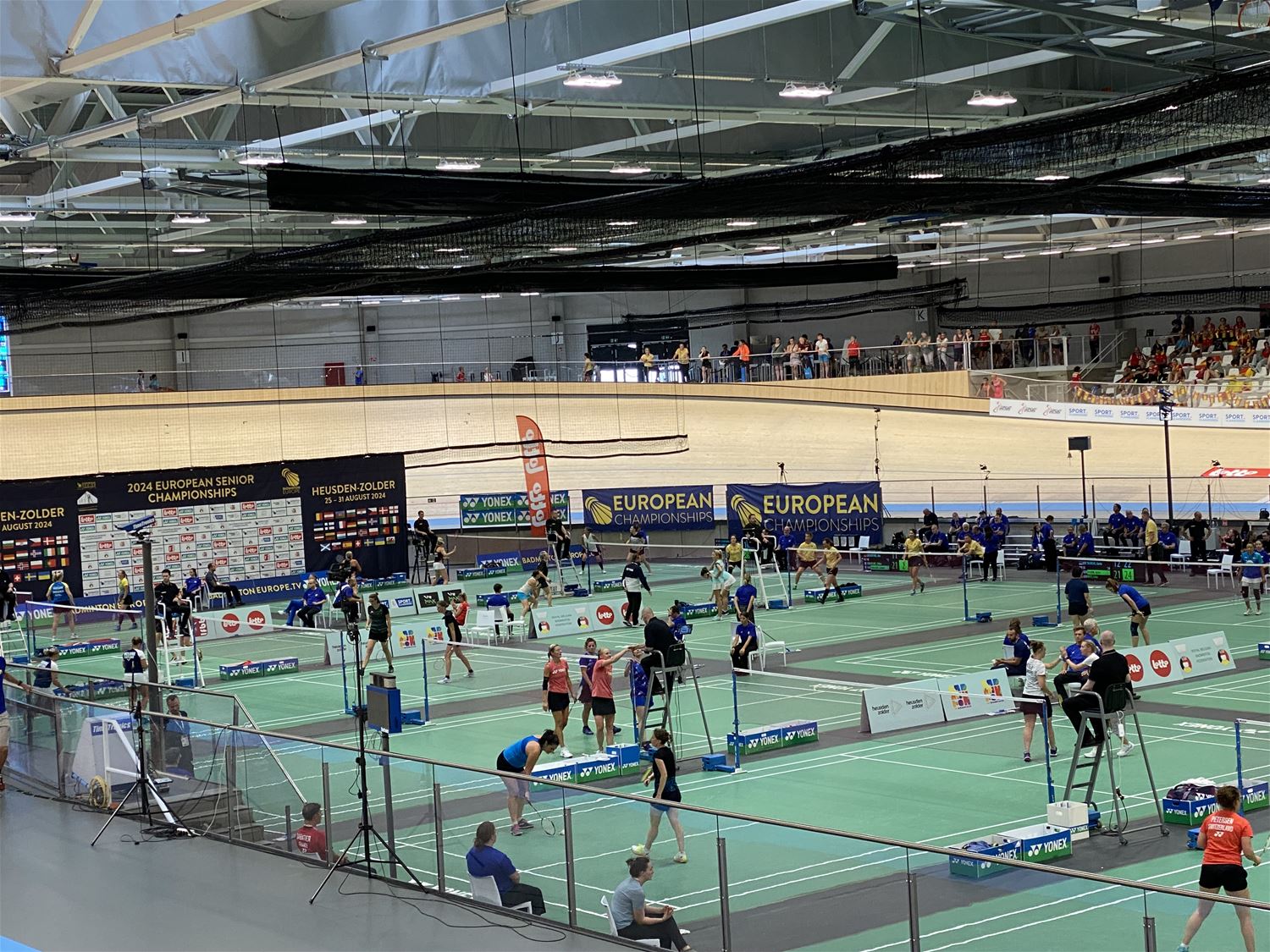 Ook op de derde dag van de Europese kampioenschappen badminton voor senioren zat de sfeer in de velodroom er nog goed in. Terwijl op het middenplein de vele wedstrijden zich in ijltempo opvolgen en er voortdurend beweging is, worden de spelers vanop de tribune aangemoedigd door hun landgenoten. Gezellig om ter plekke mee te maken, de toegang is gratis. En via deze link kan je het online volgen. 82817