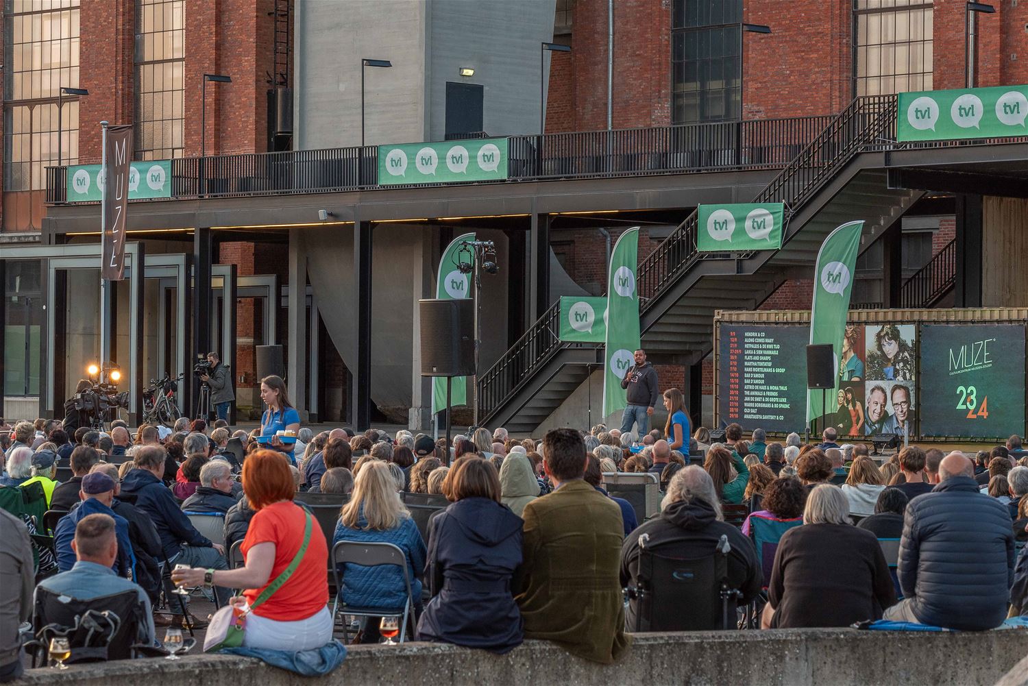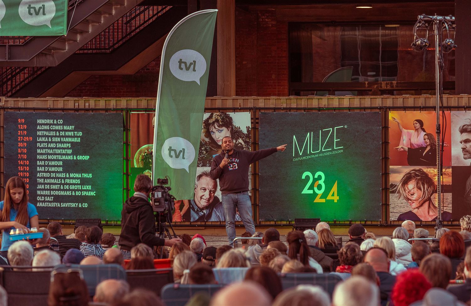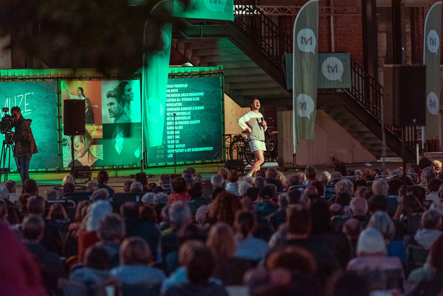 Erg warm was het niet bepaald, maar toch kwam vanavond de zon haar sympathie nog betuigen voor de laatste Zomervertelling van TVL dit seizoen. Het Marktplein zat behoorlijk gevuld en ook de sfeer zat er goed in. Dat heb je natuurlijk met drie ervaren humoristen die het publiek uitstekend kunnen bewerken. Han Solo, Erhan Demirci en Joost Van Hyfte wisten elk op hun manier het brede publiek in te pakken. (foto's Ann Jordens)78429