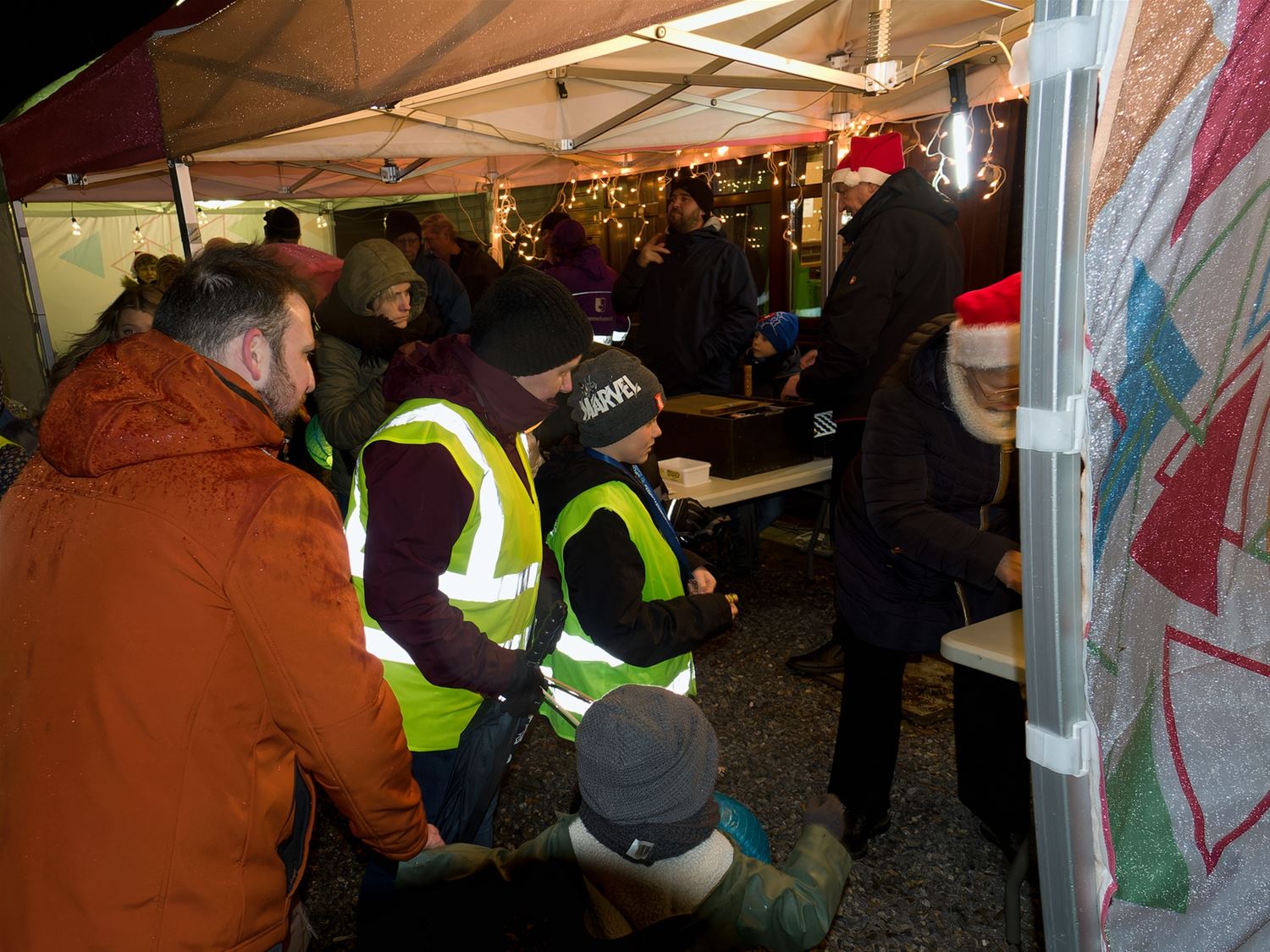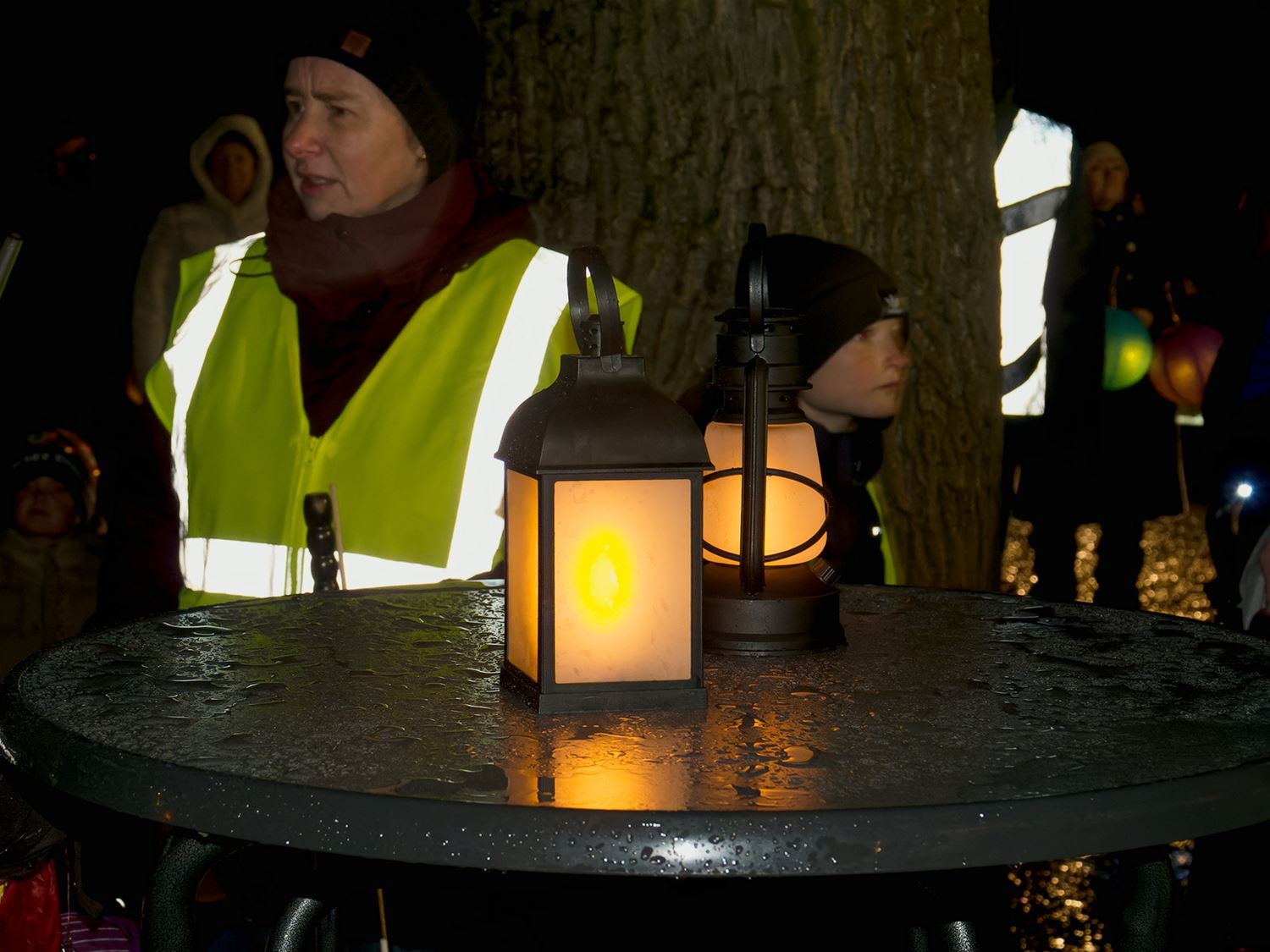 De eerste lampionnentocht was bij voorbaat al een succes door de vele inschrijvingen. 't Was ook netjes georganiseerd met mooie lampionnen voor de deelnemers die de bosrijke omgeving van het Meylandt een feeërieke uitstraling gaven. Alleen jammer van het slechte weer, maar vooral de kinderen leken zich daar weinig zorgen om te maken. En kersvers schepen van evenementen Marten Frederix mocht meteen zijn eerste officiële daad stellen: het ontsteken van de kerstverlichting ter hoogte van de Blokhut, één dennenboom was trouwens geschonken door partnerstad Brilon. En het was aan de Blokhut en in het tentje dat iedereen genoot van zijn borrel of drankje om te klinken op de ingezette kerstperiode. (foto's Robrecht Froyman)83901