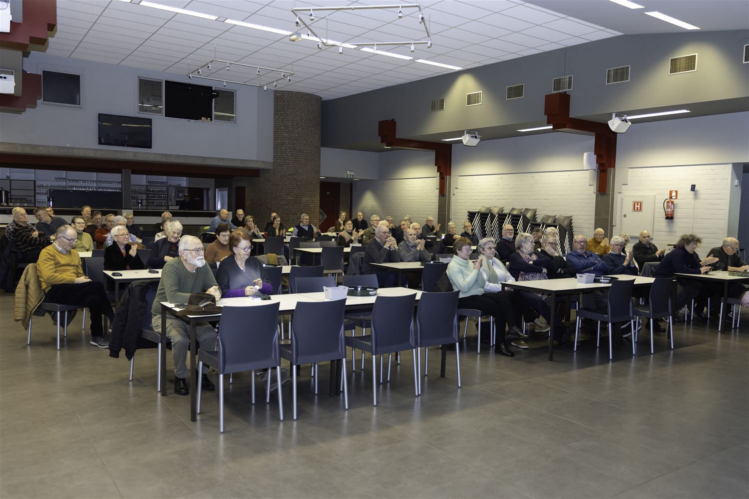 Alsof het dezer dagen nog niet fris genoeg is, zette Raak Overdag vandaag Antarctica centraal. Gastspreekster was Sigrid Maebe met een uiteenzetting onder de noemer "de Gerlache achterna". Sigrid is van opleiding biologe en werkzaam in de landbouwsector maar al heel haar leven gefascineerd door Antarctica. Vorig jaar trok ze voor drie weken naar de zuidpool, waar ze samen met 88 wetenschappers uit heel de wereld op een schip verbleef. Ze volgde een cursus die betere leiders wilde vormen die kunnen bijdragen aan een meer duurzame wereld. Sigrid had het over het leven op de zuidpool, het samenzijn met vrouwen uit alle werelddelen en wat het zien van zoveel schoonheid en kwetsbaarheid met haar deden. Ze vertelde bevlogen over de pinguïns, zeehonden, vogels en walvissen aan de zuidpool, maar eveneens over water, sneeuw, ijs ... Een boeiende vertelling met nog wat leestips voor wie achteraf meer wilde te weten komen. (foto's Joseph Bams)84248