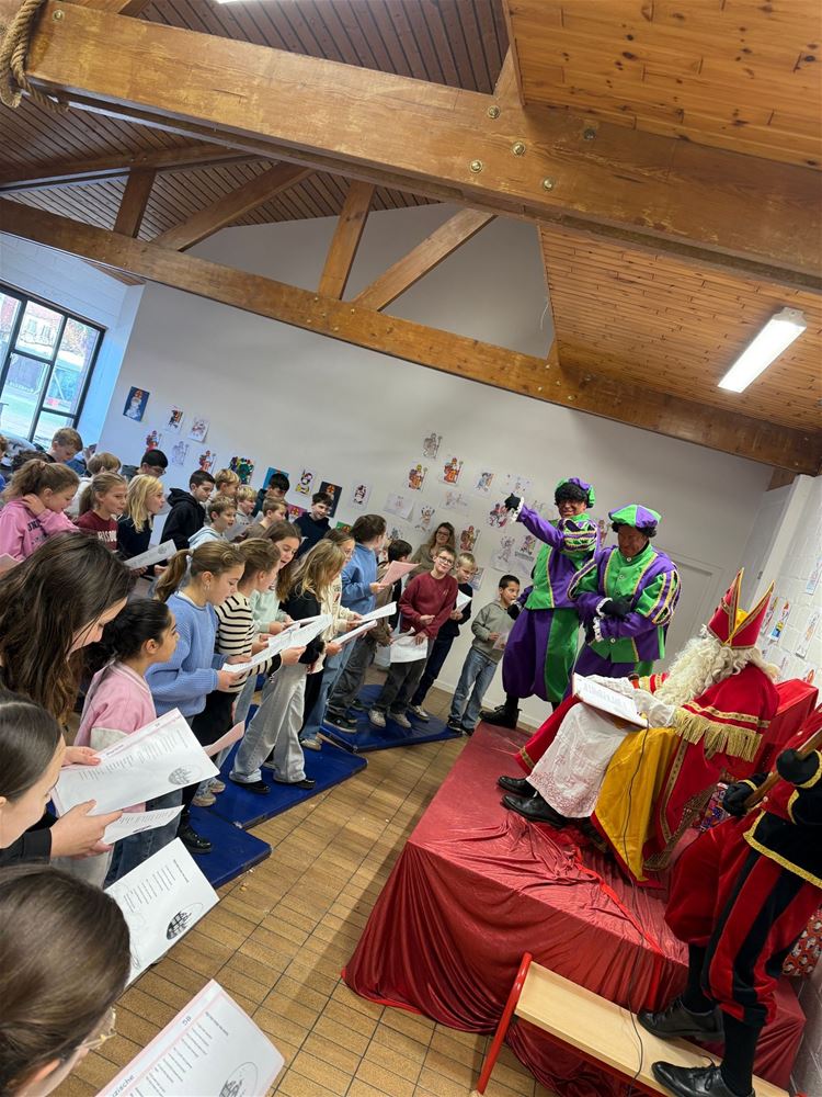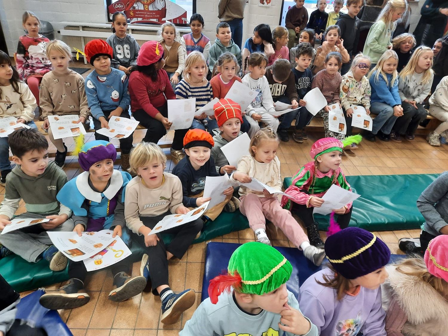Sinterklaas is samen met zijn pieten op bezoek gekomen in De Springplank. Maar dat is niet van een leien dakje verlopen. Het begon vooraf al met twee brieven die op school toekwamen, één van Sinterklaas en een van zijn enthousiaste Piet. Piet liet weten dat hij graag de slaapkamer van de Sint wilde omtoveren tot een kleurrijk kunstparadijs zodat Sinterklaas ’s nachts weer kleurrijk kon dromen. En dus gingen alle Springers meteen aan de slag met verfpotten en stiften en ze maakten mooie kunstwerken. Na een paar dagen pronkten er tientallen meesterwerkjes, klaar om de slaapkamer van de Sint om te toveren tot een droomfabriek. En dan volgde weer een brief die de komst van het gezelschap met de helikopter aankondigde. Alleen ging het grondig fout: de helikopter moest in een weide een noodlanding maken. Gelukkig schoot de boer van het Vroenhof te hulp, hij bracht de Sint en zijn pieten met de tractor naar de Springplank. Daar wachtte een feestelijke ontvangst want er werd gedanst, gelachen, gezwaaid en geknuffeld. En er kwam een lekkere verrassing op de proppen: snoepzakjes. Alleen één probleem, de juffen hadden zoveel bestellingen doorgegeven dat die niet allemaal in de helikopter konden. En dus mogen alle kinderen vandaag hun schoen zetten, zo is nog steeds spannend want de vraag blijft of de Springers braaf genoeg zijn geweest … (foto’s Team Springplank)87129