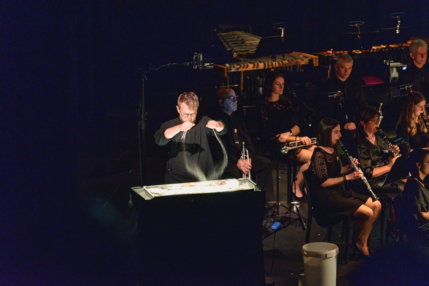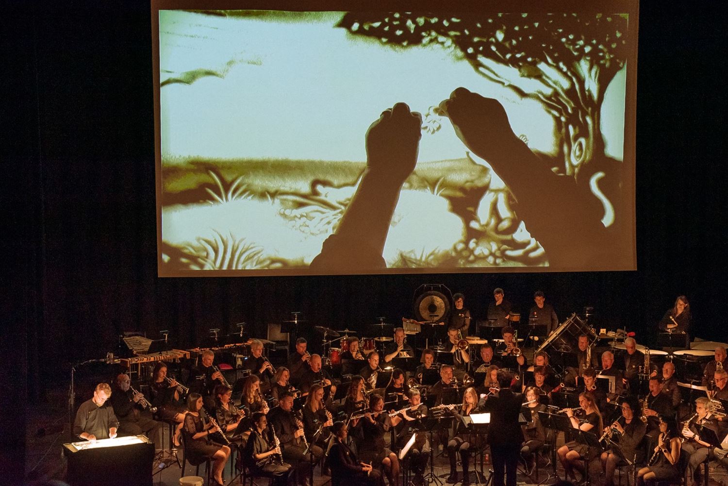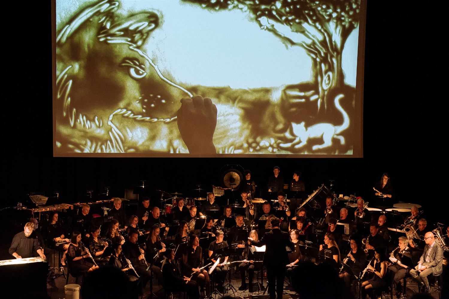 Heel wat muziekliefhebbers zijn zaterdagavond naar Muze afgezakt voor het galaconcert 'Peter en de Wolf' van de Koninklijke Harmonie De Ware Vrienden. Het ging nog om één van de uitgestelde initiatieven om hun 150ste verjaardag te vieren. Dit muzikale sprookje werd live geïllustreerd met zandkunst en Bart Demyttenaere als verteller, wat nog een extra dimensie gaf aan de schitterende uitvoering. (foto's Ann Jordens)75814