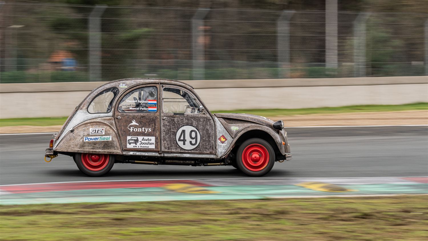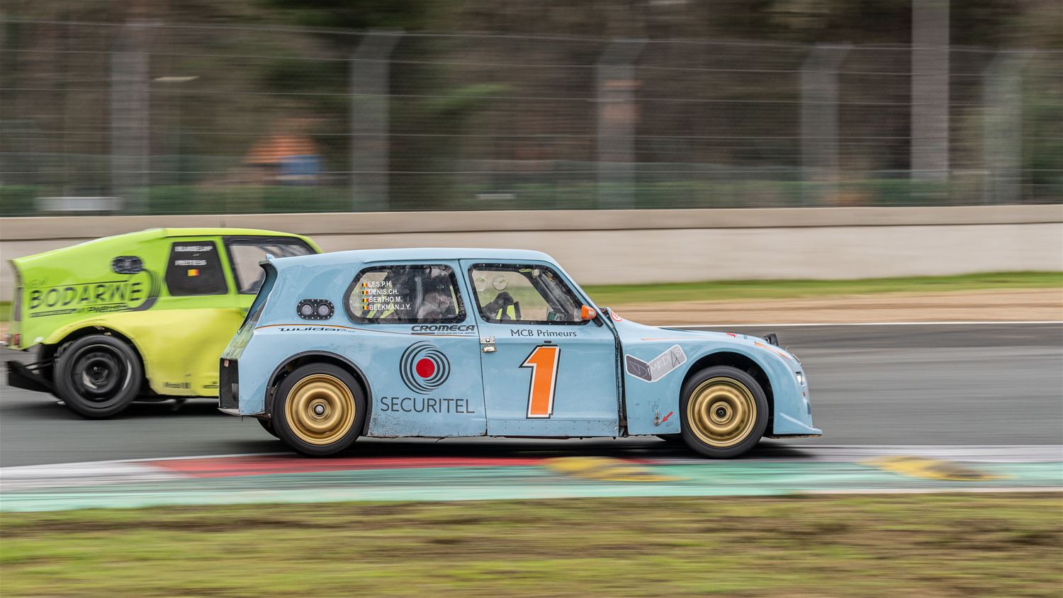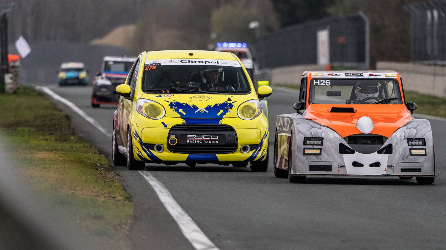 Op Circuit Zolder werd vandaag ook geraced door de 2 PK's en de C1, Citroën boven dus. Ze betwistten gezamenlijk een race over 420 minuten. Altijd apart om te zien, zeker ook door de 'special constructions' van sommige wagens. Bij de 2 CV's ging de zege naar Jean-Pierre Blaise en Sebastien Piette, voor het trio Léonard Licops- Stephane Bertho-Maxime Bertho. Derde werden Mathie Devos, Michael Jassogne en Clément Nopere. Het volledige podium bestond uit Dyane-rijders. In de C1-klasse wonnen Andy Gaban-Ian Vaerem Ans-Lancelot Alsteens-Maxime Alsteens voor Regis en Arnaud Matot, derden werden Thierry Leleu en Christophe Devis. (foto's Dirk Dekens)77133