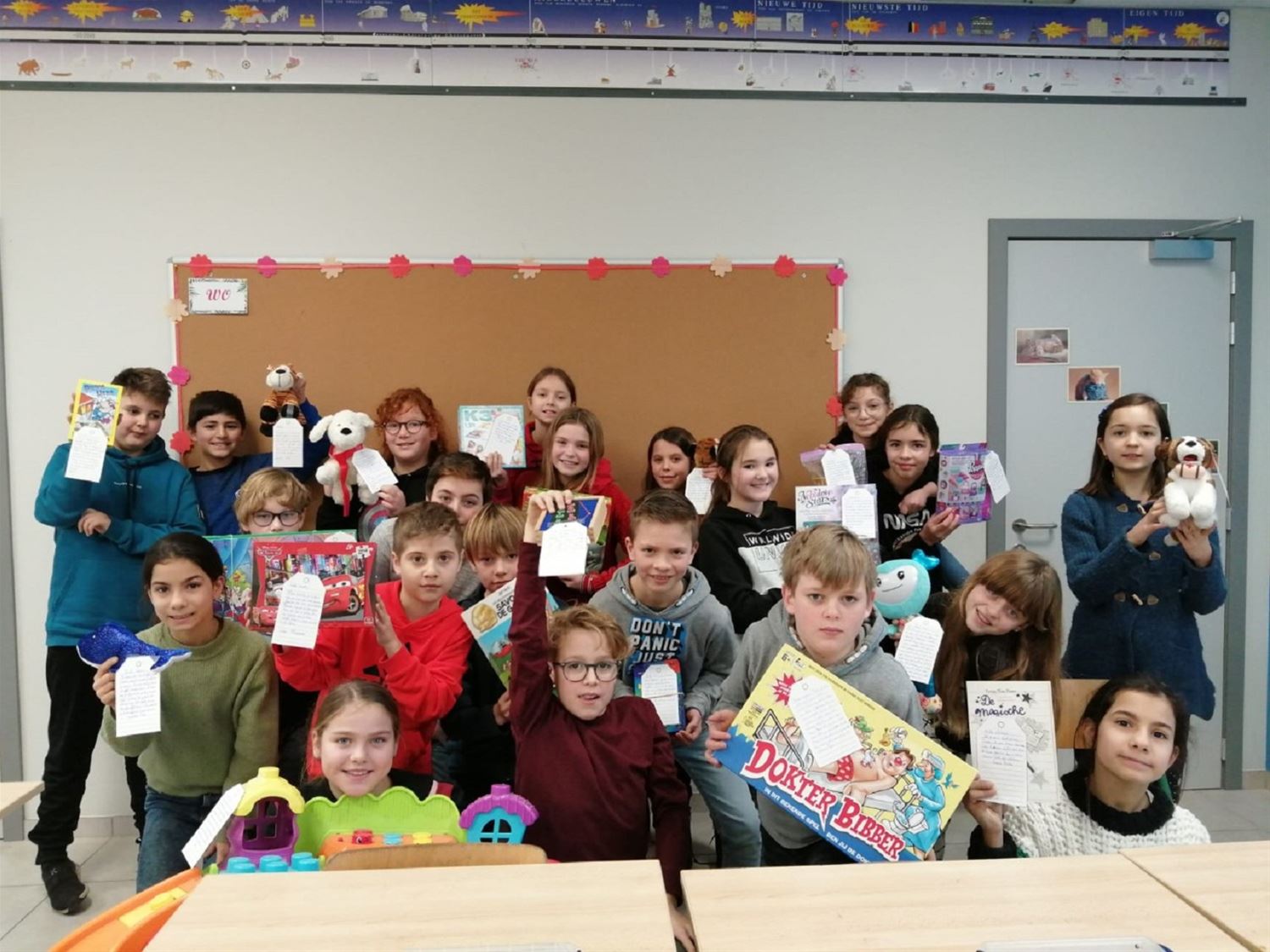 Elk jaar gaan de leerlingen van het 5de leerjaar van De Springplank Eversel naar Sint-Vincentius om kennis te maken met het ontstaan en de werking van de vereniging. Ze houden dan een cake- en wafelverkoop en de opbrengst schenken ze aan Sint-Vincentius. Maar door corona kon dat dit jaar niet doorgaan. Ze bedachten een alternatief. Elke leerling van 5A en 5B bracht een eigen speelgoedje mee met een persoonlijke boodschap. Sint-Vincentius bezorgt het vervolgens aan kinderen die leven in moeilijke situaties. (foto's Ria Vanhamel)