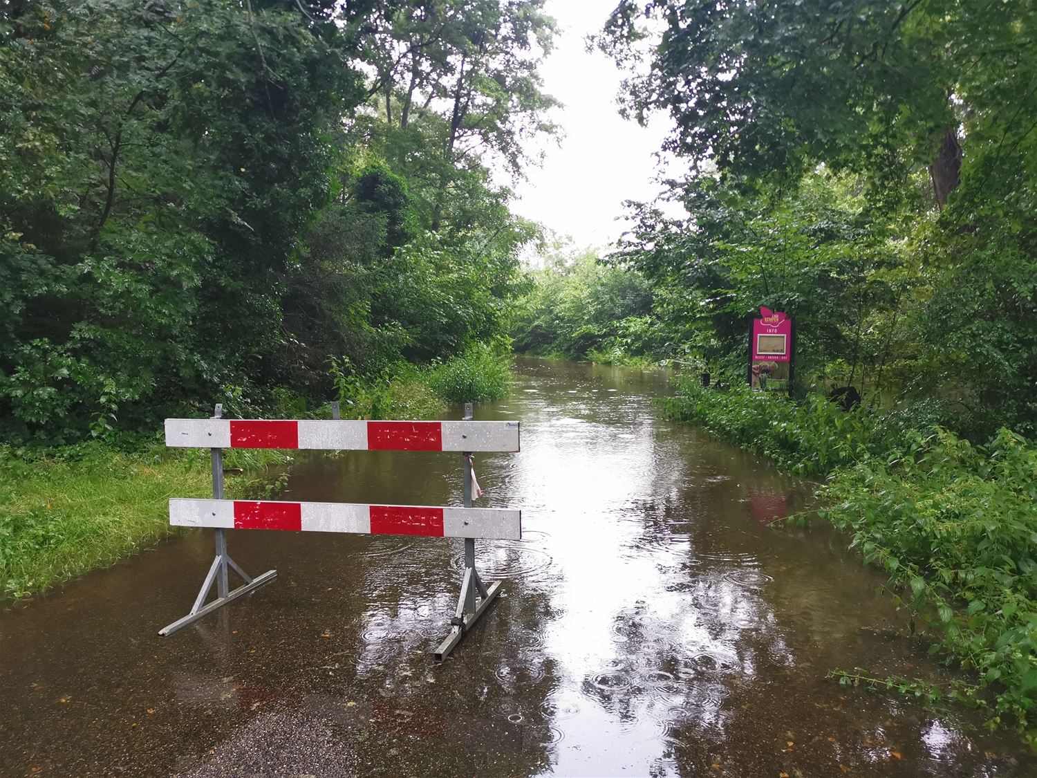 De Stenen Brug is een pittoreske straat met een mooie natuuromgeving rond de beek. Maar bij zware regenval klimt de beek uit haar oevers. En zoals enkele weken geleden stond de straat vandaag volledig blank. 70109