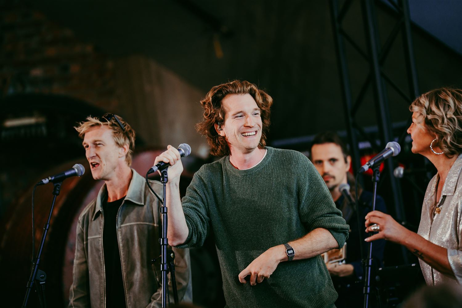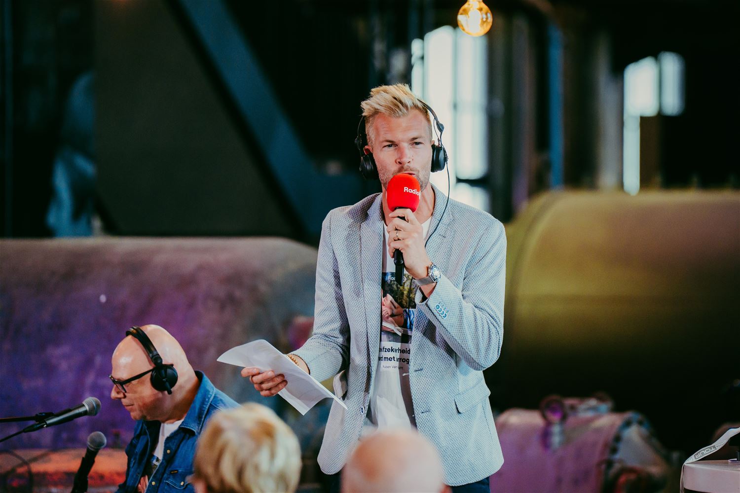 Het Radio 2-programma De Weekwatchers werd vanmorgen live uitgezonden vanuit ZLDR Luchtfabriek. Voor presenator Ruben Van Gucht en zijn ploeg was dat meteen de start van het nieuwe radioseizoen. Het programma was trouwens niet alleen op radio te horen maar werd ook gestreamd op tv. En naast de vaste elementen zoals het huisorkest en weervrouw Jacotte Brokken waren ook de gelegenheidsgasten niet van de minsten: cyclocrosslegende Sven Nys, Barbara Dex, één van Vlaanderens strafste stemmen, en Dimitri Vegas, één van de oppergoden van de dj-wereld. Sven Nys had trouwens een primeur in petto. Hij is ondertussen begin vorig jaar in alle stilte getrouwd met zijn partner Anneke Van den Eynde, alleen de kinderen waren op de hoogte, zelfs niet de ouders. Voor Sven was het trouwens bijzonder te gast te zijn in Heuden-Zolder waar hij heel wat cyclocrossherinneringen koestert – onder meer aan de WK’s – en waar zoon Thibau vorig jaar Belgisch kampioen is geworden. (foto’s Radio 2)86268