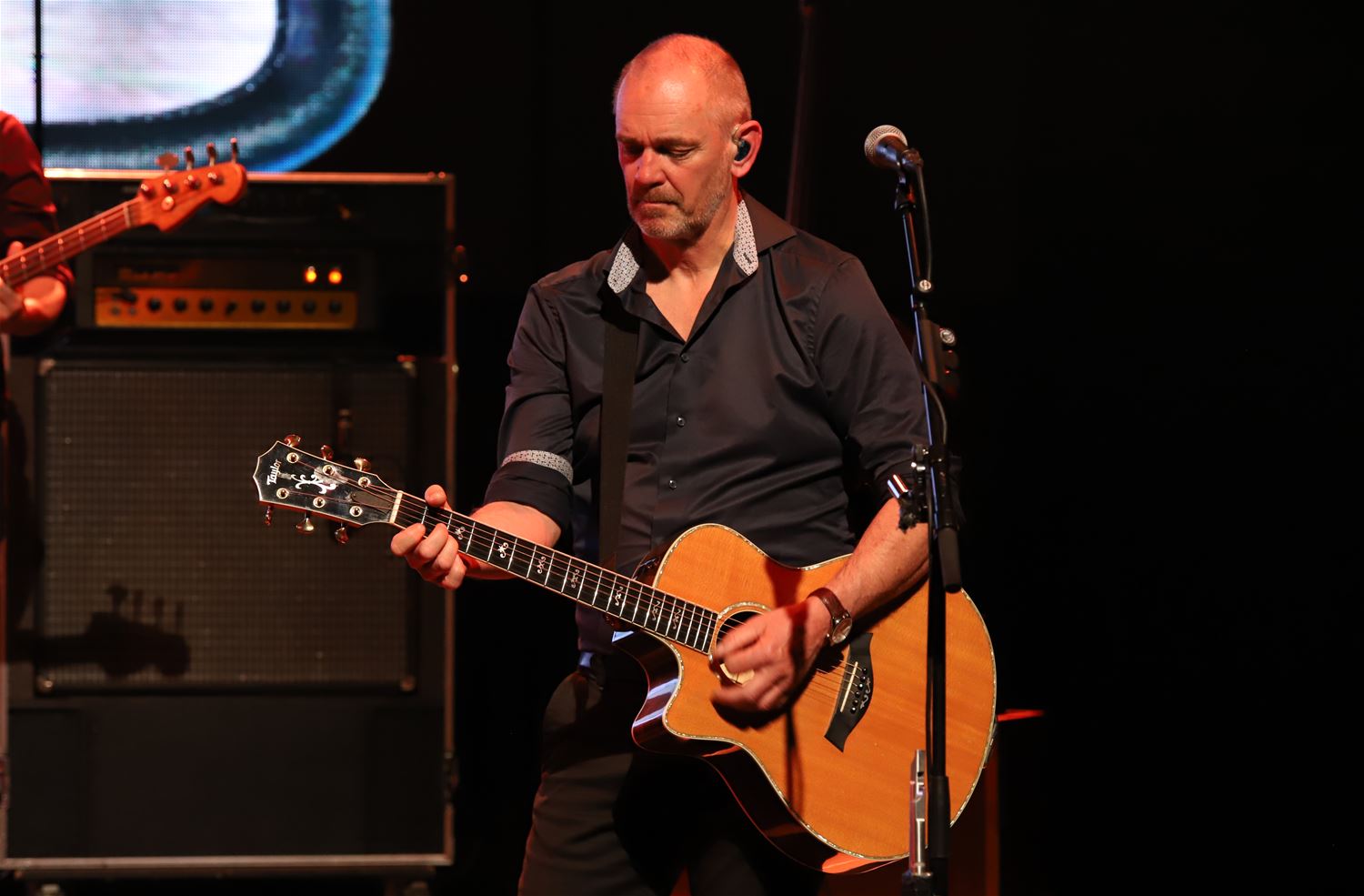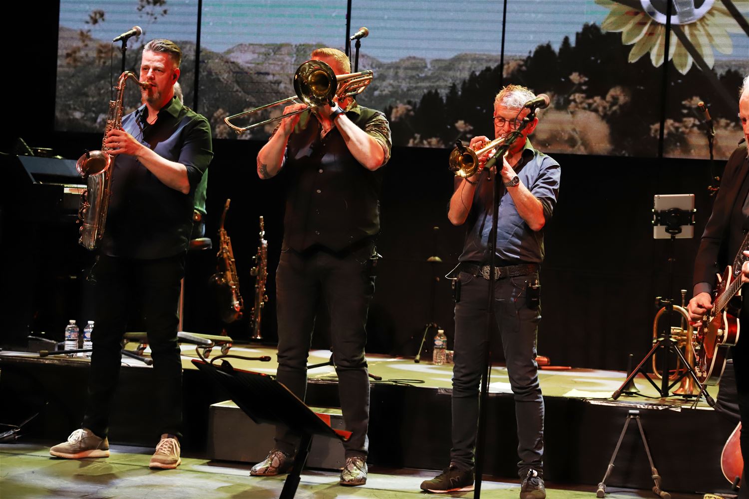 Dikke ambiance in het Limburgse dialect zaterdagavond in CC Muze. Daar stond Rowwen Hèze op het podium en wie de band kent, weet dat bij elk optreden de vlam in de pan slaat. Hun theatertour heet 'Onderaan beginne', het publiek reageerde enthousiast op de meeste nummers, er wazren ook fans van aan de overzijde van de Maas afgezakt. (foto's Herman Eerdekens)72446