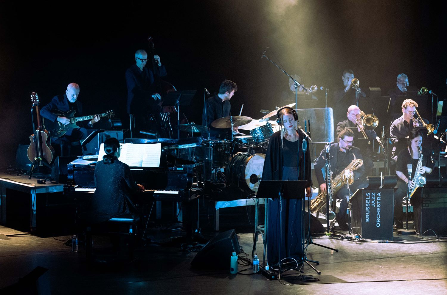 Onder de noemer ‘Saudade’ brachten de Brussels Jazz Orchestra en Naima Joris zaterdagavond een concert voor een bomvolle Muzeschouwburg. Saudade staat voor een emotionele mix van verlies, gemis en liefde. Gevoelens die perfect passen bij zangeres Naima Joris bij wie zelfs vrolijke songs doordrenkt zijn van melancholie. De 17 muzikanten van de Brussels Jazz Orchestra creëren voor die songs en stem het ideale klankbord, in de regel energiek maar als het gepast is dan weer intiemer zodat ook subtiele nummers tot hun recht komen. Daarbij werd ook gegraaid in het repertoire van onder meer Amalia Rodrigues, Stromae, Abbey Loncoln. (foto’s Ann Jordens)86653