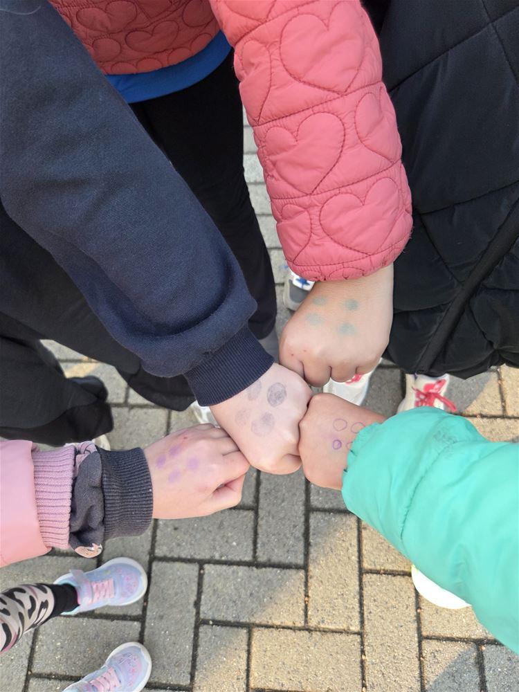 Het is vandaag STIP IT: de dag tegen pesten. In ’t Molenholleke startten ze vanochtend al meteen met de dans 'Samen tegen pesten'. De leerlingen hebben vier stippen op hun hand gezet waarmee ze tonen dat ook in ’t Molenholleke pesten niet ok is.86441