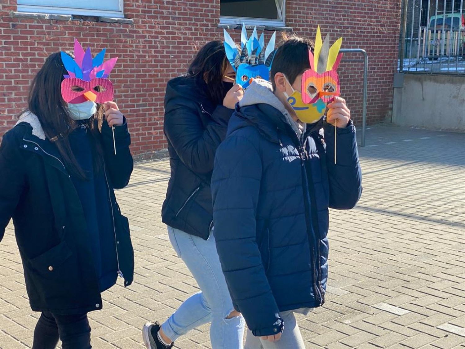 Straks begint de krokusvakantie maar in 't Molenholleke hebben ze toch nog (veilig) carnaval gevierd. De juffen gingen afgelopen dagen creatief aan de slag en maakten maskers en verkleedoutfits. Elke klas passeerde vandaag op de speelplaats terwijl alle andere leerlingen van achter het raam applaudisseerden. Zo werd het ondanks corona en koude toch nog plezant. (foto's Rita Grosemans)