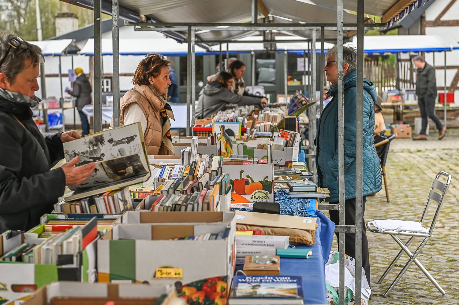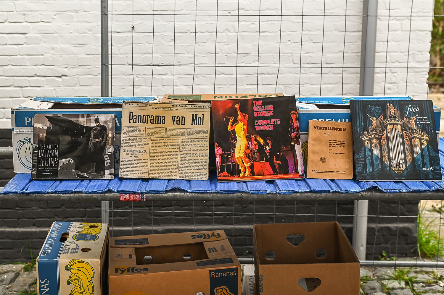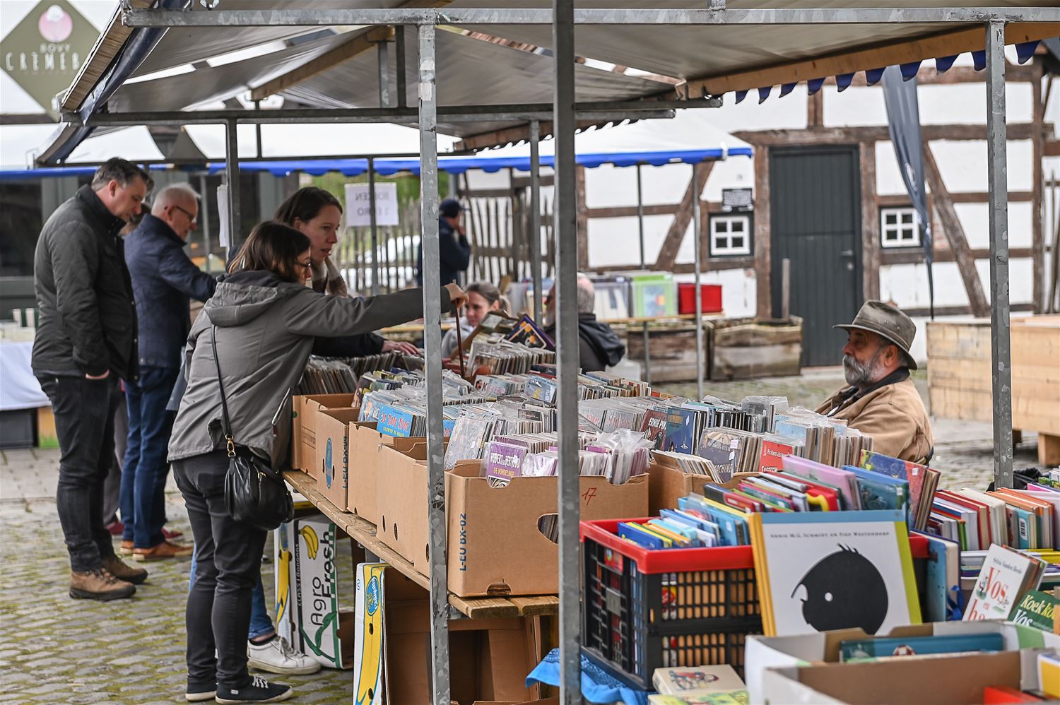 Op de binnenkoer van Domein Bovy had vandaag de eerste editie van de platen- en boekenbeurs van dit seizoen plaats. Eerlijk gezegd, het weer was niet ideaal, niet voor de standhouders en ook niet voor de liefhebbers van een dergelijke markt. Gelukkig komen er nog kansen genoeg, elke derde zondag tot en met oktober. En de originaliteit in het aanbod was vandaag alvast veelbelovend. (foto's Roman Martyka)77256