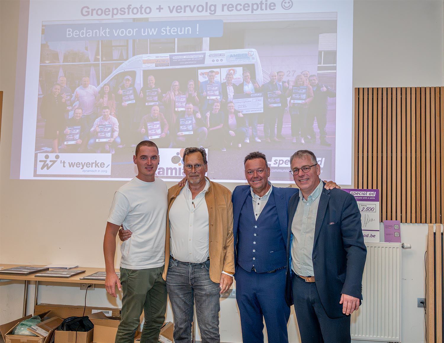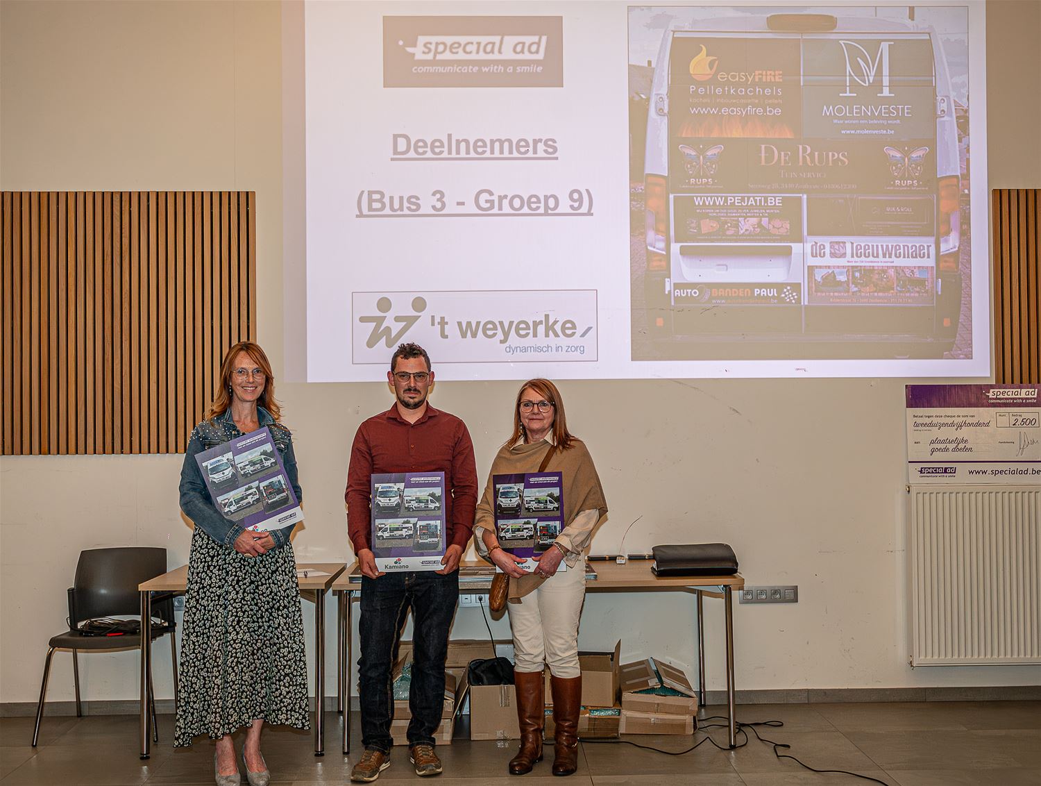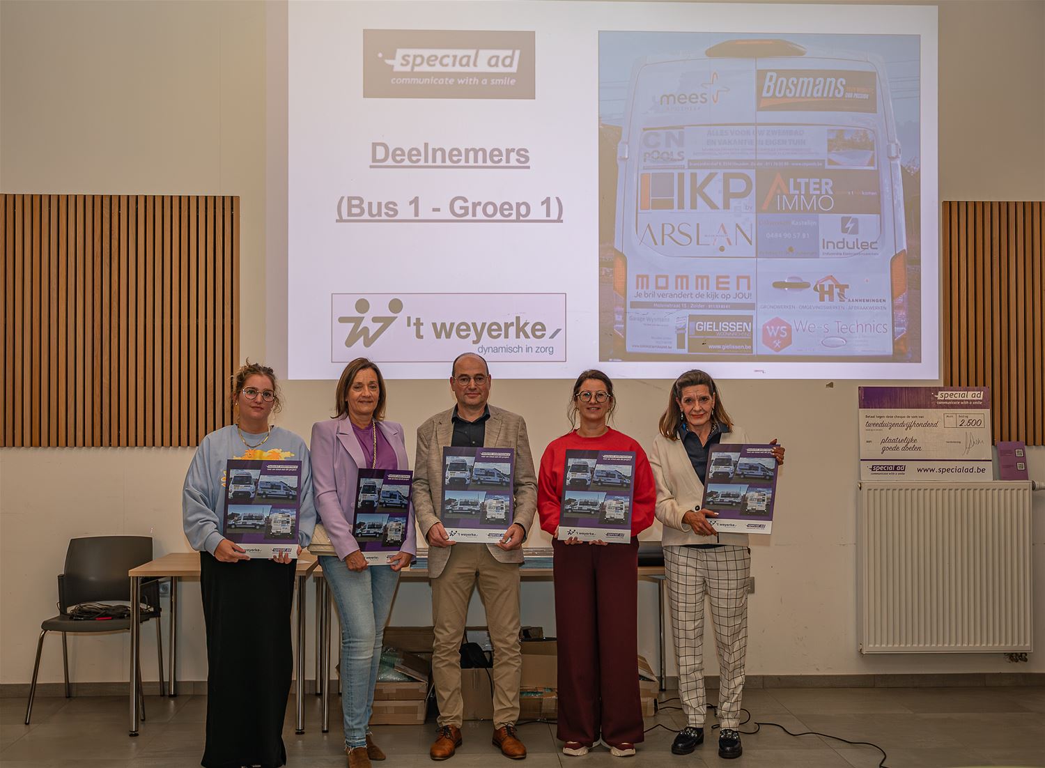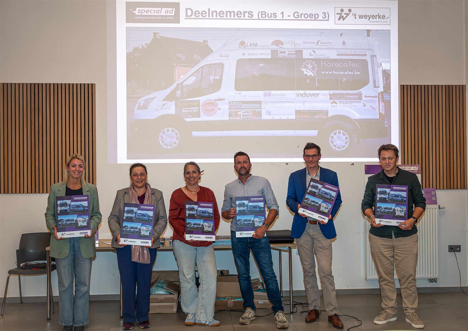 Bij ’t Weyerke zijn vanavond drie nieuwe busjes voorgesteld, die worden gebruikt voor het transport van de zorggebruikers. Het gaat om een stevige investering, maar die werd voor de investering verlicht door tal sponsors die hun publiciteit op de busjes vermeld zagen. Daarvoor konden 't Weyerke en Kamiano een beroep doen op Special ad, dat bedrijven koppelt aan maatschappelijke initiatieven via reclame op voertuigen. Onder meer scholen, vzw’s en zorginstellingen kunnen er een beroep op doen, terwijl de sponsors zichtbaarheid krijgen via mobiele advertenties op de weg. Ruim 100 sponsors gingen daar op in. Manager Philippe De Bondt van Special ad overhandigde een cheque van 2.500 euro aan ’t Weyerke.