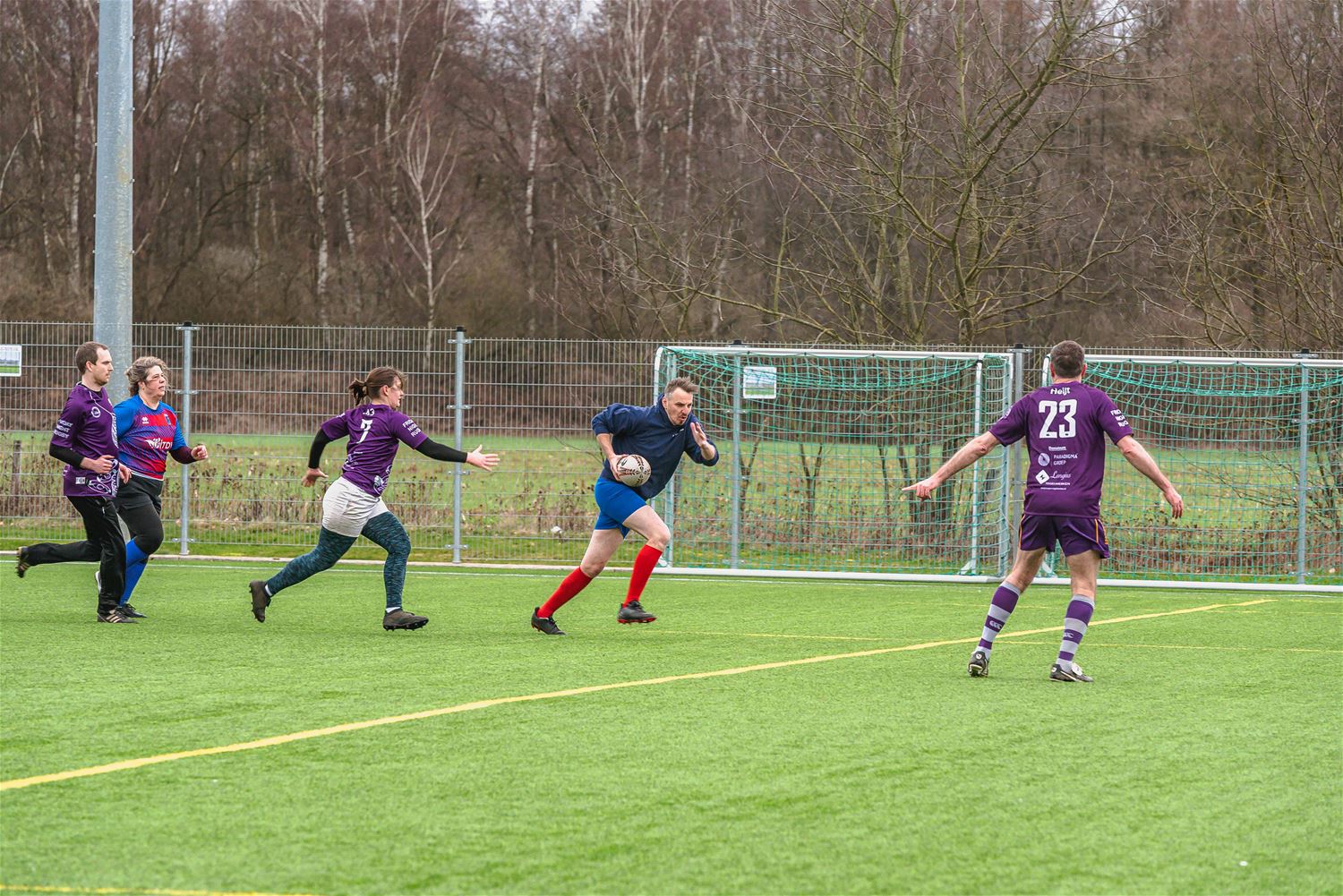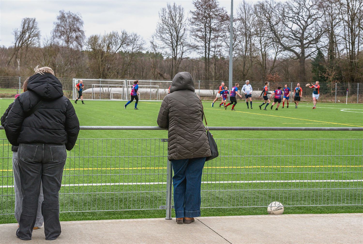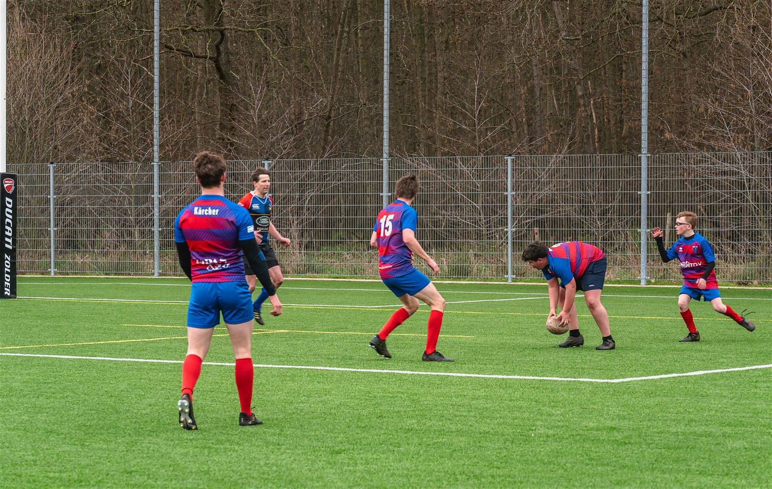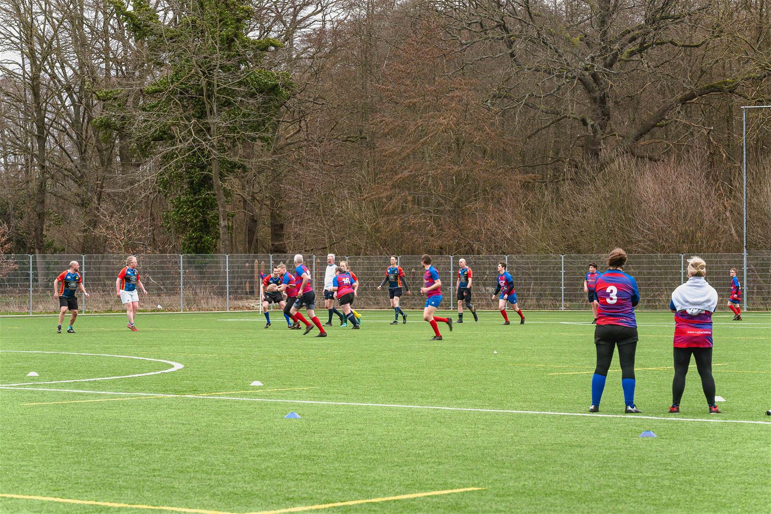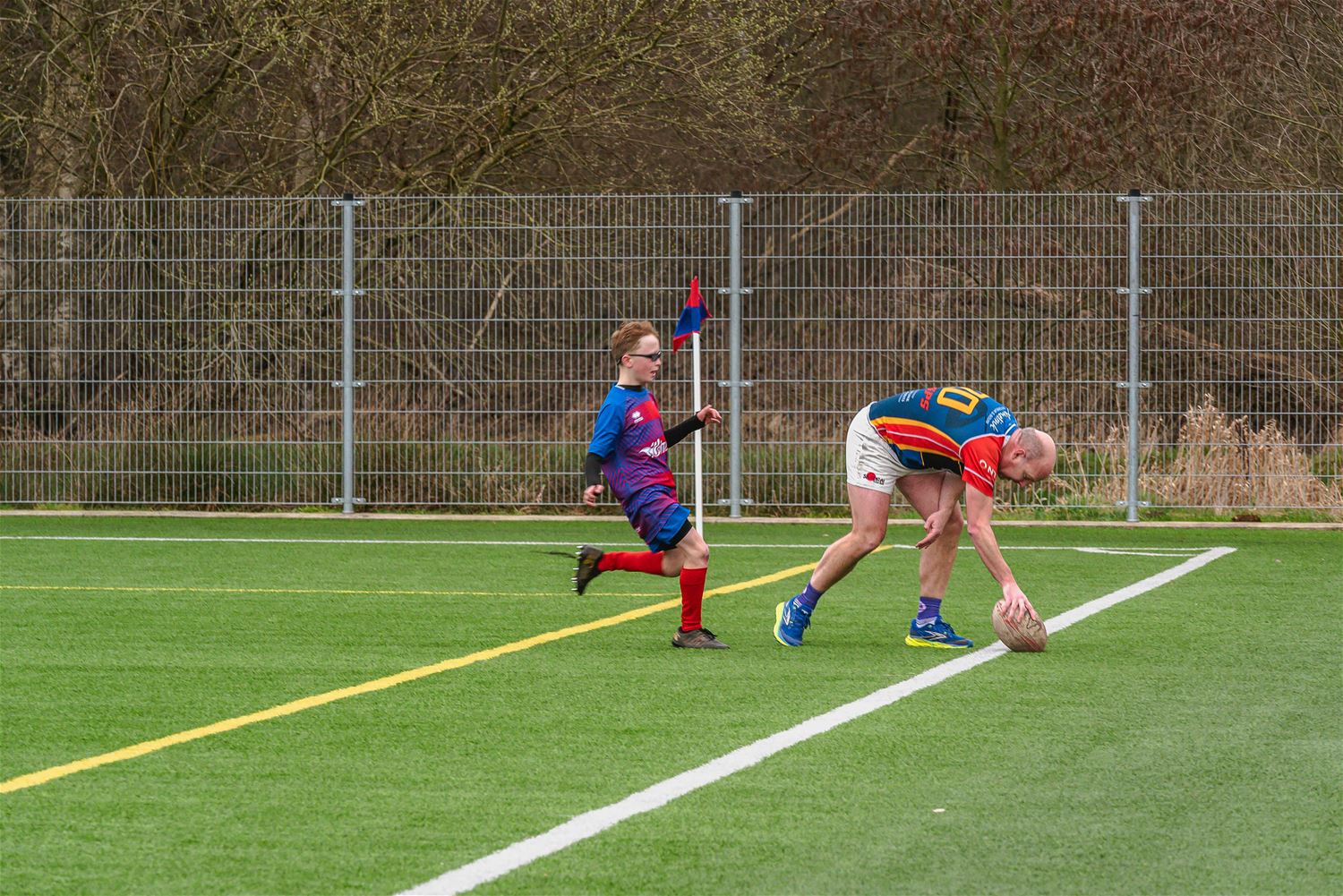 Zowel voor de spelers als de toeschouwers van rugbyclub RC9 was het even wennen vandaag, tijdens de allereerste partij T1-Rugby. Wageninge, de Nederlandse kampioen in deze softversie van het klassieke rugby kwam een demowedstrijd tegen een lokale selectie spelen. Daarbij wordt er niet meer geduwd en getrokken en al zeker niemand meer tegen de vlakte gewerkt. Spelers tikken elkaar aan om de bal te veroveren. Een ideaal spel voor spelers die het niet zo graag ruw hebben of die proberen blessures te vermijden. Of we hier een competitievariant moeten verwachten, weten we niet maar het was vandaag wel een ludiek gebeuren op de Vrijheidsite. (foto’s Ann Jordens)87908